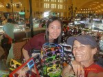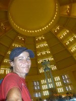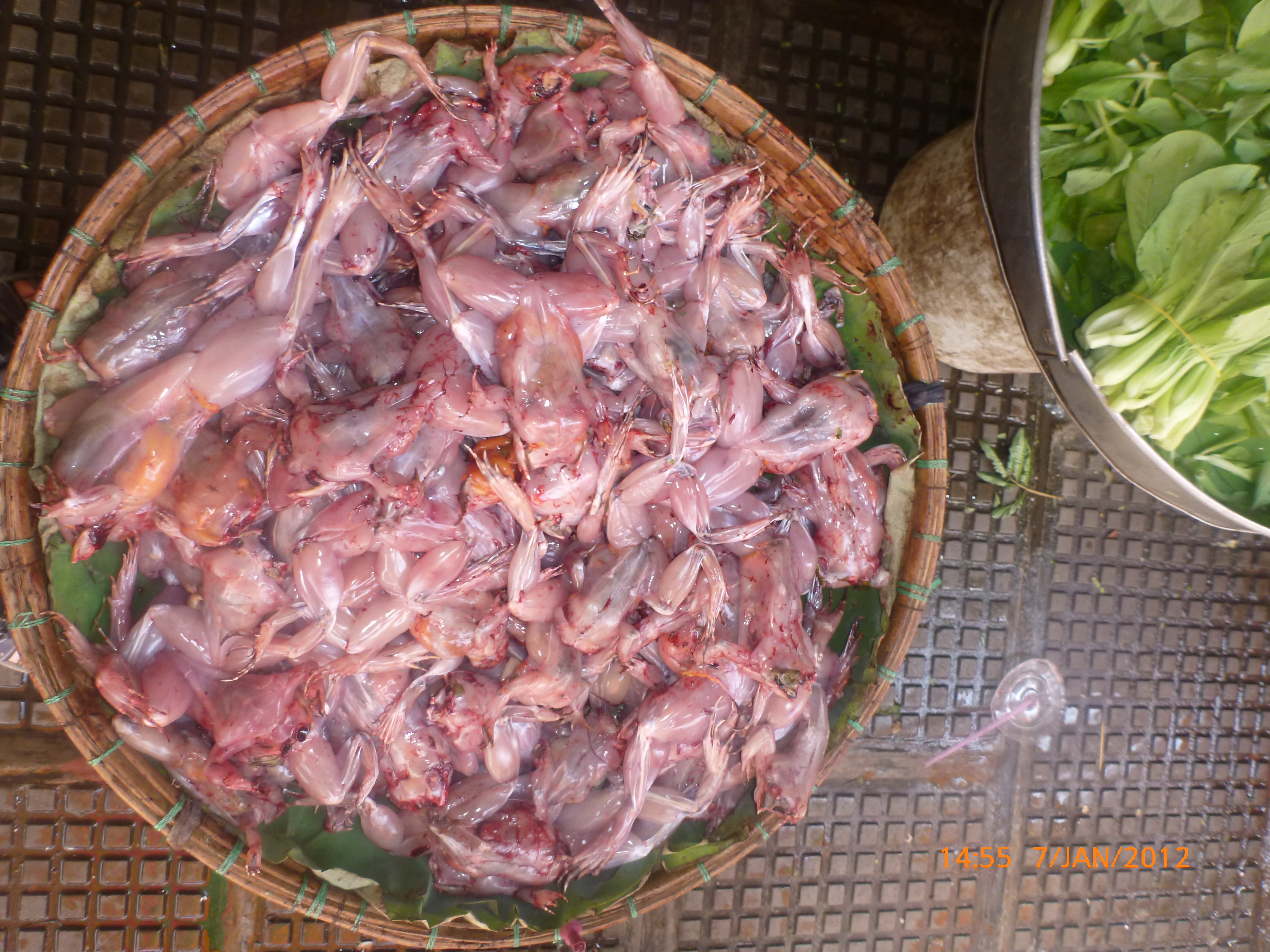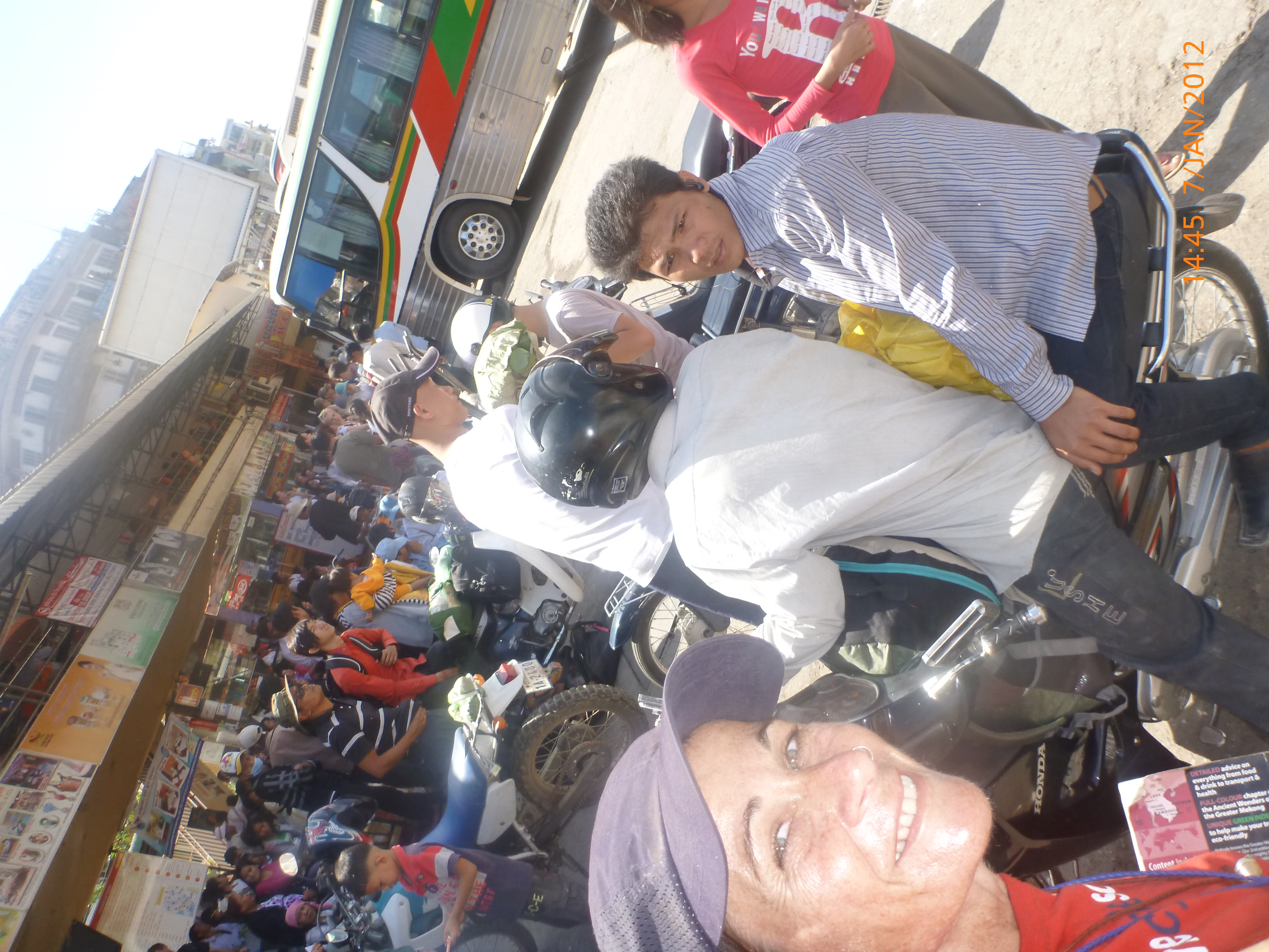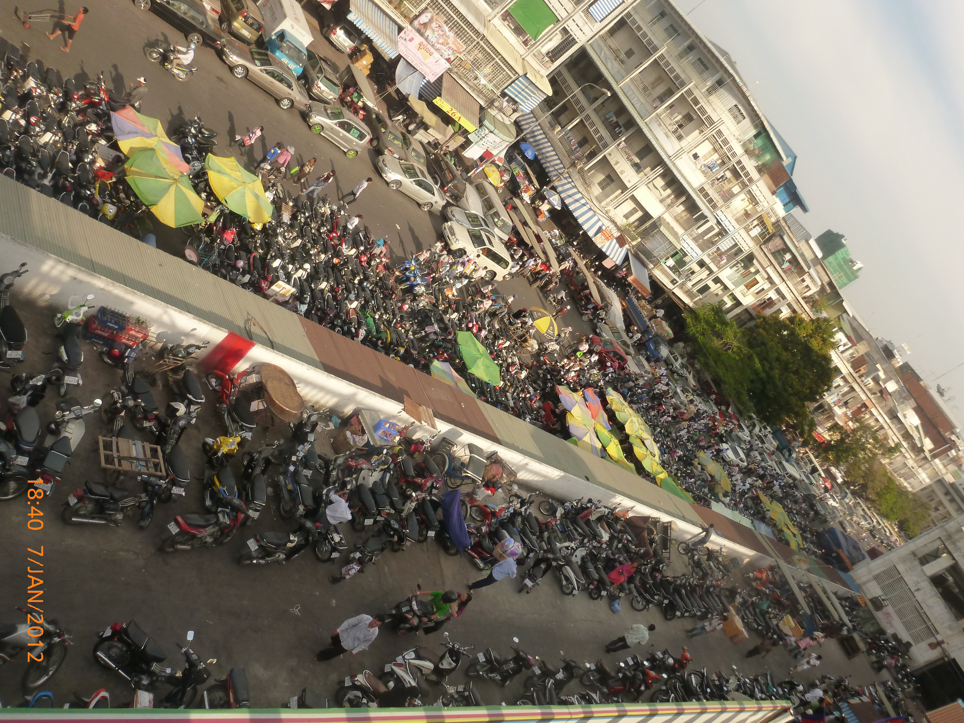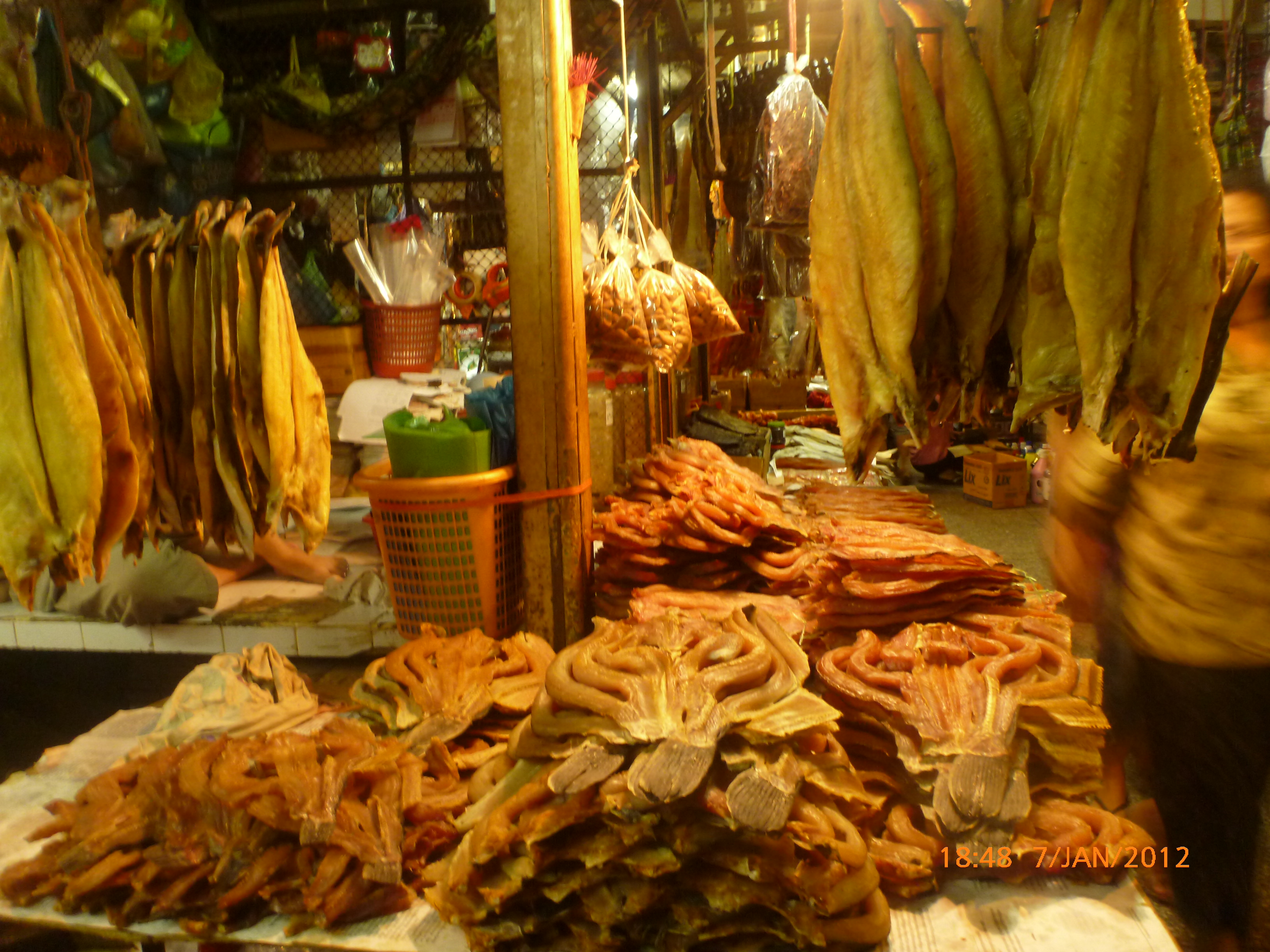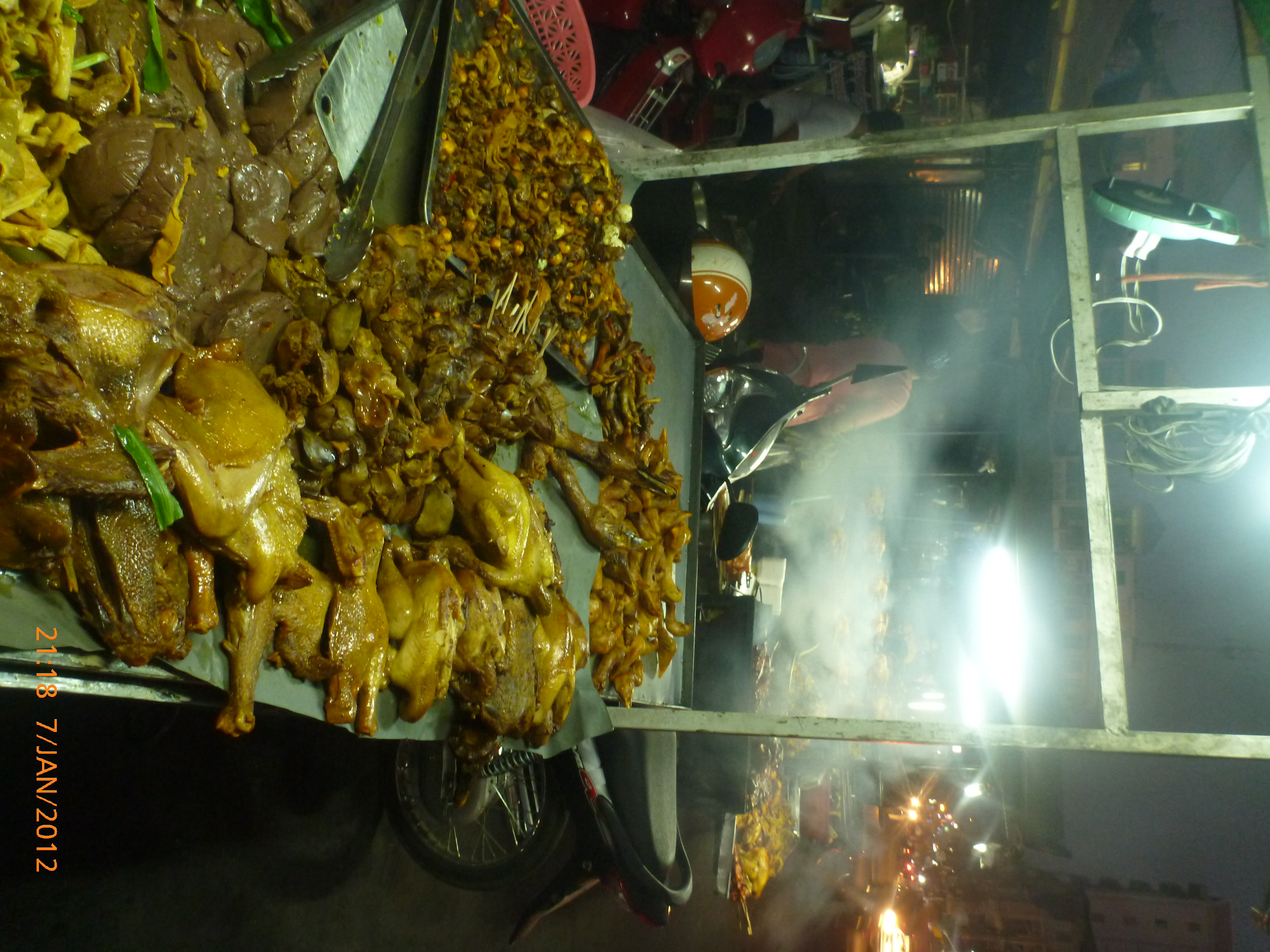 Day 38 1042 days to go. Distance: today 30km total 2060. As much as this place is one thing its just as much the opposite. And no I haven’t had a special vegetarian pizza for dinner. Phenom Phen is grand but grotesque with its polar standards of living. It’s huge with small pockets bustling with it’s own business and seemingly oblivious to the big city extravaganzas. it’s stimulating with its sensory overload whilst very confronting and personally challenging. It is truly beautiful in its locality and river front living but the live stock markets redefine cruelty. Here’s a story. I was in the night markets and stopped in the eating section where there were mats laid out to sit and have a meal. I thought it a great spot to blog but as soon as I sat I was approached by begging children. I told them no and they soon left but I saw their mother wave them back and they came and laid on the ground beside me displaying their desperate message. I left. Today has been an incredible day. Rube and I headed this morning to go find the supermarket and bakery I spotted on the way in yesterday. It turned out the bakery was this hub of bread products and local folk and vendors were buying bags of freshly baked loaves and bread sticks still warm. They were selling out of huge wooden crates and being topped up as quick as sold. I got amongst it and bought 10 for $1.00. The bag was so warm and the bread crusty yum. So I sat outside the bakery in my best asian squat position and ate one while it was hot. I must have sat there for an hour. It tuned out to be a bus stop or should I say a van stop for local folk traveling between cities. I have been seeing these vans on the road. The drivers are crazing one speed full throttle plowing the road with their horns. It turns out these vans are alternative intercity transport. So out front of the bakery was the van stop with vendors selling eggs and pork rolls and sugar cane drinks to the travelers. It was fascinating to watch. I dropped Rube back at the guest house and walked to the central market (old and new). On the way I found the bus stop and bought a return ticket for Rube and I for Siem Reap Monday morning leaving 10am 6 hour trip. The guest house will let me leave the trailer and most of the gear which is great. The central market is under this large yellow domed building that takes up a block. All around the base is food markets and inside mostly jewelry, silks and clothing. I of course found the sunglass stand and bought a genuine pair of Oakley’s for $4.00 :-). I haggled I shocked myself I so don’t do haggling but I got the price down from $7 to $4. Actually to tell you the truth it wasn’t the sunglasses (which are pretty cool) or the price it was the fact that she said please please buy and I did….sucker! My glasses had broken with a pair on order from home so they’ll do the trick in the meantime. Plus it was a really nice experience so had to have a photo with the sales girl she was so sweet. Outside in the food stalls this woman was squatted over a tray selling that vegetable Ive been seeing drying on the roadside. These had been steamed and I bought couple of pieces to try. She peeled and cut them up for me. It was a cross between a turnip and a sweet potato very starchy and gave me that sense of indigestion but tasted good. She was very shy for the camera but eventually agreed. I also saw a woman selling beehive pieces which smelt intoxicating and skinned frogs in a basket crazy variety. The block over was the new central market in a tall glass domes building. I checked it out for the view from the top. It was bazar on one side looking out to the river the apartment living was quite good standard most buildings 3-4 stories high with garden terraces. On the other side were dilapidated housing blocks. There was a roller blade rink at the top and I watched these guys for ages doing their tricks and having the best s stacks. The next market was called Orussie. It was totally mad. there were no tourists just locals and lots of them congregating and shopping and eating. This market was raw I loved it allot more interesting and the right side of dirty stinky intrigue. Heaps of dried meats and fish which had an overbearing smell being indoors and in such concentration but looked incredible all crammed in different shapes and sizes hanging adhoc in every bit of shop space very cool I loved it. There were also lots of spices and herbs it was a really interesting market and fun to hang out. Tomorrow is the Russian market which reads as the best one for getting lost in so i’m doing that first up in the morn with a fresh head to get into it. At the bus stop I saw a high pressure hose being used to clean the buses so I took Rube their this arv for a clean. Unfortunately she’s spotless but i’ve mucked up the alignment of her gears bugga so that’s also a job for tomorrow. Thank goodness for Barnets Bike manual. It’s come to the rescue a couple of times now so money well spent already. I hope to end the day doing a walking tour I read in a book which finishes on the river front and I may be able to find a picnic posie over dusk. Tomorrow evening will be uploading photos I found a cafe not too far up the street so a good job before heading to Siem Reap Monday. Talk soon x