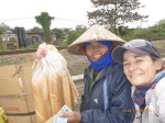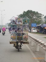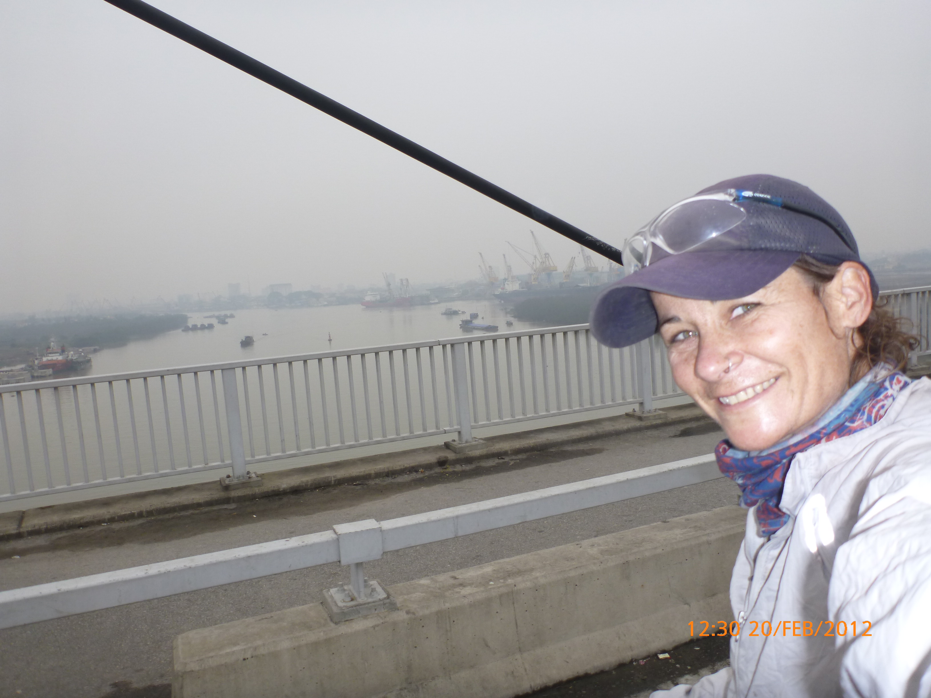 Day 81 999 days to go. Distance: today 114km total 4784. It’s 6.45pm Sunday 19/2/2012 Haiphong. We’re under the 1000 day mark how cool’s that. Still a long way to go but a nice milestone yay. I’ve found the cutest inner district of Haiphong to stay the night. Accidentally of course. I was on my way to the port to check out boats to Cat Ba but it was another 20km. I didn’t start until midday today so it was 5.00pm when I arrived and a bit chilly. 20km on top of the day already in the ‘chill bill’ wasn’t tempting so time to stop. The guesthouse is so cute down this little alley and the lady runs it very homestyle can’t do enough to make me feel welcome very nice and easy to take. I just got out of the shower and it was the first time that the hot water was still hot. So after washing three times, brushing my teeth and generally scolding myself I got out all toasty, rugged up and now posting to you fine folk. I love this time of the day. All squeaky clean after a good days cycle and thinking about the day to share with you. I started the day with a skype with the folks which was great. They were keen to know how I got on with Rube’s trailer. I’m very very very and another very pleased to let you know she did all good today and the angle grinding effort by my quasi engineer buddy seems so far to be doing the trick yayayayayaya and more yayayayayaya’s. I’m having an on again off again relationship with the Vietnamese I’m sure of it 🙂 Just when I think it’s over someone pulls out something beautiful like last night. I was thinking about it today the events yesterday and how they ended so well I’m also very mindful I have to cross the Chinese border no later than the 22/2/201 before the visa expires so there was no hanging around longer than needed in Hanoi. My experience with the Vietnamese is that when they step in with guns blazing and I feel pushed aside in their forthrightnesses. I’m learning to be assertive as opposed to pissed off, to ensure things are done as I need them to be. Particularly when it comes to Rube. When they’re rough with her mother pussy cat wants to eat them alive. That’s how her axil got bent when she was hosed coming into hanoi. they dropped her hard while I was de-mudding. And then the gorgeous man last night volunteers the best help ever. The affair continues 🙂 After talking to the folks I needed to calculate days left in vietnam. I head to haloing bay tomorrow. From there I think I will catch a bus or hydrofoil to the chinese border town of Mong Cai. The bays between here and China are apparently beautiful so the boat option sounds pretty tempting subject to cost with the bus a backup. I’m a bit reluctant to expose Rube to a bus trip before China as she has a haul ahead and needs all her bits in good order after her spit polish in Hanoi. We’ll see tomorrow but sounds like a plan. I’m happy just to have her and the trailer working 🙂 The ride here was excellent cycling conditions. Weather was overcast and cold but no rain or wind. The highway was wide with room for us to do our thing amongst the loads of buses taking folk between here and Hanoi. Given the busy road the amount of ‘hellos’ I got from passer byers was awesome. Always a welcomed momentum boost yay. I stopped and bought some bread from a roadside vendor man who was all smiles when I handed over $1 for four baguettes. Black teeth didn’t dampen his enthusiasm for a photo 🙂 Otherwise the day went pretty quick. It was good to be back in the saddle again doing descent k’s. When i have rest days the body goes into this whole extra fluid thing to recoup. On the flip side it then gets rid of the extra fluid when I star again. This means lots of bathroom stops. The tricky bit is finding discrete spots along the highway to do your thing. As such there were a few tense moments over the day 🙂 I feel so much better on the move. The body prefers to be active that’s for sure. I had a halfway stop at a bus interchange place. This man from one of the vending shops came up to check me and Rube out as they do. He was all full of cheek and mischief. No English of course but I got the general gist of his good natured naughtiness. He was entertaining to share the break with. So that was a about it for the day. Time for dinner I’m thinking and an early night and start tomorrow. Talk soon x