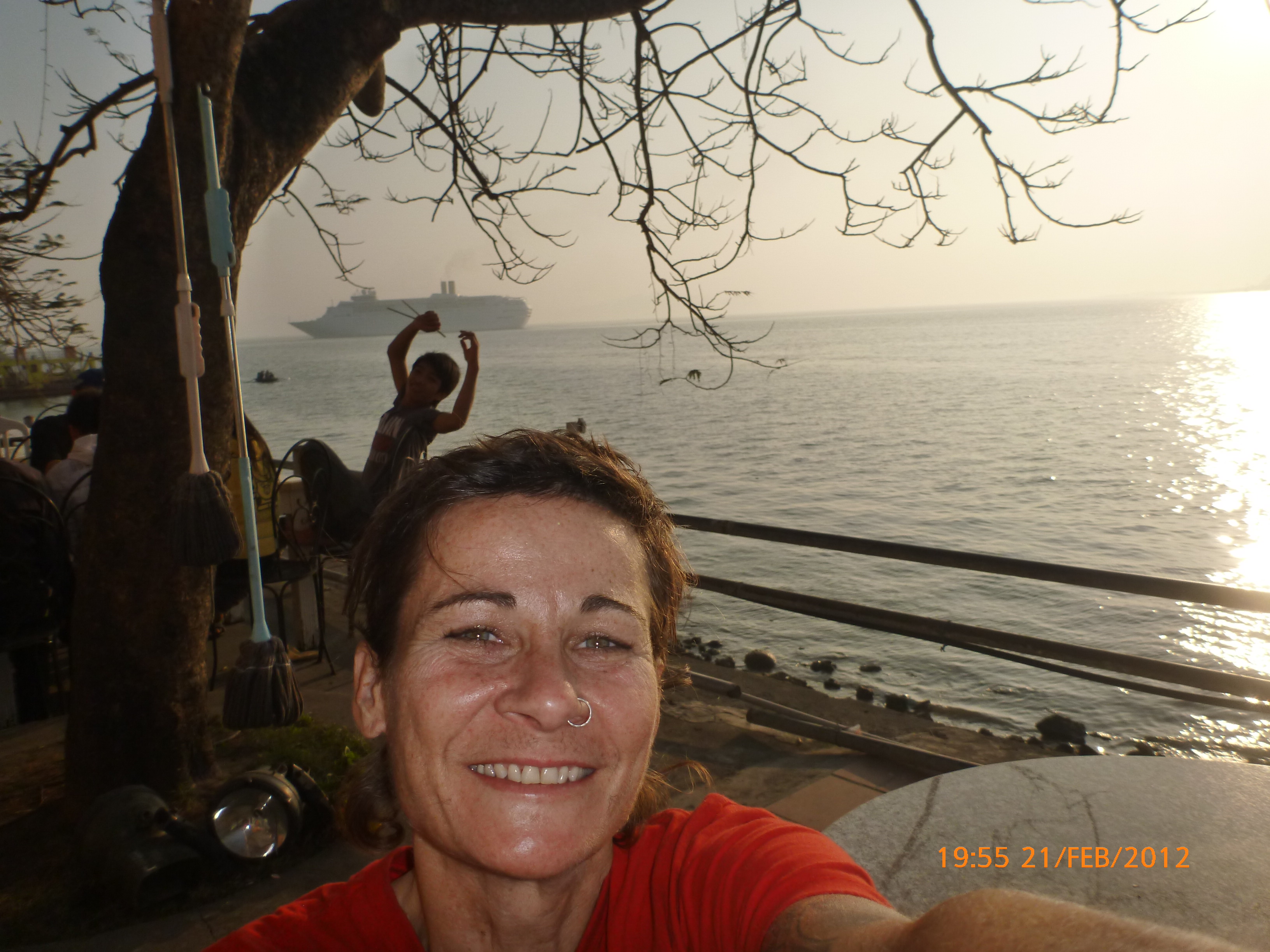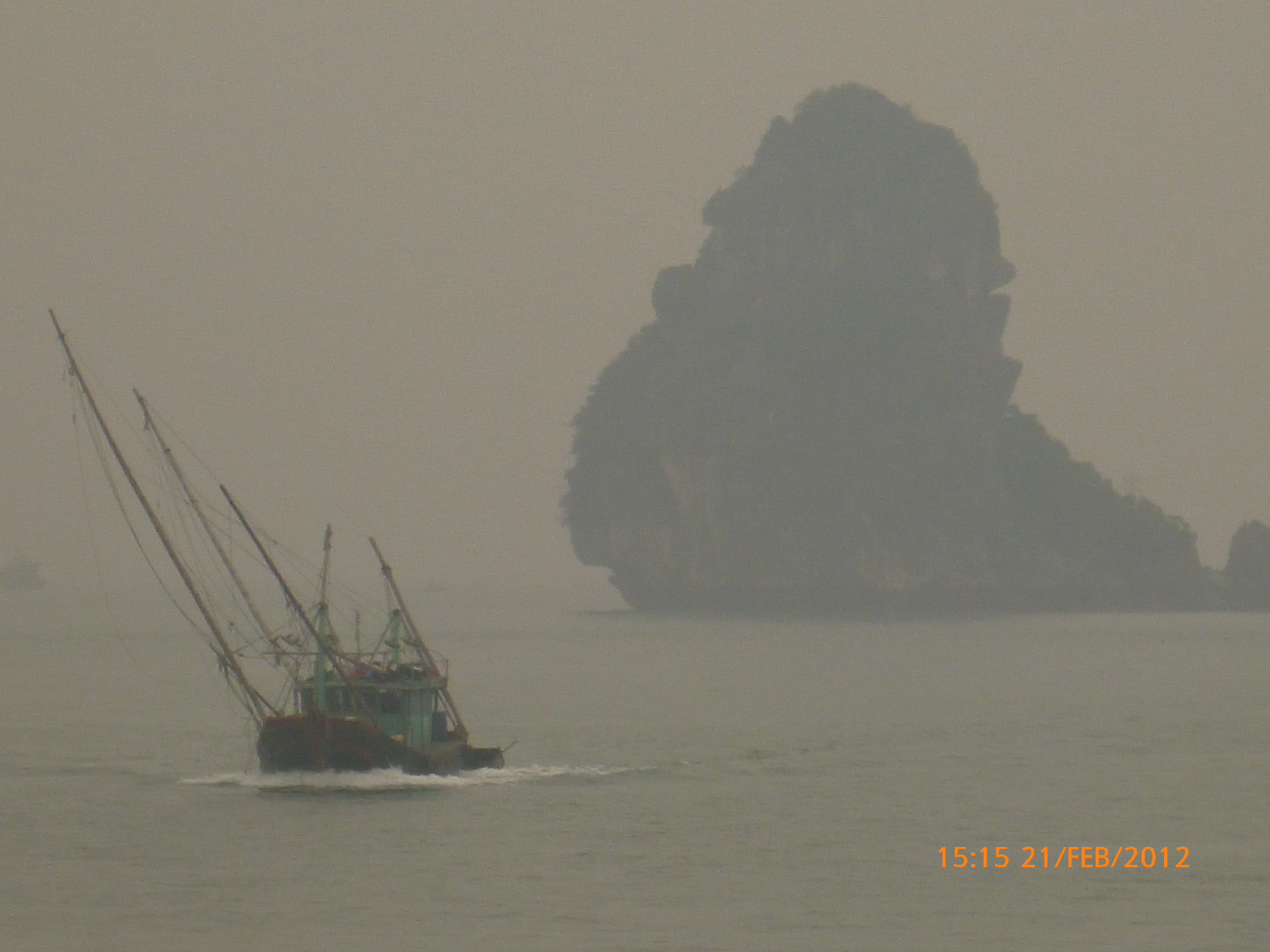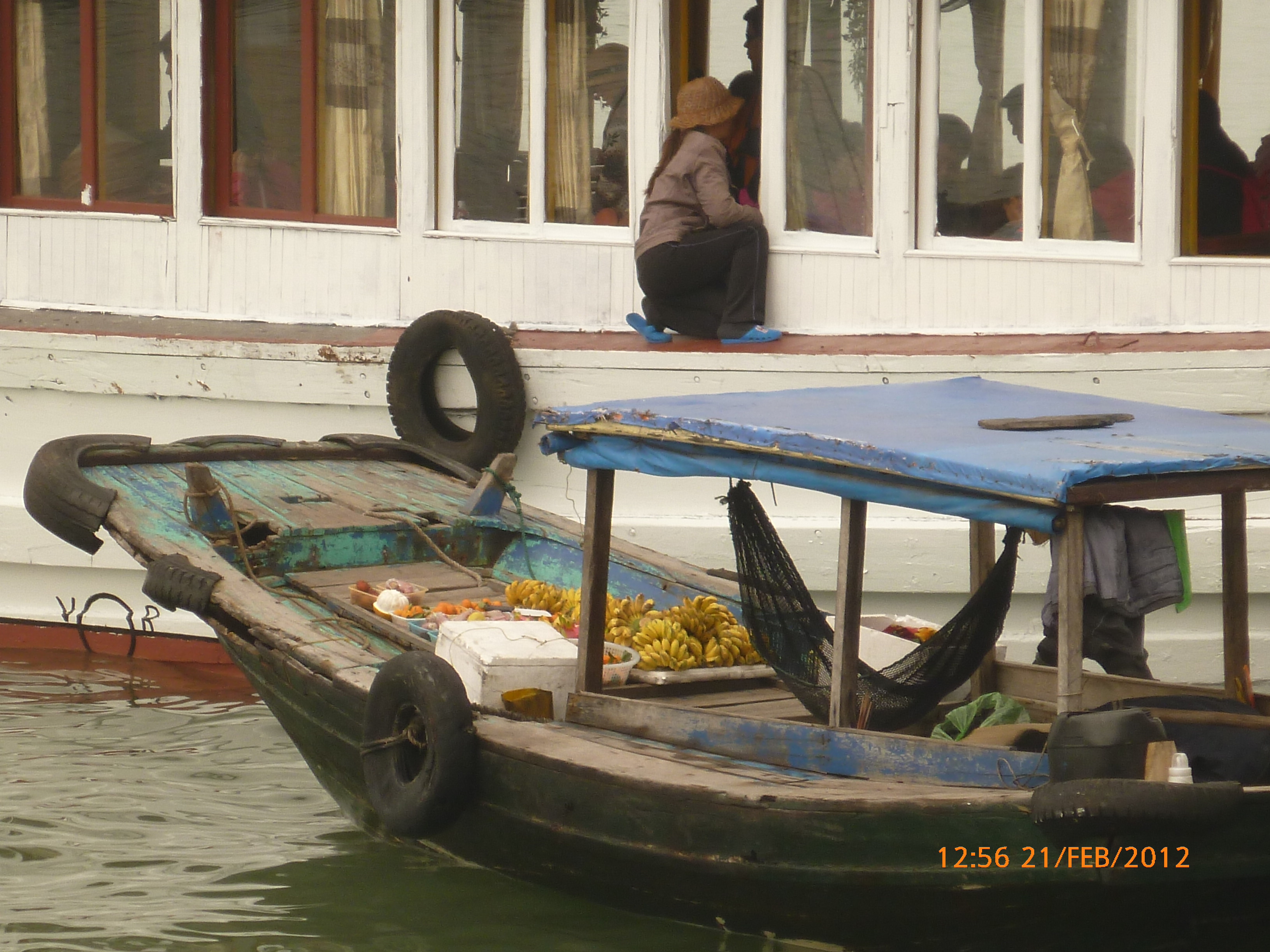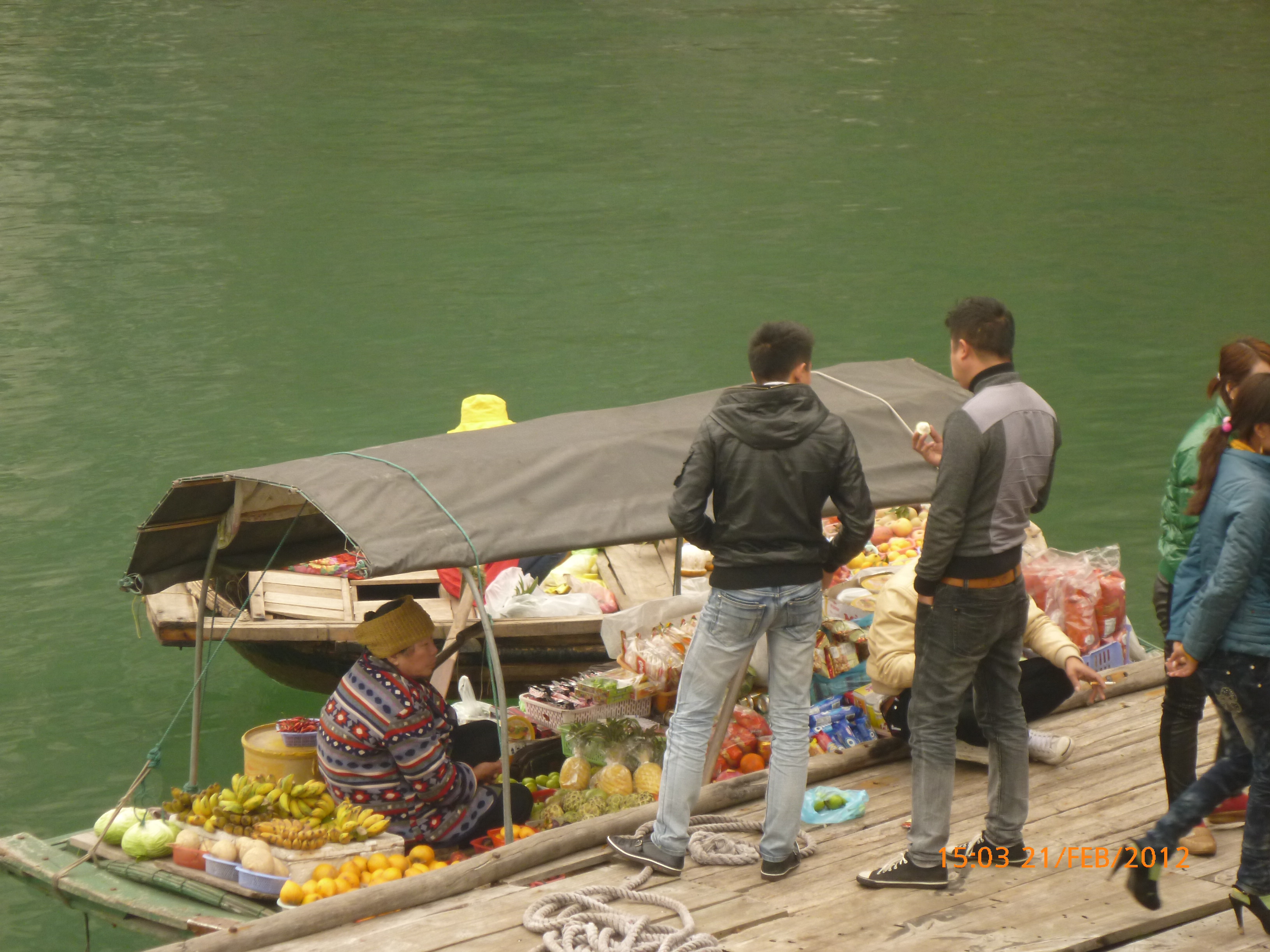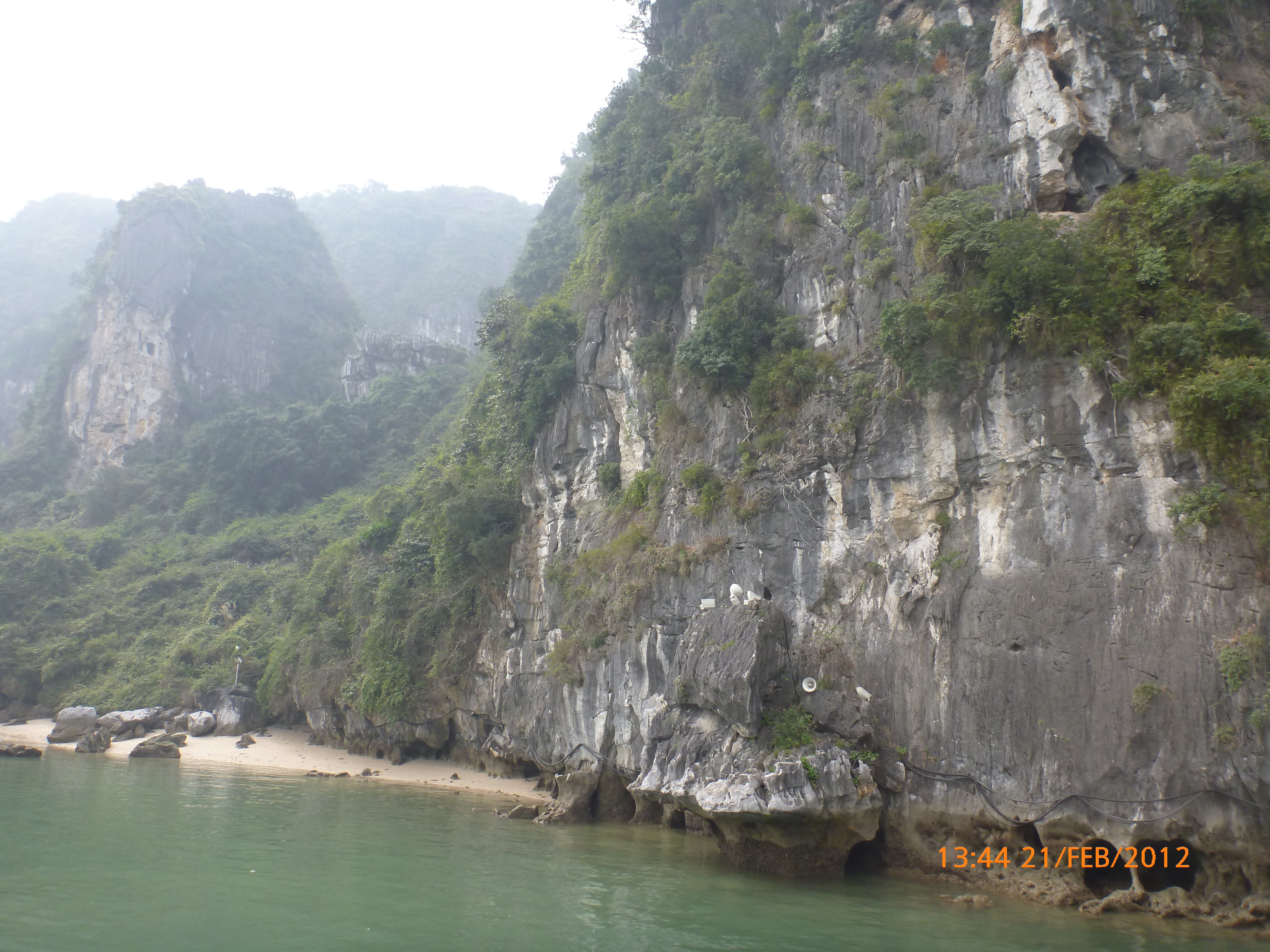 Day 83 997 days to go. Distance today 26km total 4909km . It’s 4.48pm Tuesday 21/2/2012 Hon Gai (Halong City). I was only looking for a WC so I could stop and do my post for the day over sunset. Yes you read right. It’s perfect blue skies this afternoon just t-shirt weather and soooooo yummy. I can feel the body soaking it up as I type. Anyway the urgency was worth buying a coffee. I’m right on the waterfront on the other side of the bridge after spending an awesome couple of hours pottering around the Vietnamese side of town away from the tourist focus. It was just nice to be out and active amongst it so I thought I’d head back over the bridge and see whats about. I firstly sent my next ritual postcard to my buddy Robbie C x I ended up a working class district with the best market. Of course stop time. I had only just started looking and this woman from a shop came up showing me a card with ‘how old are you?’ written on it in english. How totally random. Well that was the start of chaos. Bugger minding the shops it was ‘check out the Aussie’ o’clock. In no time a dozen women were around asking questions for a younger woman who could speak ‘so so’ english to translate. These were her words when I commended her on her English which she learnt in high school. Her name is Do Thu Ha and she is 30 years old with a 9 year old boy who’s smart but a bit lazy. She’s given me her address and asked for me to write her a letter. She doesn’t understand computers or email. Anyway…. chat chat chat laugh giggle poke slap awesome and on it went for over an hour. I tried to take a photo but they all scattered in hysterics. Do hung around with some convincing so at least I have one picky. It felt like an outing with the girls and I loved it. I bought bickies and coffee from Do’s shop to thank her for her translations. Now back to where I started. When I came out of the markets it was blue and hot and it was really startling how changed and beautiful the weather was. Perfect timing for sunset o’clock but I really had to go to the loo. Ive been acting on my sisters advice to drink more water to stop the Miss Piggy blow outs on rest days, so the bladders working overtime. As I said the urgency was worth a coffee so I stopped at this cafe which doesn’t sell coffee. Stubborn Vietnamese always wanting to do their own thing. Sounds like someone else I know all too well 🙂 I showed the lady the coffee sachets I just bought and offered to buy a glass of ‘sow’ (hot water). It was a freebie and now I’m sitting in her cafe with wifi on the water posting to you fine people sipping my coffee bought from Do’s shop watching a sunny sunset over Halong Bay. How good can it get!!!!!!!!!! Photo time. Oh and by the way I haven’t even got onto the boat trip today. This part of the world is crazy postcard beautiful. I know I use that word freely but with all due respect it really is. I have noticed voting forms about with ‘vote Halong Bay as a new natural wonder of the world.’ Does anyone know anything about this? It was overcast but it didn’t stop getting a feel for how magical this area is. Apparently it’s only the start of things now to come heading up into southern china. Enjoy the photos as much as I did taking them. It was like our private cruise. There were only four other people on the boat that could have held 400. I found a possie on top and soaked in every bit of delish. The scenery just got better and every angle you looked there was something else to enjoy. The bay is very busy with tourism and fishing industry. Nothing ugly about it. Quite the contrary good to se it working for the people and economy. Heaps of other tourist boats like hundreds and lots of trawlers and other fishing boats even rub a tub tubs. Market folk are busy with their vending stalls on water. I bought my first mango and slopped it all over me for breaky. The fishing industry is farmed as well as caught and ranges from huge containers transporting supplies from the farms to small time fishing boats. These mostly work from the floating Villages amongst the rocks. Always soaring overhead the peaks are sea eagles which I managed to grab a photo of. It was wonderful and a must do that I’m so glad I did. Tomorrow is a bus to this side of the border where I’ll stay one more night and cross the border with the first full cycle day in China Thursday. Vietnam has slapped me about and I’m smiling with every bit of genuine respect for a country of folk that are annoyingly contagious. Time to enjoy the sunset. I’ll upload the photos after a Skype date with my partner at 7pm. Wonderful wonderful very cool indeedy awesome day!!!!! Point made 🙂 Talk soon x
