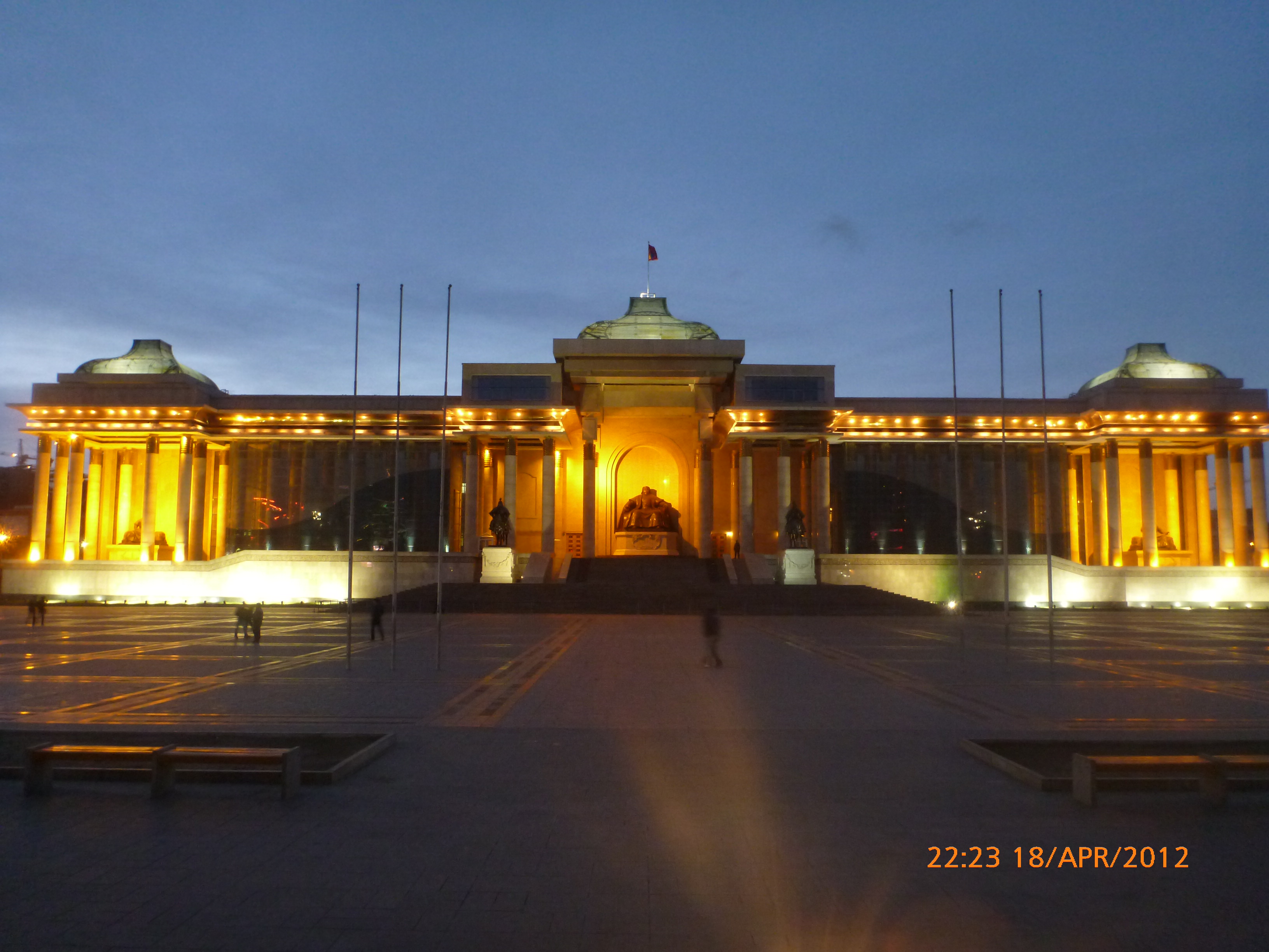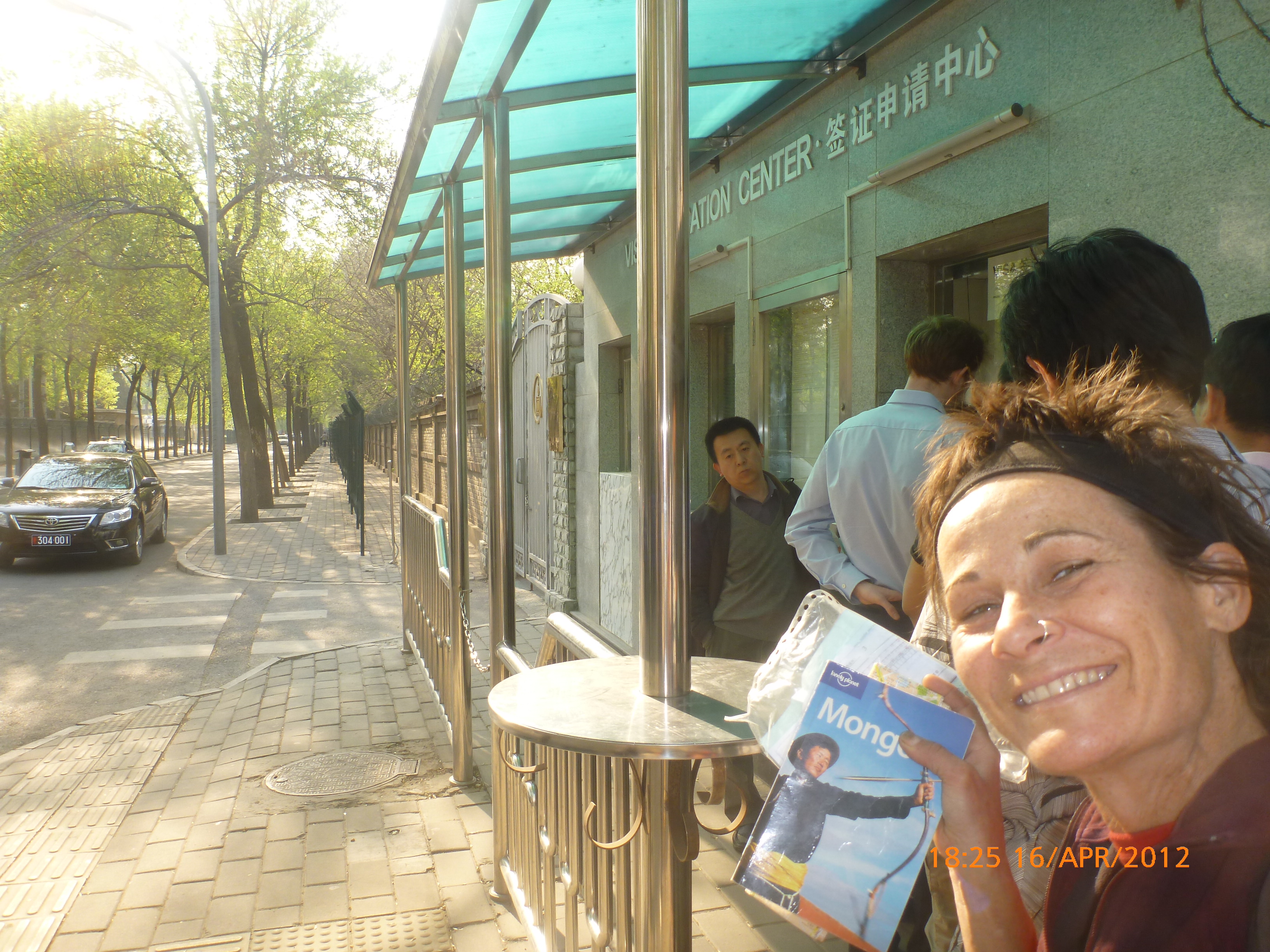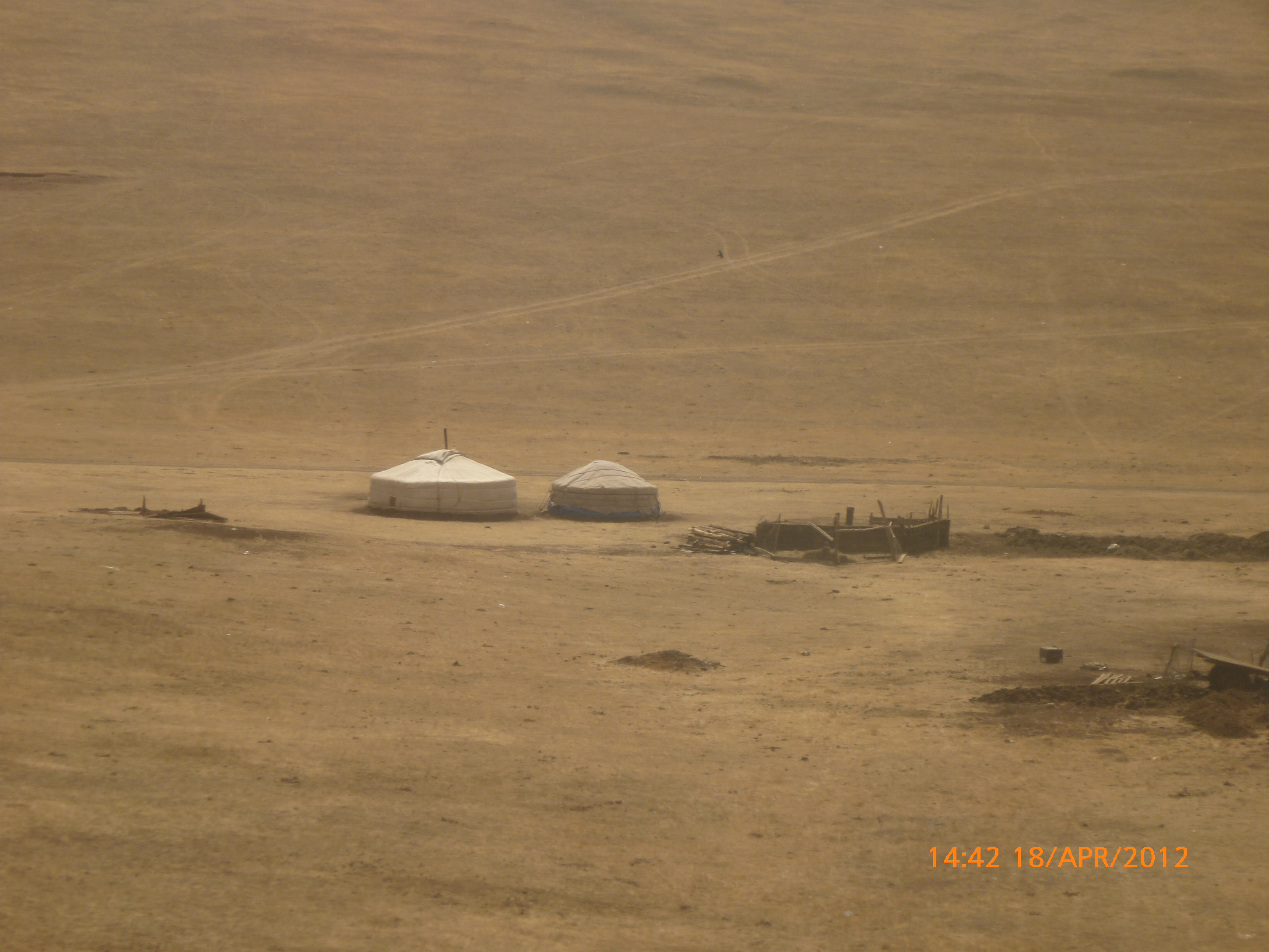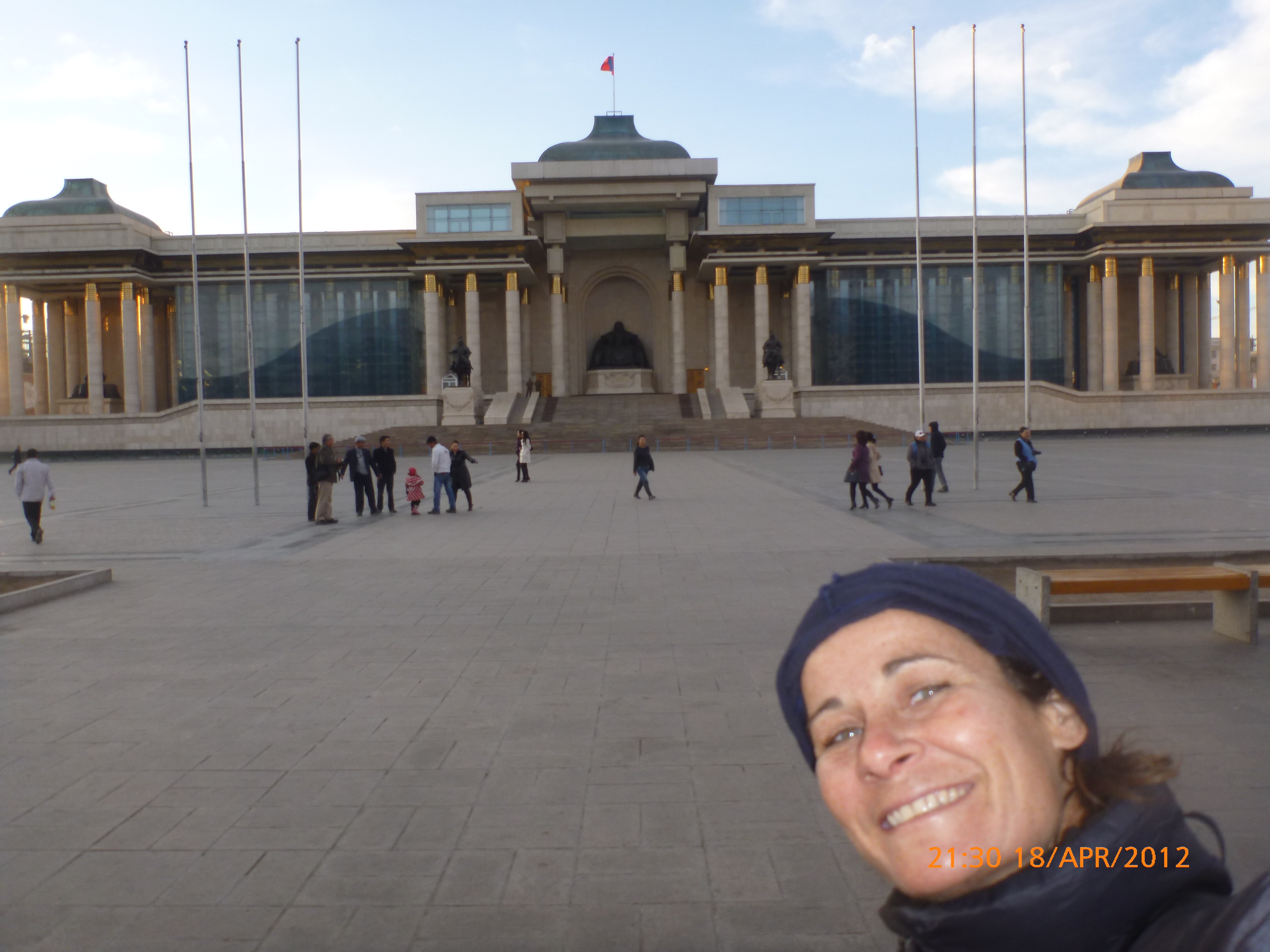 Day 141 590 days to go. Distance: In transit total 8059km. It’s 1.25pm Thursday 19/4/2012 Ulaanbaatar. It’s snowing today OMG!!! We arrived yesterday to Mongolian blue skies like you read about. I would have posted yesterday but after arriving, packing ourselves up, finding accommodation, and doing some have-to’s, the internet cafes were closed. Instead I sent a spot message to let family know we had arrived safe. In my travels today I found this dodgy internet games center, fabulous for uploading photos into word press. Yes!!!!!! I’m back into the land of internet freedom. May I say firstly how awesome it’s been to help the help of Janet and Marcus to keep the blog going through China. Thank you darlings!!!!!! I actually started uploading the photos onto an email when I first started today then thought… hold the fort!!! New country!!!! So I’m back online and loving it yay! Hey I’m in Mongolia!! Hi there from downtown Ulaanbaatar. It appears a gritty tough town full of color, strong characters and activity. There’s a blend of classes with lots of young folk. There’s a range of buildings and apparent living standards. The outskirts of town seem poor and run down. Many buildings are graffitied and painted with religious murals. The graffiti presents like statements as opposed to vandalism so I’ll capture some more interesting ones over the days to share. Central city however is this grand square oozing with Nationalism. There are many art centers, and infrastructure aimed at tourists and ex pats. Yesterday I met three ex pats corporate workers and two of the guesthouses were booked out with NGO workers. The road traffic is nuts with police controlling most intersections. It’s quicker to walk through the inner city area. We arrived about 2pm yesterday. Jason helped us off the train with our luggage. He was a good companion. I also met Rachel from that States who was fun and very passionate. We shared some similar interests and I enjoyed our conversations. She’s on a world trip including Morocco, Nepal, Tibet, China, Morocco and Indonesia. Rachel’s from a small southern country town and loves the exposure of travel to new experiences and appreciations. She said this was her last chance to travel before thinking babies and wants to squeeze the most of the time. Back to the platform….Rube and I packed ourselves up and headed into the city using our lonely planet map. It was pretty good and got us there ok. We already got lots of attention on the platform from railway workers who were interested and friendly. They introduced themselves to me from a refreshing change shaking my hand. It caught me off guard in a very niceway!! One of the men’s name is Mork. I’ve been practicing my Mongolian since when I meet folk. ‘Sain uu’ (hello), ‘Ba yar la la’ (thanks) and ‘Ba yar tai’ (goodbye). The hotel man this morning was teaching me how to ‘hack’ the last ‘laa’ in hello. That’s what it sounds like with your tongue behind your front teeth. Just dodge the spittle if you try 🙂 Arriving yesterday it was soon apparent I should have booked accommodation. I tried 7 places before finding one not listed in the LP but it will do the trick. Access to information is again an issue. I had 3 people yesterday offer me help which was greatly appreciated. I would have asked a dozen others and all folk were very open to helping, patient and accommodating. They also seemed to have a mixed grasp of English which makes a huge difference. Tourist information is provided by the hotel so I’m yet to hit mine up for any help. mmmm not sure how that will go but we’ll see. The guesthouse I’m at costs $7.50 and I’m the only person in the dorm so far. Not sure why given how busy the other places were. It was a couple of dollars dearer despite seeming a bit dodge but I have a place to keep Rube safe and the room is clean enough with heating, a comfy bed and lots of space. I have booked into another place for Friday onwards but I may yet stay where I’m at given the amount of gear I have and the small pokiness and business of the other guesthouses I saw yesterday. They were also up flights of narrow stairwells and don’t’ appear Ruby friendly. I found a bank to exchange my Yuen and a department store to buy an adaptor and some food stuff. The money is called Togrog and the Aussie dollar is good at T1350 = $1. After my have-tos, it was 10pm and the 2 internet places I found were closed. By the way the conductor never asked for the excess cash so I’m $150 richer yay!!! I found a café that had wifi but couldn’t log into yahoo for some reason so the spot messenger had to do for yesterday. I had the best sleep last night and didn’t stir until 9am this morning. I have a list of logistics to do over the next 2 weeks first to register my visa as we’ll be here over 30 days. You have to register your visa within 7 days of arrival so it’s the first job given the Kazakh embassy will hold onto my visa while processing my application. Jason gave me a good tip to photo copy my passport, visa and stamp into Mongolia to have on board while I’m without a passport. He learn t this the hard way in Beijing so I’m happy to piggy back his trial and error 🙂 I rugged up and headed out in the light snowfall. It’s still snowing outside a bit heavier now. I think it was colder yesterday with the clear skies. There’s enough snow to be settling on the cars and paths. I’m not thinking about the cold and cycling. Tomorrows forecast blue skies again and in two weeks we’ll see how the average temp has warmed up. Meanwhile I just want to enjoy this new cool place and it’s folk. I walked to where the INFC office was listed in the Lonely Planet but was told it has moved out to the airport about 16kms out of town. This experience itself was really great. There is now a bank in the office space. The staff called to check where the office had moved to. They gave me a coffee an