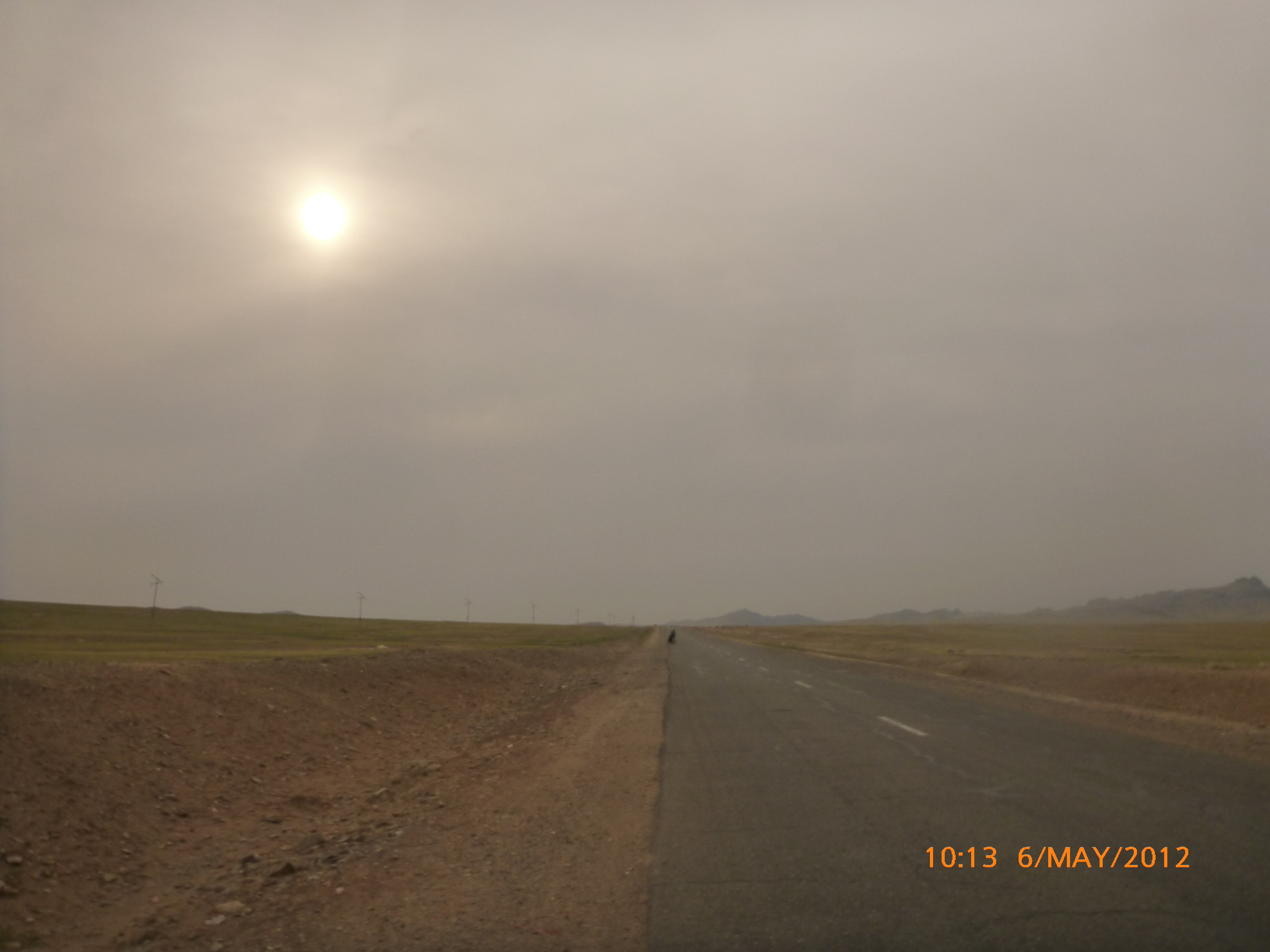 Day 158 573 days to go. Distance today 90km total 8628km. It’s 5.30pm Sunday 6/5/2012 45km east Hahorin (Karakorum).