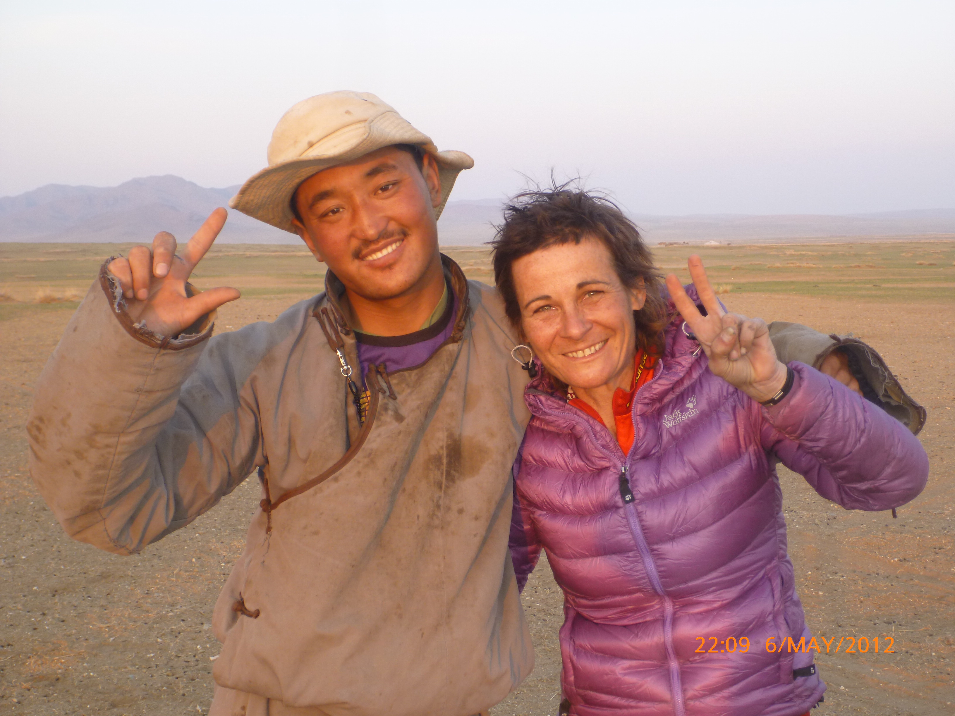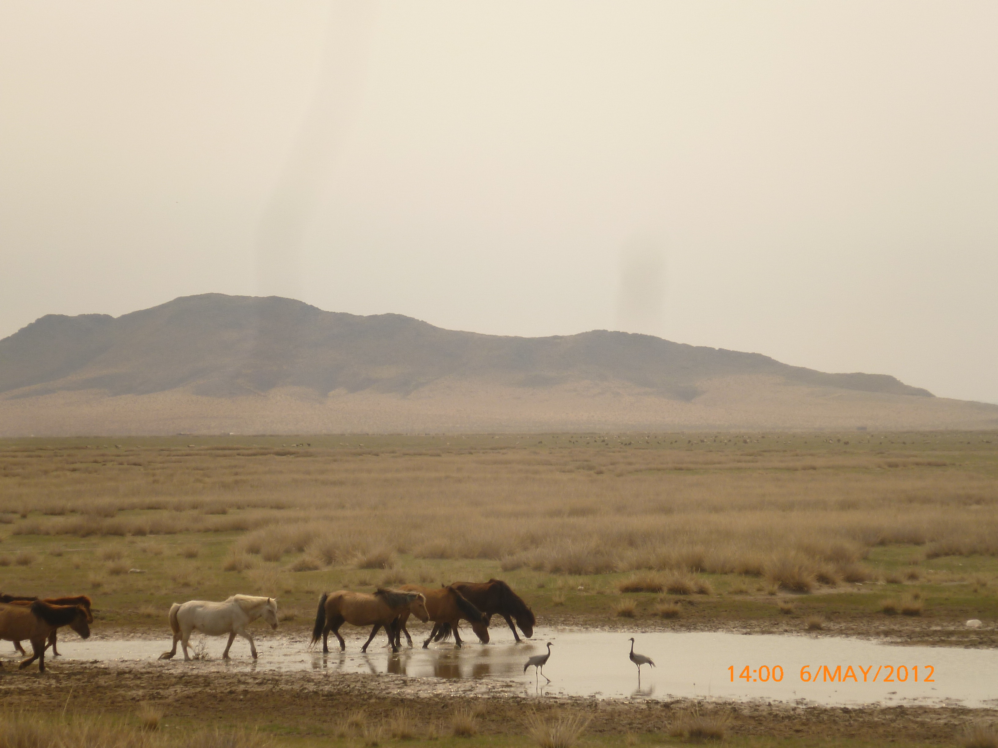 It’s 10pm. The boys ended up at a communal well about 5km away and Kang arrived back quite pale from the crazy ride but with water so he was happy. He said the well was iced round the sides and the water was so cold when we put it through his filter. The ger man is following Kang around like a big brother which is very cute but I think kang will be happy when he goes to bed. They went off to round up the herd at sunset and it looked so great the two boys bonding. A group of his friends arrived earlier and one was very drunk and untidy but they left after a while. Not before being pretty inappropriate with me so I escaped into the safety zone of the tent until they headed. Alcohol seems a problem for some men and women here. It’s very sad to see such beautiful people behaving so pathetically. Who knows there hardships and difficulties I suppose and alcohol is a problem everywhere as we all know. Im sitting on my bed with the full moon showing off through he tent opening and its pretty dam beautiful. I’ve just flicked through the photos from the last days and they’re awesome. We stopped today by a lake where there were a pair of cranes wading and feeding round the edge. They are so elegant. A herd of horses visited for a drink and it was a real treat to watch the comings and goings. We had another stop at a high point before a 50km stretch of desert. There was this old fella tending his herd and came over to say hello. We shared a cigarette and nut bar and he loved getting his photo taken. We stay at a hotel tomorrow at Horhorin for a cleanup and hopefully internet access!!!! Off to bed for an early start. Talk soon x