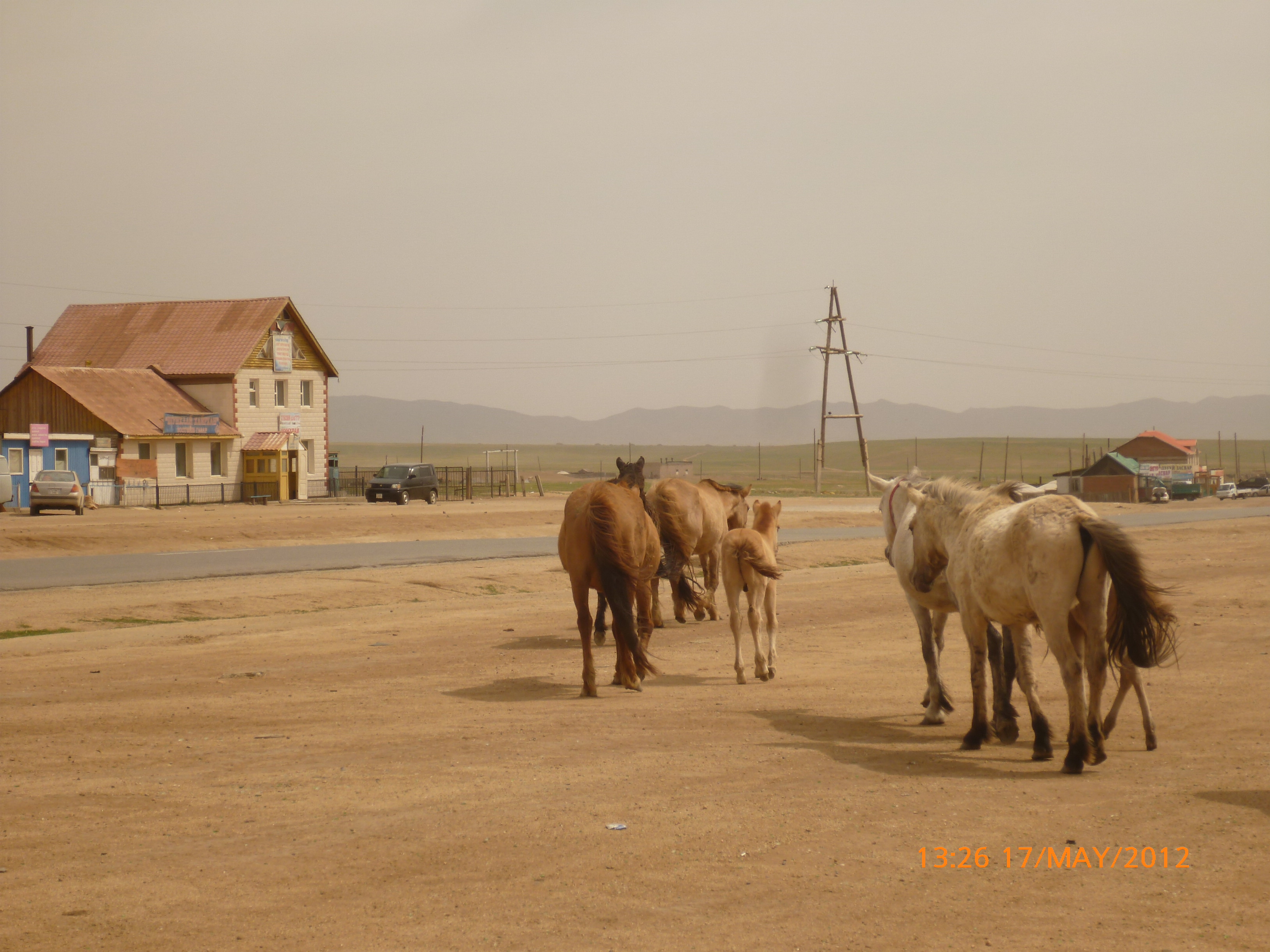 Day 169 562 days to go. Distance: today: 0 km total 8862 km. It’s 1pm Thursday 17/5/2012 on route to UB. I’m sharing my toffee candy with the Mongolian woman next to me so we’re buds. It’s sooo bizar driving back past what’s been an epic ride with layers of cool tough stuff and experience. Don’t get me wrong I’m very happy to be bussing it back to UB it’s just the experience is so different. I am happy to have done what we have to compare and feel the difference. I almost didn’t get on the bus this morning. The bus driver saw Rube all dismantled as I had been told to do and said,’no.’ I ran back to the guesthouse and grabbed a worker who could speak some English. She explained how we had been told it was ok to take Rube and that I had a plane to catch (just to add a bit of urgency like there wasn’t enough drama already 🙂 He then said ok as long as I paid another full fare which I was kinda expecting. He could of asked for the cash in the first place. Anyway who knows and who cares. There was no blood shed and we’re now over half way there yay!! We stopped earlier at a crazy one horse town for lunch. Actually there were about a dozen horses all roaming sleepily about the empty shops fronts. It looked like a movie set. Another bus pulled up and I met a dutch fella on board. He travelled to Mongolia 3 years ago to do aid work, ended up marrying a local woman, and is now running a chain of bookshop supplies to the rural community. Check it out on the internet http://www.bookbridge.org His name was Tim and the ‘lunch stop’ version of his story was very interesting. Back on the bus I spent some time responding to an email from the Sunshine Coast Daily. The timing is quite lovely and gives me a chance to put words round recent events but with eyes that reflect the last 6 months. Yesterday afternoon was just awesome. First I went for a walk/run into the hills behind Tseterleg. Once over the first range you’re literally in the wild and it’s rocky with the smell of pine trees and summer ground flowers. Honestly it was one of the most beautiful places I have walked. I later found out there’s even bears in the area but I can’t imagine too many being so close to town. i didn’t see any scat or other signs. When I got back to the guesthouse a bunch of lads had arrived from a week jeep tour around the aimig. They said there was a girl Naomi from Brisbane down in the cafe. As it turns ut she is from Palm wood Sunshine Coast and works at Chenrezi the local Buddhist retreat. A friend of mine is a monk there and they are also good friends. How freeky!!!! Bla bla bla bla bla yadda yudda bla bla. And it went on. Lovely chats. Naomi is 46 and also having a step way from life as usual so we had allot to share big big fun! She was actually staying at a yurt camp out of town which I had walked past that afternoon. So I was really lucky to have crossed paths and she’s going to send my love to Carla when next on Facebook yay. While packing, the lads from the jeep trip popped in to say hi and we also got talking about Mongolia and other travels and philosophies. Soo bloody interesting I loved it. One fella Tim from Wisconsin has been in Mongolia for 3 years with his wife doing aid work. They have recently visited home and said their appreciation for what they have is so different nowadays. Sounds familiar doesn’t it but three years wow!!! I can’t imagine the level of impact after such an extended time. I have a place to stay if my travels pass their way. It was late to bed and an early rise so horizontal sounds pretty good right now. It’ still a way off with travel and getting to the guesthouse which is 7km from the bus station. Not 141km so IT’S ALL GOOD (just for you Mops 🙂