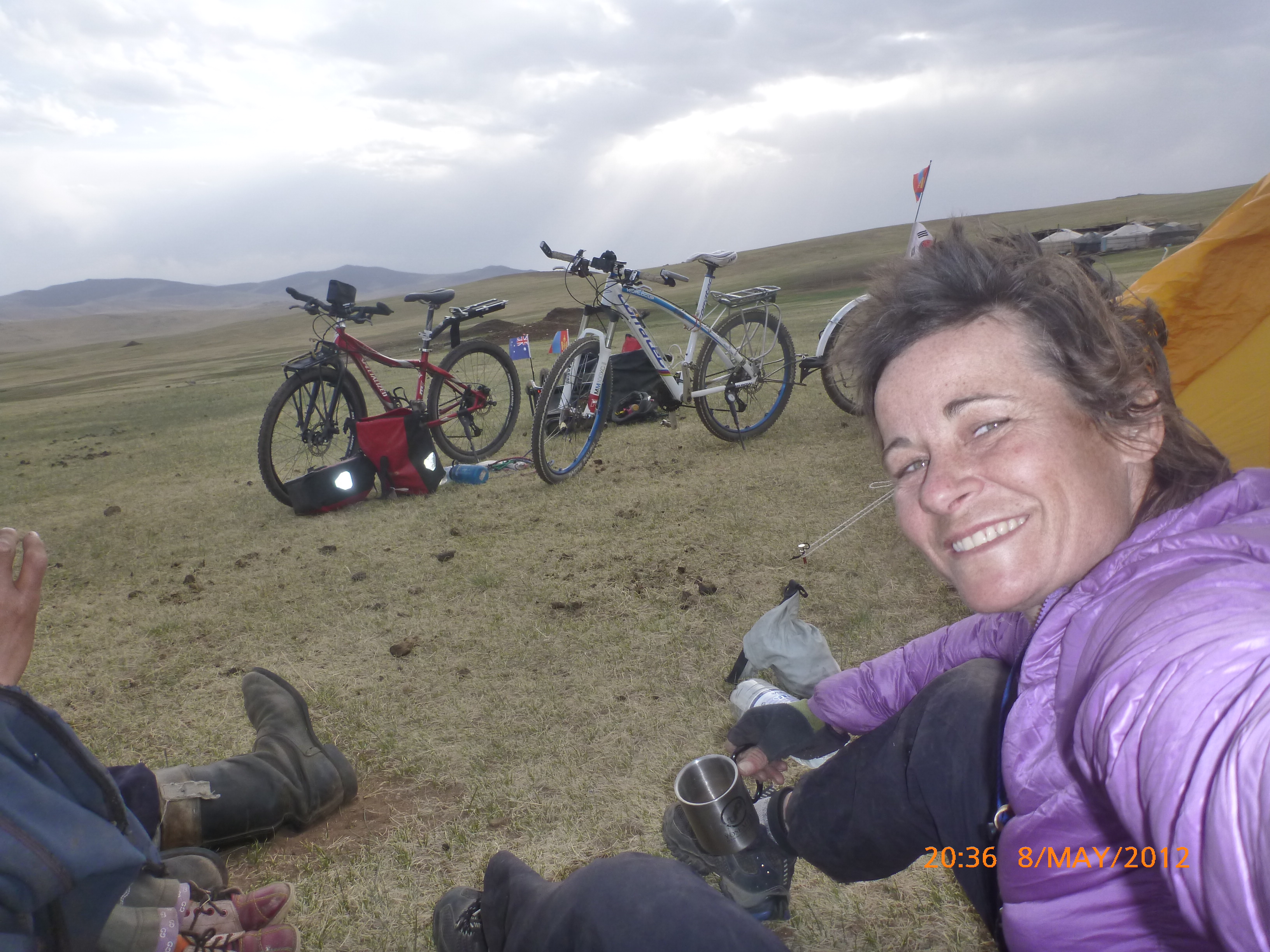 Day 167 564 days to go. Distance: today: 0 km total 8862 km. It’s 10pm Tuesday 15/5/2012 Tetserleg. Hi there fine fine folk. I am soooo happy and excited knowing that in just over a week I’ll be home. What an incredibly cool thought to end the day with. It’s been a day of emailing and skyping and being comforted by emails from family and friends. I have found out from staff here that I can catch a bus back to UB and will book my ticket tomorrow morning leaving Thursday 8am arriving UB 5pm. I spoke with one of the staff here her name is Bayarmaa which means ‘happy princess’ and she is every bit her namesake. Bayermaa finishes work at 10am in the morning and has offered to come with me to the bus station to ensure I make the appropriate booking for Rube and I. How awesome is that!!!! Mum and Dad are liasoning with a local travel agent to arrange the flight booking from UB to Brisbane and all going well this should be finalized and paid for tomorrow. I’ll need the e-ticket to arrange the transit visa assuming I end up going with a Chinese carrier. I tried to upload the photos from the last days but the internet cafe was crammed with local folk so I’ll try again tomorrow otherwise I’ll do it UB so hold off a few more days 🙂 It’s worth the wait as the countryside west of here is very different and very stunning. I got an email from Luo Qianglong, the Chinese lad from Wuhan, who asked me to check his English grammar for an article he is writing. If he only knew how dodge his advisor is but I put my bestest English hat on and hopefully gave him some credible advice 🙂 My news of coming home for a deep breather has been met with such warmth and understanding. It just confirms how lucky I am to be blessed with family and friends so thank you x. The sunset this afternoon was showing off over Tsetserleg and I couldn’t miss the chance to snap a picky on what’s been a very cool day indeedy. I want to finish the post tonight with a handful of comments taken from emails I have received to share the incredible value of love and support. Talk soon x