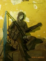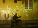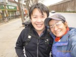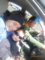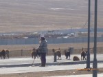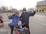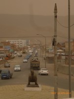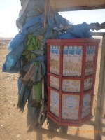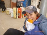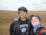 Day 144 587 days to go. Distance: today 82km total 8173 km. Its 8.00pm Sunday 22/4/2012 Ulaanbaatar. Hi there on this sleepy Sunday. Well it seems to be for some local folk at least. Ive been so used to SE Asia and China being 7 days of same same but not so here on face value. It much like back home with a lazy Sunday feel. Not so for us chicks but. We headed off for a cycle day on the road eastwards towards Terelj National Park. The National Park is 78km but the ride out there is open plains and rolling hills so very nice for a day trip. Rube and I loved being back in the saddle and had a cool bonding day. It’s been 3 weeks since we’ve done anything decent together so we had fun. The scenery was wonderful and we managed some cool pickies along the way. The day was comparatively warm say early 20s but there was still snow patches on the ground and the creeks were frozen on top at least. I saw a few flowing patches so spring is trying to nudge it’s way in. The wind was pretty full on being so open and a wicked south easterly. We had a few blown-off the road moments that added to the day’s adventure. Better still we got some great tail wind sections early on the way back into UB. Our weeeeee fun was short lived as a dust storm blew in from the west and we cycled into it for the last hour. It was an amazing thing to see on the horizon. I managed to capture some picks but it didn’t do the force of the storm justice. There was a constant strong wind but then it would gust and send brown dust swirls upwards. It was wicked and really interesting. Ive never seen anything like this before. It’s still really windy outside but the dust has eased up. I was cycling back just in time for a skype date with my partner so I havent as yet had a shower. Anywhere that was exposed is brown like around my sunglasses. It’s a sexy look and a shower will be nice a bit later. I got a few things to do first. Ive filled out my visa registration application and got my warmer cycling gear ready for tomorrows pedal back out to immigration. On the way back today I passed a Korean fella on a cycling tour of Mongolia for 3 months. He was heading out to Terelj for a few days but coming back to UB. We’ve exchanged emails and Ive invited him to dinner when he gets back so I hope to hear from him. It’ll be great to touch base with him and pick his brain for info and tips. His set up was the best Ive seen and very professional. Last night I headed out into town and walked about a different mall area. It was quite a meeting place so good for some subtle people watching. It’s a bit hard to people watch when I’m the one being checked out 🙂 There were some fabulous copper relief murals in the mall and I snapped a picky with the one I liked most. I thought I’d snavel what company I could with a dash of serenading 🙂 All shananagans aside it was a cool piece of art. Just before turning round today I stopped to check where we were on the map and this fella appeared from nowehere. He was very much jolly on the liquor he was carrying but full of friendliness. He could hardly put a sentence together but was keen to share his story and spittle with me eeeeek. I broke his momentum with a photo which he loved and took the chance to exit. We got to quite a high point where we turned round and there was a chorton pole on top with silk scarfs, prayer players, a Buddhist brass bell and cow skulls decorating it. We passed another larger one adorned similarly but with a set of crutches added to the offerings 🙂 I also noticed blue scarfs tied randomly to bridges or road signs. I believe they are to wish a safe journey but I’ll find out more about this as I go along. The folk here love nibbling on a small round roasted nut. It’s common to see piles of shells scattered on the footpaths and about where folk have sat for a time. We passed a number of small towns tucked in the valleys where the road passed. Townsfolk were selling bags of these nuts by the roadside. There’s also many vendors in town selling the same but it was nice to give my pennies to a couple today very pleased about the sale. They weren’t keen for a photo but. I have read that its important to ask before taking a photo. Ive found it better to invite them to join a self portrait which I did today which they refused and to be respected. And that’s about us for today. I’m still to go to the shops for some fresh bread and download the photos from today so I’ll finish up there. I have a line of dust on my top lip that looks very dodge like vegetate or a penciled on mow. mmmm sexy on the inside? Oh well it’ll give the locals in the supermarket and internet cafe a good giggle 🙂 Talk soon x