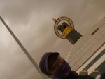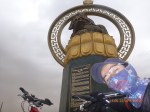 PS the Internet place was all shut up on this sleepy Sunday night so hold tight and I’ll sort photos tomorrow. Speaking of photos I had a look through the ones from today and missed a couple of things for the post. I took a picture o a roadsigns to show the cyrillic language. The first name is Ulaanbaatar. You can see what I need brush up on the Cyrillic alphabet oath wise we’ll have little clue about road signs. There’s definitely no English sub titles this part of the world 🙂 It appears the lion is a national symbol and there’s a huge monument at an intersection on the eastern side of town. I carried rube up the stairs to get a picky with her.