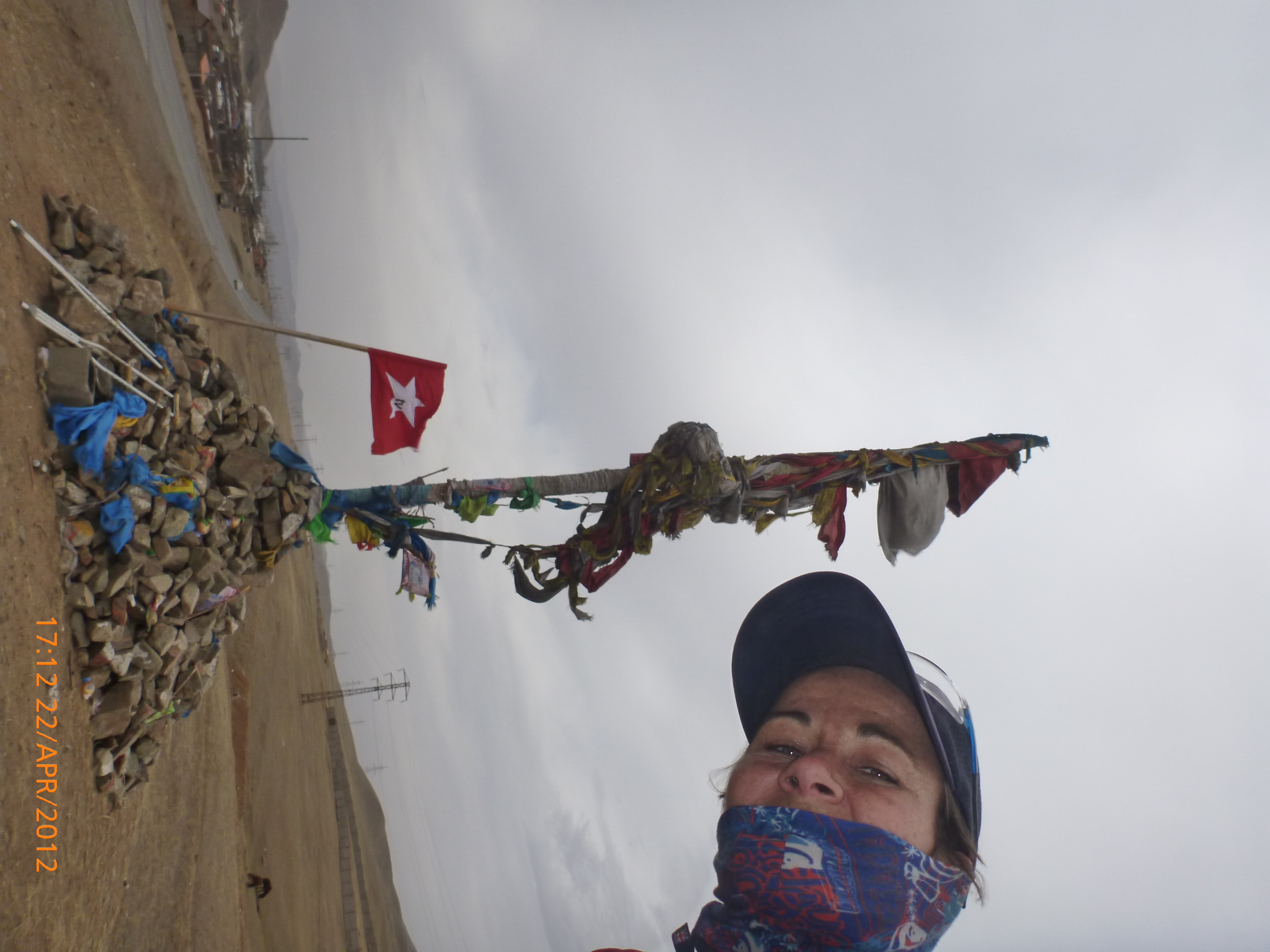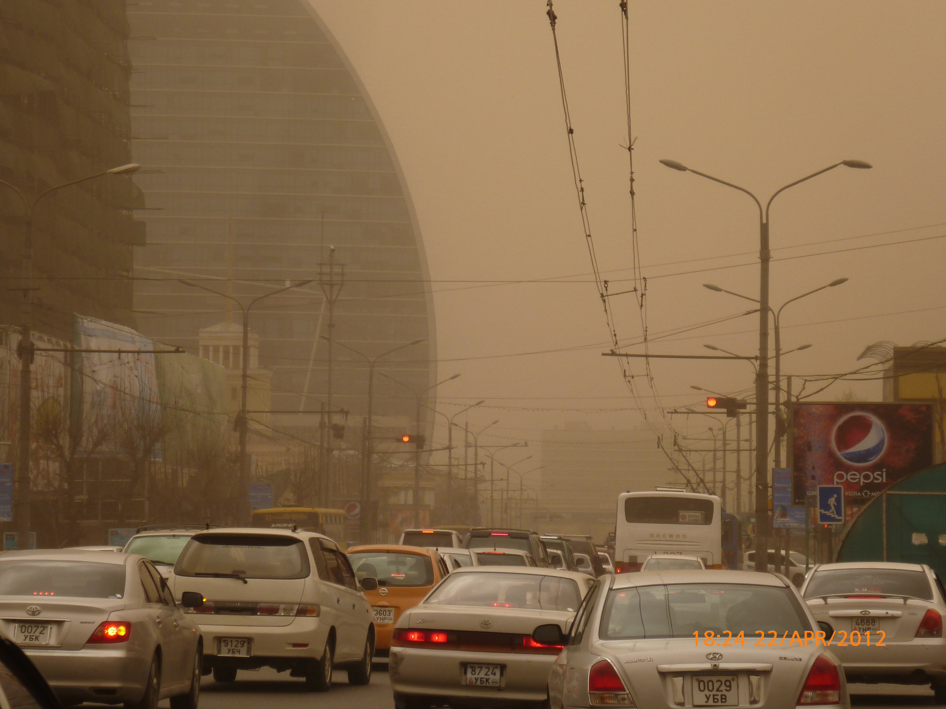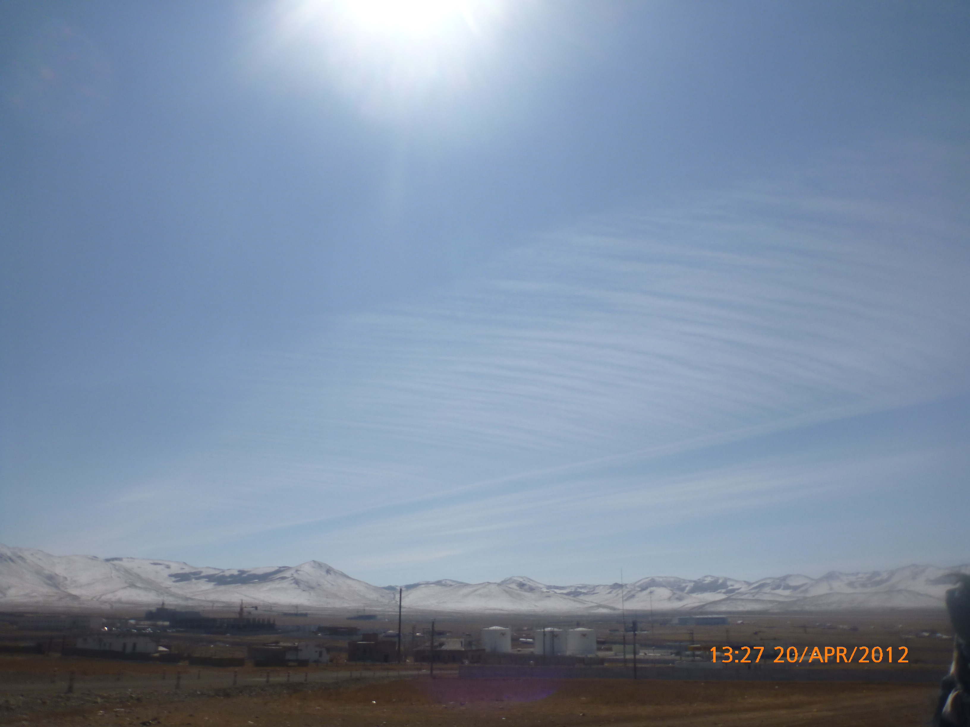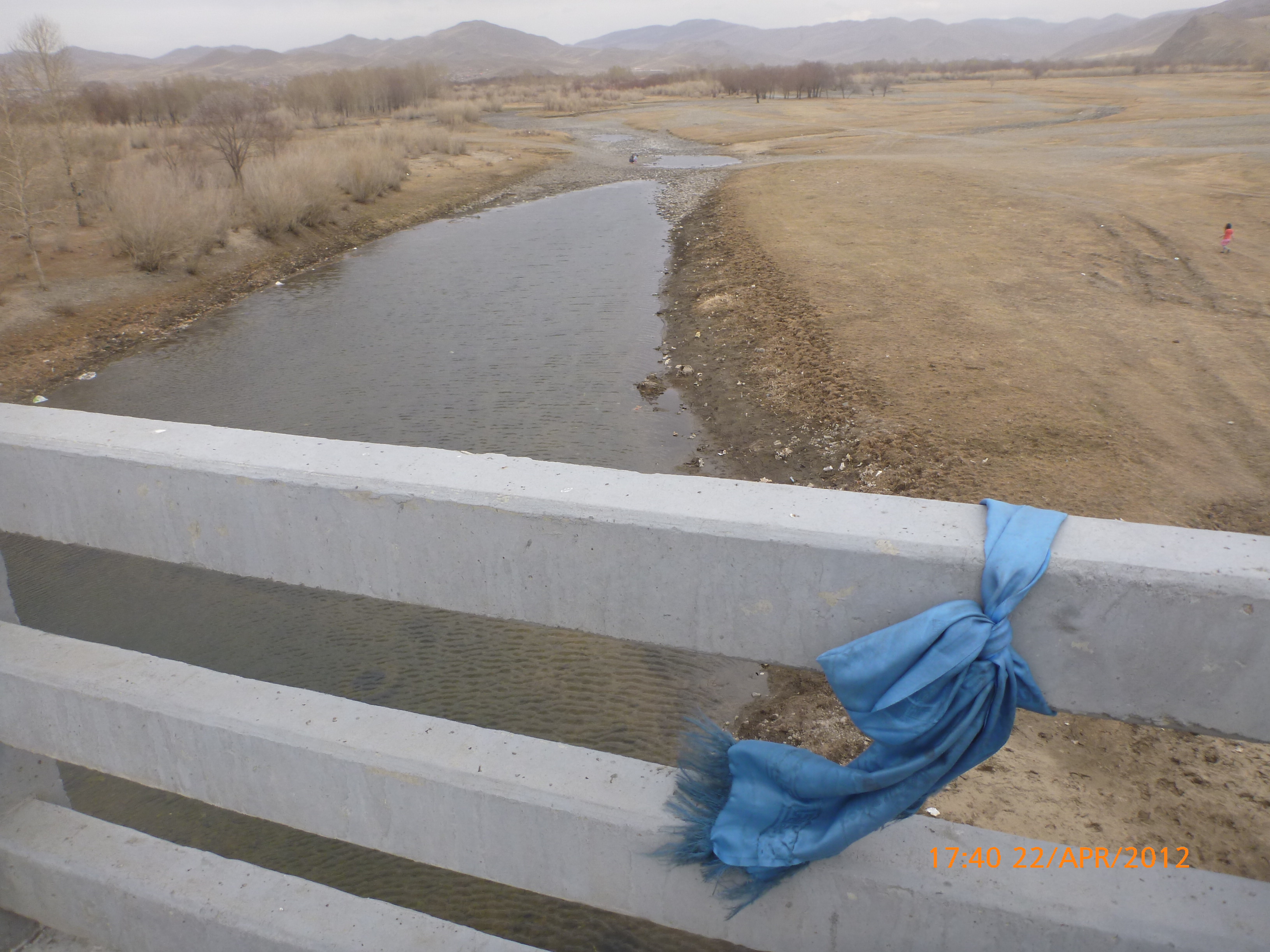 Day 144 587 days to go. Distance: today 82km total 8173 km. Its 8.00pm Sunday 22/4/2012 Ulaanbaatar. Hi there on this sleepy Sunday. Well it seems to be for some local folk at least. Ive been so used to SE Asia and China being 7 days of same same but not so here on face value. It much like back home with a lazy Sunday feel. Not so for us chicks but. We headed off for a cycle day on the road eastwards towards Terelj National Park. The National Park is 78km but the ride out there is open plains and rolling hills so very nice for a day trip. Rube and I loved being back in the saddle and had a cool bonding day. It’s been 3 weeks since we’ve done anything decent together so we had fun. The scenery was wonderful and we managed some cool pickies along the way. The day was comparatively warm say early 20s but there was still snow patches on the ground and the creeks were frozen on top at least. I saw a few flowing patches so spring is trying to nudge it’s way in. The wind was pretty full on being so open and a wicked south easterly. We had a few blown-off the road moments that added to the day’s adventure. Better still we got some great tail wind sections early on the way back into UB. Our weeeeee fun was short lived as a dust storm blew in from the west and we cycled into it for the last hour. It was an amazing thing to see on the horizon. I managed to capture some picks but it didn’t do the force of the storm justice. There was a constant strong wind but then it would gust and send brown dust swirls upwards. It was wicked and really interesting. Ive never seen anything like this before. It’s still really windy outside but the dust has eased up. I was cycling back just in time for a skype date with my partner so I havent as yet had a shower. Anywhere that was exposed is brown like around my sunglasses. It’s a sexy look and a shower will be nice a bit later. I got a few things to do first. Ive filled out my visa registration application and got my warmer cycling gear ready for tomorrows pedal back out to immigration. On the way back today I passed a Korean fella on a cycling tour of Mongolia for 3 months. He was heading out to Terelj for a few days but coming back to UB. We’ve exchanged emails and Ive invited him to dinner when he gets back so I hope to hear from him. It’ll be great to touch base with him and pick his brain for info and tips. His set up was the best Ive seen and very professional. Last night I headed out into town and walked about a different mall area. It was quite a meeting place so good for some subtle people watching. It’s a bit hard to people watch when I’m the one being checked out 🙂 There were some fabulous copper relief murals in the mall and I snapped a picky with the one I liked most. I thought I’d snavel what company I could with a dash of serenading 🙂 All shananagans aside it was a cool piece of art. Just before turning round today I stopped to check where we were on the map and this fella appeared from nowehere. He was very much jolly on the liquor he was carrying but full of friendliness. He could hardly put a sentence together but was keen to share his story and spittle with me eeeeek. I broke his momentum with a photo which he loved and took the chance to exit. We got to quite a high point where we turned round and there was a chorton pole on top with silk scarfs, prayer players, a Buddhist brass bell and cow skulls decorating it. We passed another larger one adorned similarly but with a set of crutches added to the offerings 🙂 I also noticed blue scarfs tied randomly to bridges or road signs. I believe they are to wish a safe journey but I’ll find out more about this as I go along. The folk here love nibbling on a small round roasted nut. It’s common to see piles of shells scattered on the footpaths and about where folk have sat for a time. We passed a number of small towns tucked in the valleys where the road passed. Townsfolk were selling bags of these nuts by the roadside. There’s also many vendors in town selling the same but it was nice to give my pennies to a couple today very pleased about the sale. They weren’t keen for a photo but. I have read that its important to ask before taking a photo. Ive found it better to invite them to join a self portrait which I did today which they refused and to be respected. And that’s about us for today. I’m still to go to the shops for some fresh bread and download the photos from today so I’ll finish up there. I have a line of dust on my top lip that looks very dodge like vegetate or a penciled on mow. mmmm sexy on the inside? Oh well it’ll give the locals in the supermarket and internet cafe a good giggle 🙂 Talk soon x