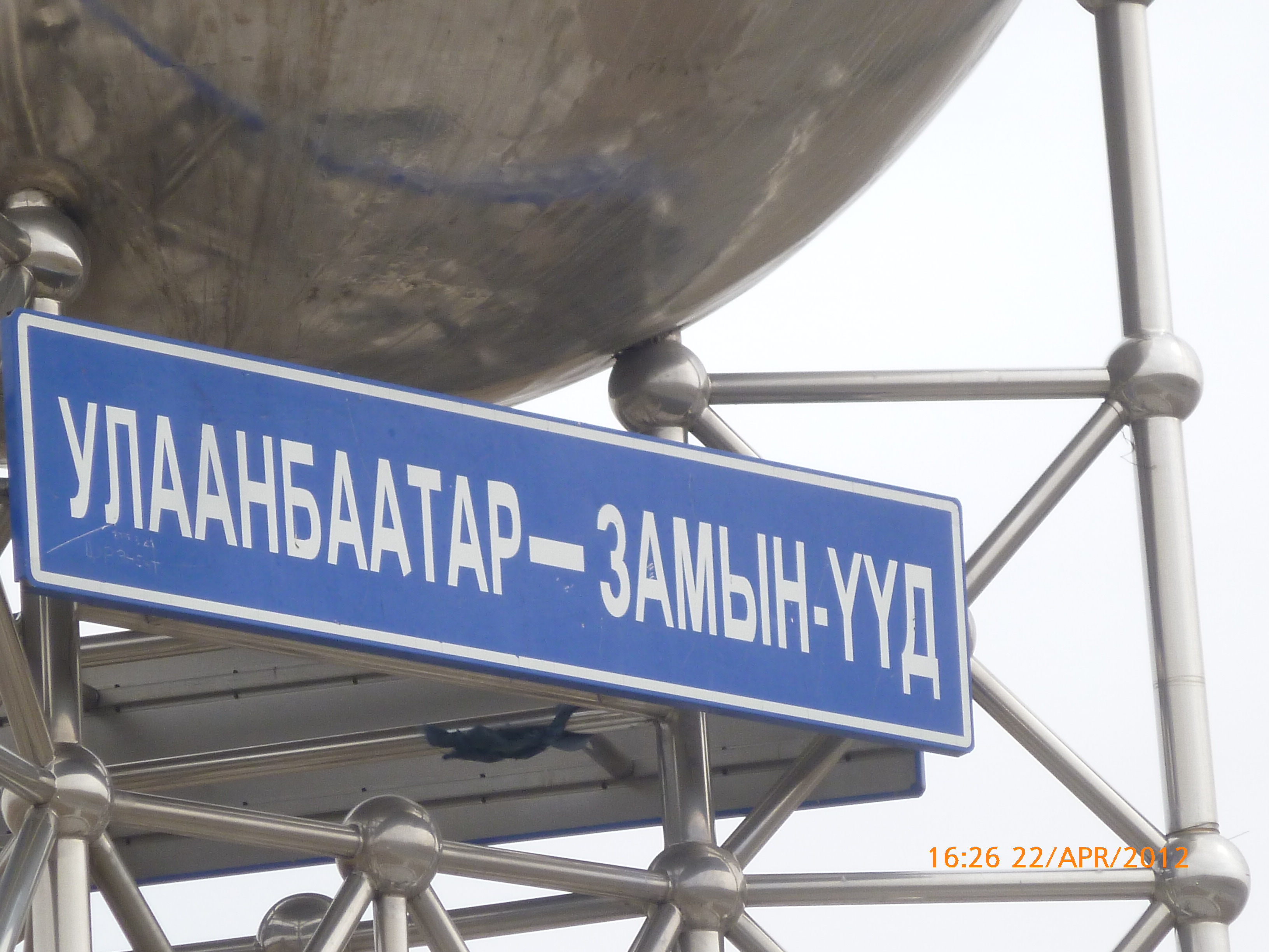 PS the Internet place was all shut up on this sleepy Sunday night so hold tight and I’ll sort photos tomorrow. Speaking of photos I had a look through the ones from today and missed a couple of things for the post. I took a picture o a roadsigns to show the cyrillic language. The first name is Ulaanbaatar. You can see what I need brush up on the Cyrillic alphabet oath wise we’ll have little clue about road signs. There’s definitely no English sub titles this part of the world 🙂 It appears the lion is a national symbol and there’s a huge monument at an intersection on the eastern side of town. I carried rube up the stairs to get a picky with her.
