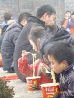 Last night when i got back from the Internet cafe the place was in darkness and no one home to let me in. So I Asian squatted outside happy to people watched to pass the time. This lad who lives next door noticed me and came over saying something very interesting I’m sure then disappeared for a bit. He reappeared with the shop lady who had been out dancing. What a darling. She had all the moves and was showing me her steps humming away still on a dancing high. We did half the kms before stopping for lunch at this speck of a town that had a cafe packed. I had no idea how to order so went up to the lady who was in a stir-fry frenzy and gestured if I could order some rice ad stirfry. She said allot of something to me then was clearly waiting for an answer. I paused and with an idiot grin I’m sure said yes in my best Chinese but clearly not having a clue what I was agreeing to. She burst out laughing totally getting it and gestured for me to take and seat and she’d sort it. And she did super yum.