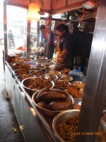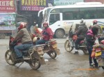 Day 105 885 days to go. Distance today 55km total 6399km. It’s 6.05pm Wednesday14/3/2012 Ning Xiang. Didn’t get far today kms wise but had heaps of cool fun navigating out of Changsha. It was very reminiscent ofNanning,huge city being a maize of cross roads and overpass infrastructure. The difference is we have a couple of weeks experience to better bumble our way through. And that’s the right word for it as there is no elegance to no idea Irene. Our first step was getting on a road in the right direction. Thanks to the lady at the petrol station we were heading somewhere. Next find an outbound road. I approached a man in a suit who ran off. ‘Rube you frightened the little fella!!!’ Then this taxi man stopped and gave us some pointers. We ended up on an expressway but were heading out of the metro area so that was good. Expressways are usually a no no for bicycles but what the hey we’re touristsJ. Unfortunately we pretty much got beeped, honked and blown off that quick smart. We followed a parallel service lane until I acknowledged that was pointless so stopped at a bus station. The moped men were so convincing about which road to take I relaxed enough for brunch. There was a vending man selling folded omelets filled with cabbage and peanuts hot off the hotplate. 50c, fun conversation of gestures with my buddies and a happy tummy later, we headed off. Unfortunately the moped men were having a bad hair day. I started seeing exit signs to places no where near our route. I’m trying to recognize some of the features in the written language. The map I’m using also has the Chinese characters after place names and this is proving priceless. Back to still being lost….again…This was a fair indication we were cycling somewhere other than where we wanted so time to exit. We took an exit ramp against the flow of traffic but desperate situations require desperate measures. I exited into an outer suburb area and found this couple trying to peacefully eat their noodles at a street café. Sorry folks but help!. They were amazing and saved our sorry ar$es today. Between them they could also speak a handful of English yay. I could tell by the conversation between them that we were way off the mark and that they were a bit unsure themselves. He called a friend to get it sorted. Meanwhile she disappeared and returned with a pocket road map of Changsha. With his directions and her map they marked which way for me to go and gave me the map. We were about 90 degrees out J I couldn’t thank them enough and she said ‘It is my preasure to help you.’ And it really is you can tell that they want to help and get allot of genuine pleasure knowing they have done so.’ It’s a common feature amongst the Chinese folk I’m meeting. Not to mention it’s awesome to be on the receiving end of this generosity when we’re in the middle of ‘who-fa-duck-knows-xing.’ Map in hand and looking ever more promising we headed again. It took us a few more checks with folk but we had a map now. At least they had something more to go on than my waving chicken dance. Pretty soon we were on the G319 to Ning Xiang. This colorful debacle took the most part of 3 hours so we cycled an extra 40kms to this small dot town arriving 3.30pm. Nice!! The ride was extra chilly but no rain. I passed this Chinese lad backpacking and he called out ‘hi, where are you from!!!’ I had my break chatting to him for ages. He’s backpacking across the country walking mostly and hitching when he can. He was a free spirited little lad and nice to talk to. He knew enough Enlish to help the conversation along it was great!!! I asked his name and he said, ‘you can call me Norman.’ And I now know that’s his short nickname for his Chinese traditional name. I can’t imagine there’s too many Chinese men withNormanon their birth certificate J We wished each other a safe trip and headed. It was only about 10km down the road and I came across a field of black headed goats grazing. Actually I heard two of them first and looked to see two babies bleating and jumping about as baby goats do. Time to finish that flask of coffee and enjoy the darling creatures I love them!!!! When we got into Ning Xiang we stopped and asked at the petrol station where a hotel might be. The girl was trying to be so helpful but I have no idea what she wanted to tell me. She wrote it down and said it different ways then eventually just pointed to the building next door. ‘Why didn’t you say so in the first place!!!!’ J On that very cheeky note it’s time for an early dinner and bed. Talk soon x