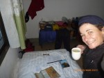 Day 107 883 days to go. Distance: today 93km total 5637km. It’s 5.40pm Friday 16/3/2012 Changde. Yay nailed the timing today and am staying at a Truckee stop just outside of town. 30 yen later very happy with myself. It was a total fluke actually. I needed to go to the loo and spotted the petrol station attached. When I came out this lady from the cafe came over to say hello very interested in Rube and of course and wanting to have a chat. She’s a groover with blonde streaks in her otherwise black hair. She asked if I wanted something to eat then it occurred to me it may have a hotel attached. There were heaps of trucks with their drivers cleaning off the days travel. She gestured yes and 30 yen. Sold!!! I had Rube unpacked and was checked in 5 minutes later. It was 5pm so I had heaps of time to give the girl some attention. I forgot to oil her bits yesterday after her wash so she was a bit grizzly today. Rube was priority one and when done she blew me a big raspberry for forgetting but nothing serious. I’ve earnt lots of brownie points skipping the bus trips so were still bugs. Today was a hilly and chilly ride no rain but it kept the breaks short and sweet. We bought some tofu and a new type of bread from a stall, then bailed the moped men up for directions into Changde. As it turns out we stayed on the city outskirts last night way more pleasant then metro. The men got us on the initial right road but it took heaps of checking to get us back onto the 319. There were lots of moped men about so we were in good hands. It amazing how only 10km out of the city its all rural life again. They seem oblivious to the city craziness in comparison getting on with their simple day to day. This is mostly agricultural with rice, strawberries, citrus, greens and root vegetables the main produce. They finely shred a white vegetable that looks allot like large sweet potato and are drying it on the roadside like we saw in south east Asia. There are other industries like bamboo preparations, limestone sculpture, furniture making, wood cutting. There are also trades like hairdressers, seamstresses, butchers. Yesterday was a great example of it with hession shops set up in the streets and workers busy at their trade or selling their produce. I passed butchers today that had skinned dog meat for sale. But that’s Chinese life. In ,Wild China’ they say that folk here eat anything with legs except tables and anything with wings except planes. Seeing it first hand is a reality check to be sure. Im sitting in the cafe currently and there’s a table of Truckees opposite making the best noi9se all color and animation. It’s the best entertainment when I can sneak a glimpse over to watch their shenanigans. They’re drinking a clear spirit and glasses of hot water over dinner and getting more merry. We had out lunch break in front of an old farm shack that didn’t look in use. Perfect possy out of the weather. I had my tofu and bread on board so I tucked myself under the awning. Pretty soon this woman appeared and gave me the biggest Chinese mouthful who knows what about, I gave her a big smile and wave back. The funniest thing was that she stopped mouthing off and waved back then caught herself and her moment of weakness and walked off giving it to me again. It was so funny. The bread is like a sour dough but small rounds and delicious. Super cheap it was a good find and will be a staple while about. Also in the markets are Cherrie tomatoes that are to die for. I have a little bag of salt of board and risk turning into a Cherrie tomato soon with the rate of consumption. So back to this arv. I oiled my girl and adjusted her cables with an audience of Truckees watching my bike mechanics. I had the Ipod out and open at helpful hints so I didn’t do too much damage. This was a good thing as the men were more interested in the Ipod than what I was doing so it took the heat off. I promised her today a full service once we are in Beijing in 19 sleeps/ Girl all done it was time for me. The best thing about Truckee stops other than the price is that they love their hot water. It come out of a hose at a rapid rate and its yummy. So now we’re both polished up even did the eyebrows and sitting in the cafe amongst the locals love love love it. The cafe lady introduced me to her daughter who’s 28 not married and works with her mum here. She’s really sweet and totally interested in my kit. I showed her my passport and she loved the visa stamps. This got the attention of the Truckees so pretty soon they’re passing round my passport photo laughing at it. That’s fair enough its dodge!! That’s me for the night surrounded by the best atmosphere. The smells being served are intoxicating or it the fumes from the next table. So I’m going to round it off for now and order some dinner. I’m treating myself. Well actually it just gives me a legitimate excuse to sit here longer. Talk soon x.