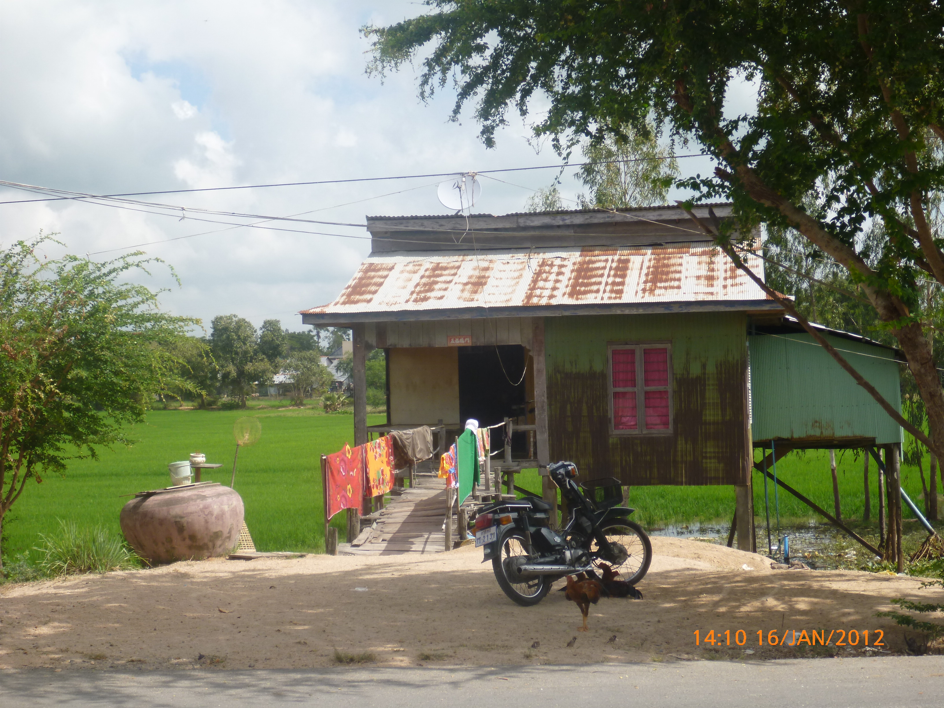 Day 46 1034 days to go. Distance: today 78km total 2409km. It’s 6.15pm Sunday the 15/1/2012 Takeo. Hi there this is my last post from Cambodia. I have attached the last of the photos to day three of the temples and will round off Cambodia tonight ready to get into Vietnam tomorrow. I’ll send a spot check later on tonight but I’m about 50km short of the border following highway #2 south. From the border I’ll pick up highway 91 to Chau Doc. The next day will be heading into Mekong Delta country through Long Xuyen for lunch and onto Cantho (111km). The next days in the midst of it with ferry crossing and floating markets following highway 1A to Mytho. From there it’s onto Ho Chi Min then Philat on the coast where I’ll pick up national Highway following the coast all the way to China how cools that. I’ll cross the Chinese border 19/2/2012 allowing 60 days to Beijing. I plan to be in Hoi An on the 31/1/2012 for a day out to see friends then heaps of time to wander up the coast to Hanoi.