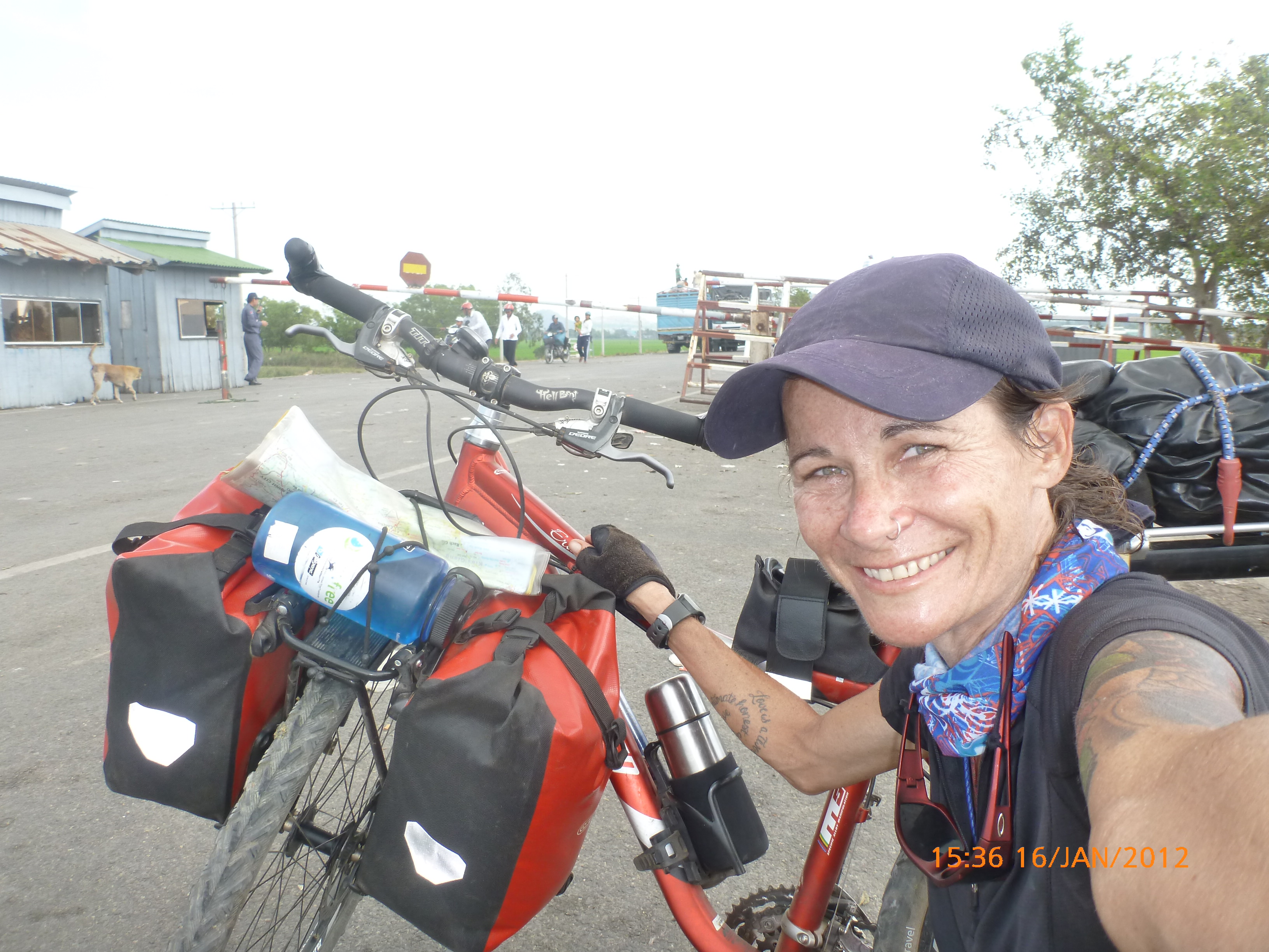 It’s 8.11pm Friday 13/1/2012 Phenom Phen. The afternoon has flown and I didn’t realize the time until I’ve sat down now at the Internet café to upload the photos fromAngkor. Time flies when you’re doing cool stuff and I have been. I’ve just had my first Skype date with my parents. Aren’t they out of control clever and IT all over it? I’m so proud of them. Fun and loved it and we even have another date in the morning as we got disconnected before finishing our chats. I still have a few things to organize before heading off toVietnamso I’m here for one more day tomorrow to give myself a chance to get organized. Rube needs attention – she got battered a bit on the bus ride and some bits came loose which I eventually found in the luggage compartment but lost her seat post screws. I’ll crack some “screws loose” jokes once she calms down it’s a bit early for the Virgo. Not a biggy to fix as I since found spares that will do the trick but it didn’t stop me giving the luggage man a blast for rushing the situation. ”Sorry Miss” he called out as they started reversing out. It was out of my mouth what I thought of their care factor about my Rubes. On a positive there was no bloodshed and he just smiled at me so I walked off trying to recall something I said about acting respectfully grrrr. I returned to the same hotel and found my gear all waiting safe and sound yay. It’s been an afternoon of doing some have-to’s in an attempt to head tomorrow but ran out of hours in the day so tomorrow I’ll sort the rest tomorrow. I want to bring some time frames together to meet up with friends in Hoi An and Family inBeijingso its’ well worth the extra day to bring that stuff together. The photos fromAngkorare uploading as I type very excited to add them to the posts. On the bus today I met this group of five cyclists fromChina. How cool is that. They gave me a neck scarf to pull up over my nose when it’s dusty, a little flag with their cycling logo and an email contact once I’m inChina. Very cool. I think I mentioned I lost Rube’s dinky flag so I’m on a mission now to find a plastic post to mount her new one which is Red and not yellow much to her delight. Ruby winged all the way throughThailandthat her dinky flag made her feel like a lollypop lady. For those not familiar with Lollypop ladies they are volunteers (usually woman) who keep traffic control at pedestrian crossings for school children. They are dressed in bright yellow accessories to stand out. MMMM maybe it was Ruby who “misplaced” the flag on the long boat to Luang Prabang. Full points to the girl for strategy I say (She so has me wrapped around her peddles and knows it) J I’m not sure which way I’ll head toVietnamand will have a look at the map tonight over dinner. Time is somewhat a factor with other priorities so I’ll see what I can bring together tomorrow. The photos have taken longer than initially thought to upload into the blog so I’ll come back tomorrow and attach them to the posts. One extra day won’t make a difference most of you are sleeping anyway J Talk soon x