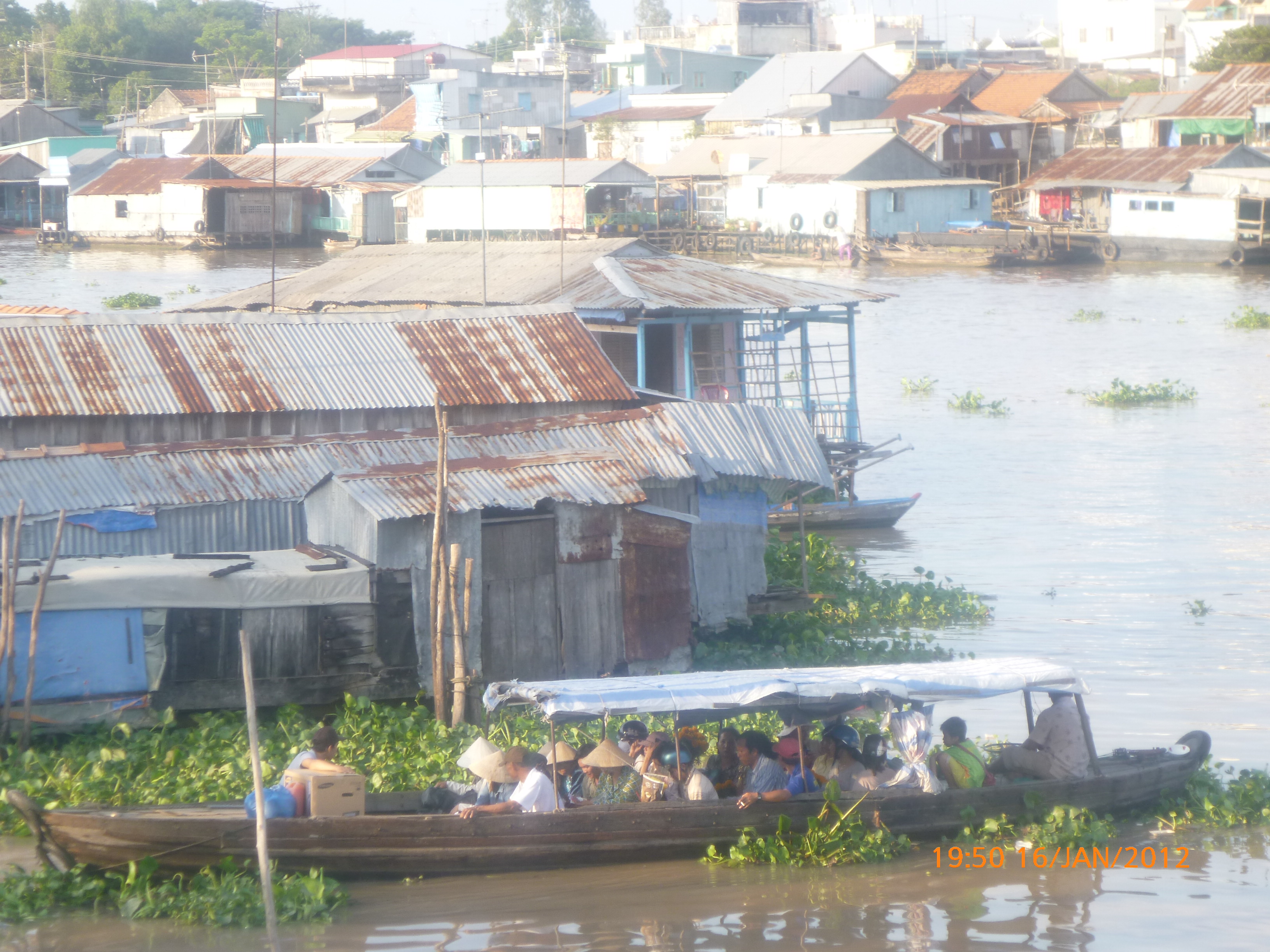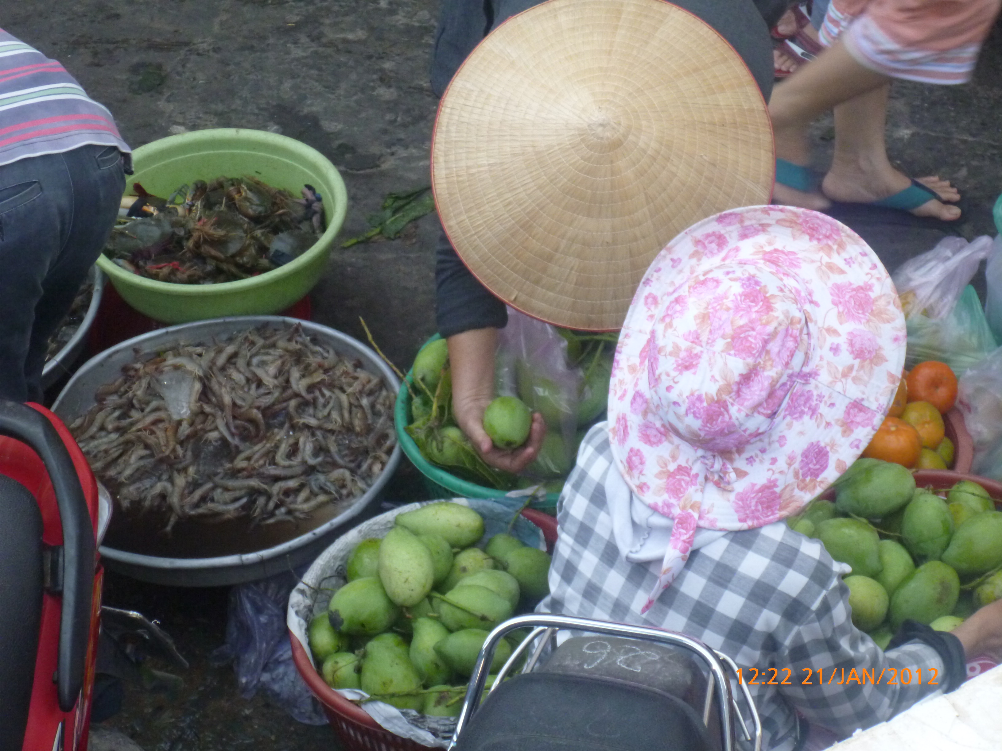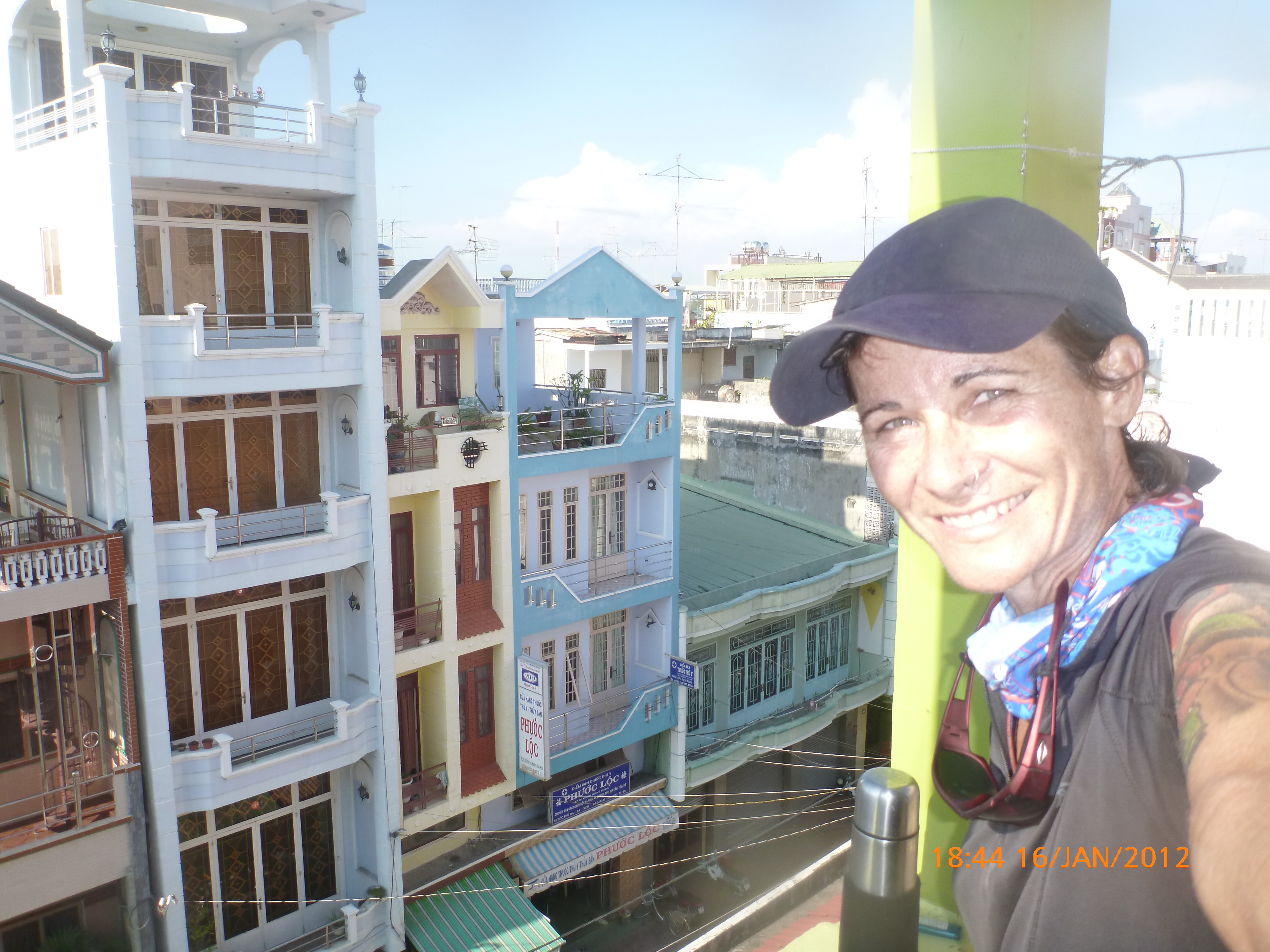 Day 49 1031 days to go. Distance: today 65km total 2454 . It’s 11.56am Wednesday 18/1/2012 Cantho. Or at least I will be in about an hour. It’s 6.36pm and now I’m in Cantho. That post entry wasw very short before I was wonderfully interrupted by a local gentleman who served the transport vans in a town I passed through about 20kms short of Cantho. I love stopping in amongst the real folk. You know where there are those working hard just to keep their heads above water if so lucky. I find these folk the most real whatever the country. I find them the most real to interact with and genuinely wanting to know more about me in a way particular to the person that interests them. Todays a good example. In the town I stopped for lunch there’s heaps of cafes but what appeals is the small two chair roadstall cafe opposite the petrol station where the transport vans are pulling in and out. There’s an old lady there watching intently as the vans pull in the draw a customer. I asked her for hot water as I saw she had a flask, paid her 25c (5000 dang) and went to sit on the nearby kerb but she insisted I take one of her seats. She just sat and smiled and watched me eat my banana baguette. When done I started to post and pone of the van people came over to talk where I was from and where he want to travel to using a combination of his minimal English and map drawings scratched on the concrete. It drew a couple more lads. I love it and get so much out of their genuine effort. They don’t want anything just to talk. In Cantho I was in a supermarket (there’s that supermarket fettish again) pricing up honey options and this little girl came up watching me. I said hi and frightened her off. Then her father came up introduced himself and his daughter to me. I went to shake her hand and she took hold of my hand with both hers and squeezed. It was really beautiful sweet little thing. I spoke then with dad his English was ok. He wanted to know where I’m from and heading to and why and what I was wanting in the shop and what I thought if Vietnam etc. Whatever I said he’d repeat and nod then fire the next question at me. 30 minutes later he thanked me for my time and wished me a safe journey, shook my hand and left. Awesome I love this stuff and will never tire of this simple interaction. Today was a hard cycle not long but a strong head wind and Rubes only had 2 gears working without slipping which made it a bit tricky. It was only 65km so it passed soon enough. It was mostly urban sprawl today I passed through with no major highlights as far as scenery but I was happy to potter along and enjoy the ride flashing and/or exchanging smiles with passer bye traffic of all sorts. I have a real soft spot for truck drivers. They mostly travel in twos and its usually for the passenger to hang out the window and give me a big hello and thumbs up. Despite being the most ‘horn crazy’ they are always considerate passing by such a welcomed change to experiences back home whereby truck drivers can be a bit smart arsey. I’m going on a bit about the traffic of things tonight probably because it really interests me and the psyche of the people is very reflective on the roads. There is never a dull moment and Ive quickly learnt how to move through the chaos as best I can. You cant wait for a break in the traffic as there is none it’s about merging, peripheral vision foremost and adjusting your speed as opposed to direction to blend to where you want to head. Its really crazy stuff and I enjoy the skill and thrill of it. I’m very fortunate that the road users in south east asia are very used to dealing with the unexpected and I have not had any close calls as yet and hope it stays that way. One day, one pedal, one post at a time. It’s a true gift what I’m doing and I intend to savor and squeeze what I can out of the simple opportunities as they present. It’s very cool and I hope you’re enjoying the ride with me. Cantho is very busy with local tourists visiting for the Chinese New Year that apparently starts soon. It took me half dozen checks to find a hotel that would take me for one night and/or had vacancy. I ended up finding one for $7.50 bit more than I’m used to paying but it’s got wifi, air con and hot water so I’m spoiling myself and have even shaved the legs (you probably didnt need to know that but hey we’re all friends here). I’ve planned a skype date with my partner in the morning awesome then it’s onto Mytho 105km. I’ve put my nose in the bike manual this afternoon and got Rubes gears working again so that’ll make it a more comfy cycle all going well. My sister’s been doing some looking into the Chinese New Year this year being the year of the dragon. I’m going to share some of the info she’s shared with me interesting stuff. Hope you enjoy. Talk soon. x