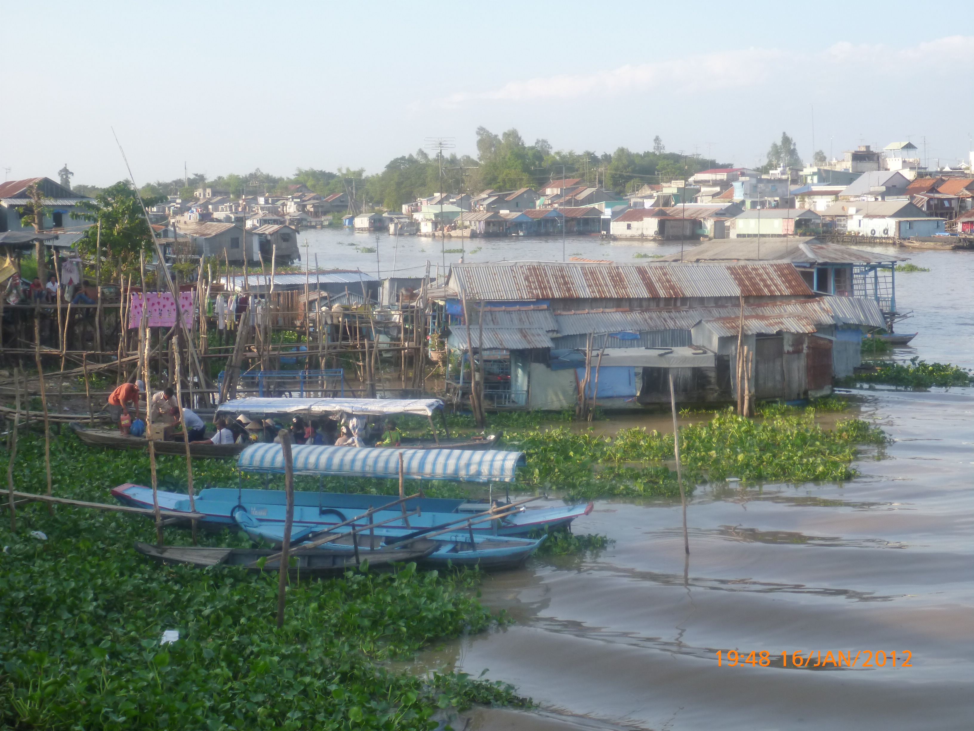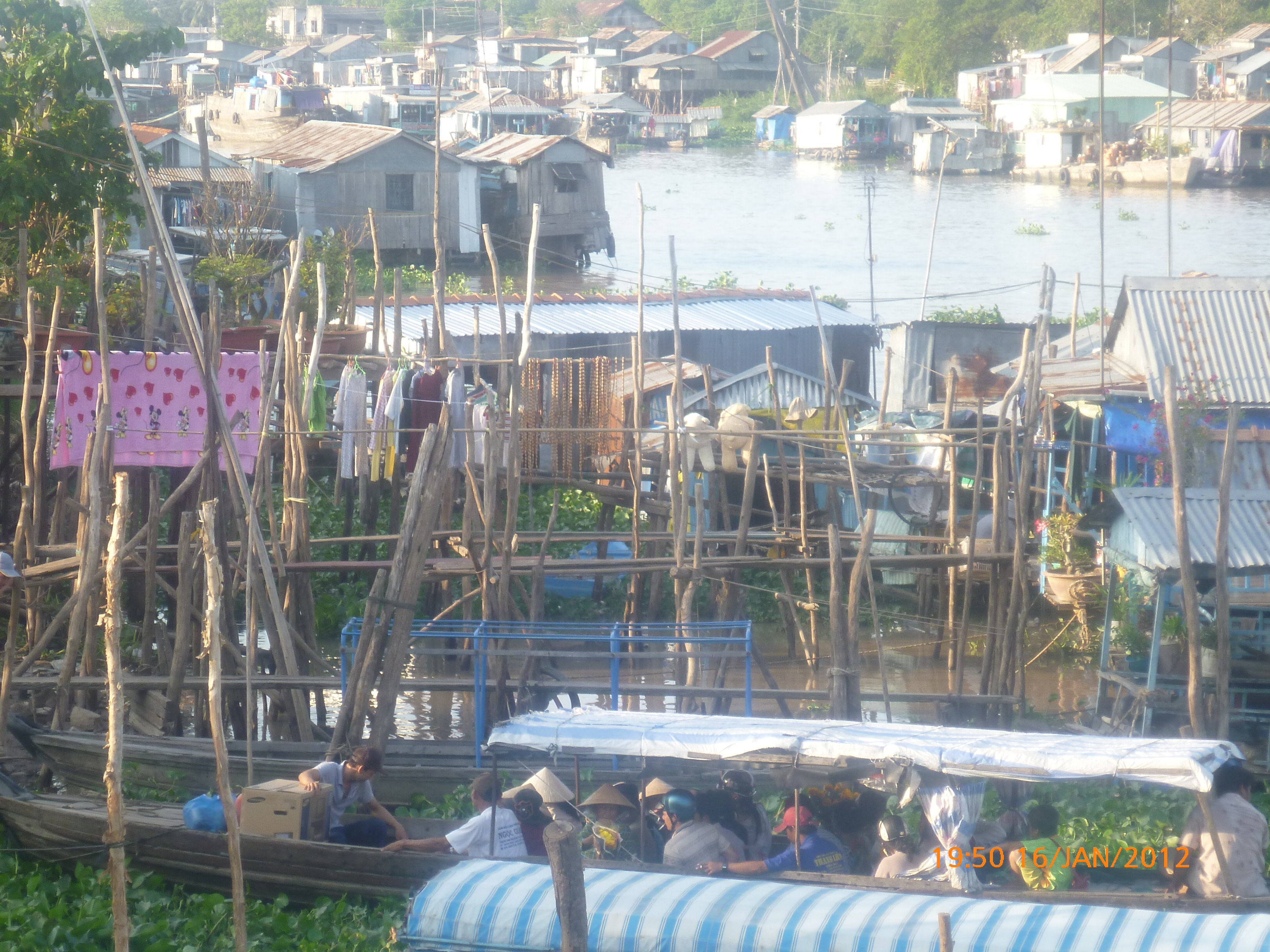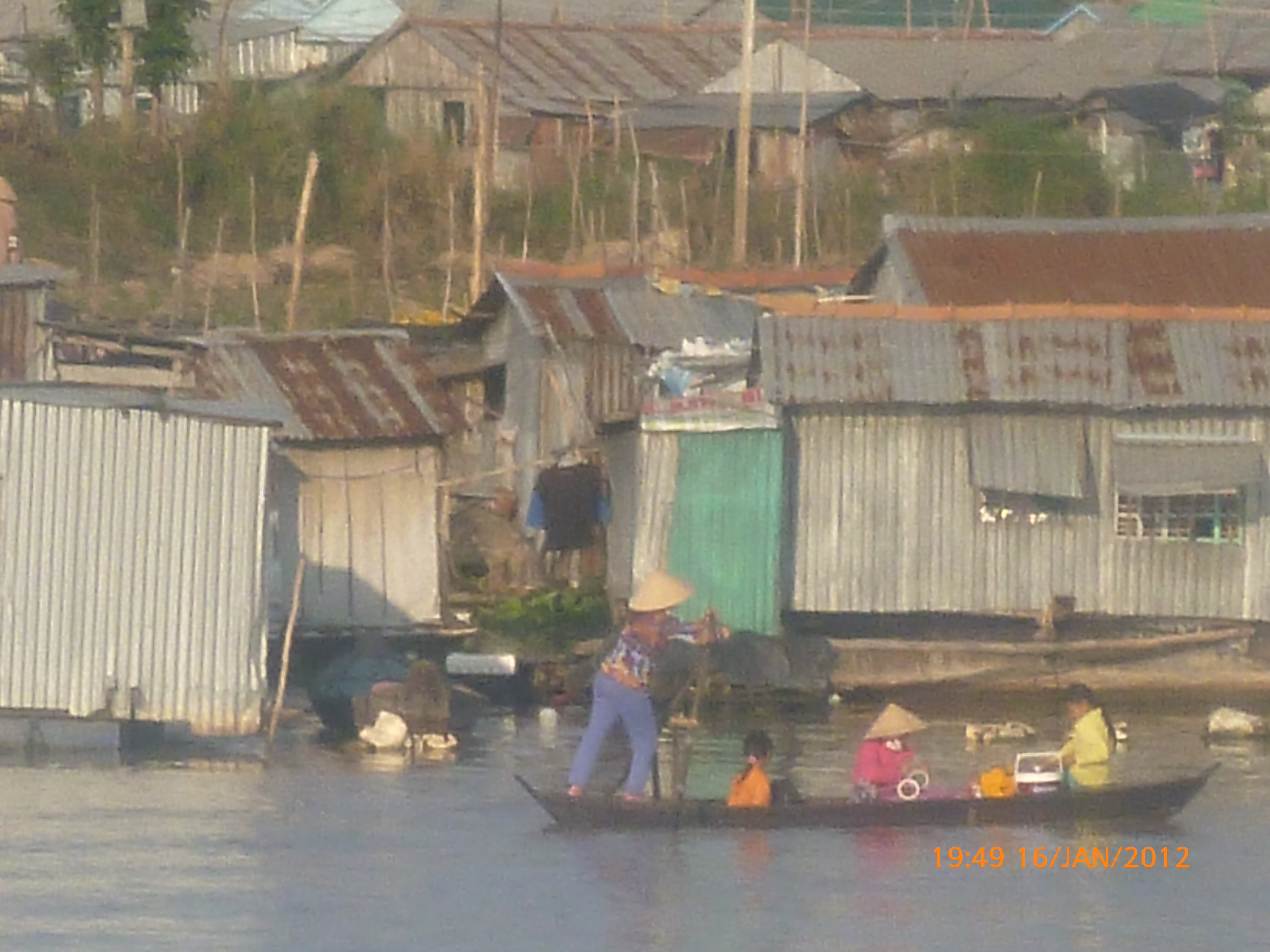 Day 47 1033 days to go. Distance: today 76km total # . It’s 6.30pm Monday 16/1/2012 Chou Doc. I think south east Asian travel has finally got under my skin in a dam good way that is. I must say its got a quality all of its own that’s more a good buzz as opposed to a good time. I’m currently sitting in the street literally in my best Asian squat position trying to give the gps tracker a clear overhead which is a bit tricky in down town Chou doc. The lonely planet describes it as a quiet riverside Vietnamese town . Holly hell it’s so busy and full of people bustling and hustling and beeping to buy road space. It’s definately the size of a town but it’s jammed to the rafters with local folk. I could hear the town coming this afternoon I kid you not. Comparatively speaking it was a quiet ride in from the border and then about half a km out you could hear the quiet town. Love it. The population density and difference of Vietnam is felt immediately and it’s a next level of saturation up. Like