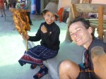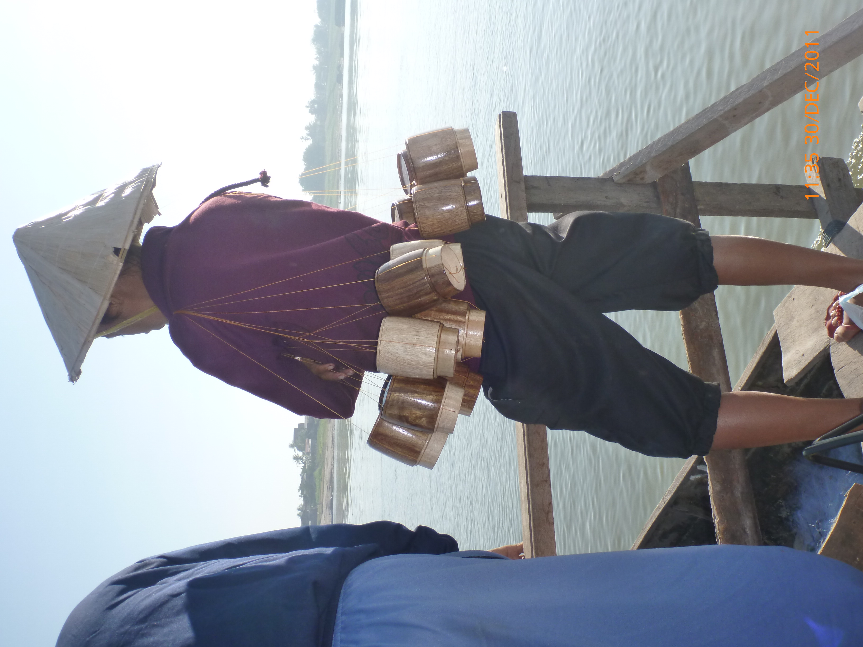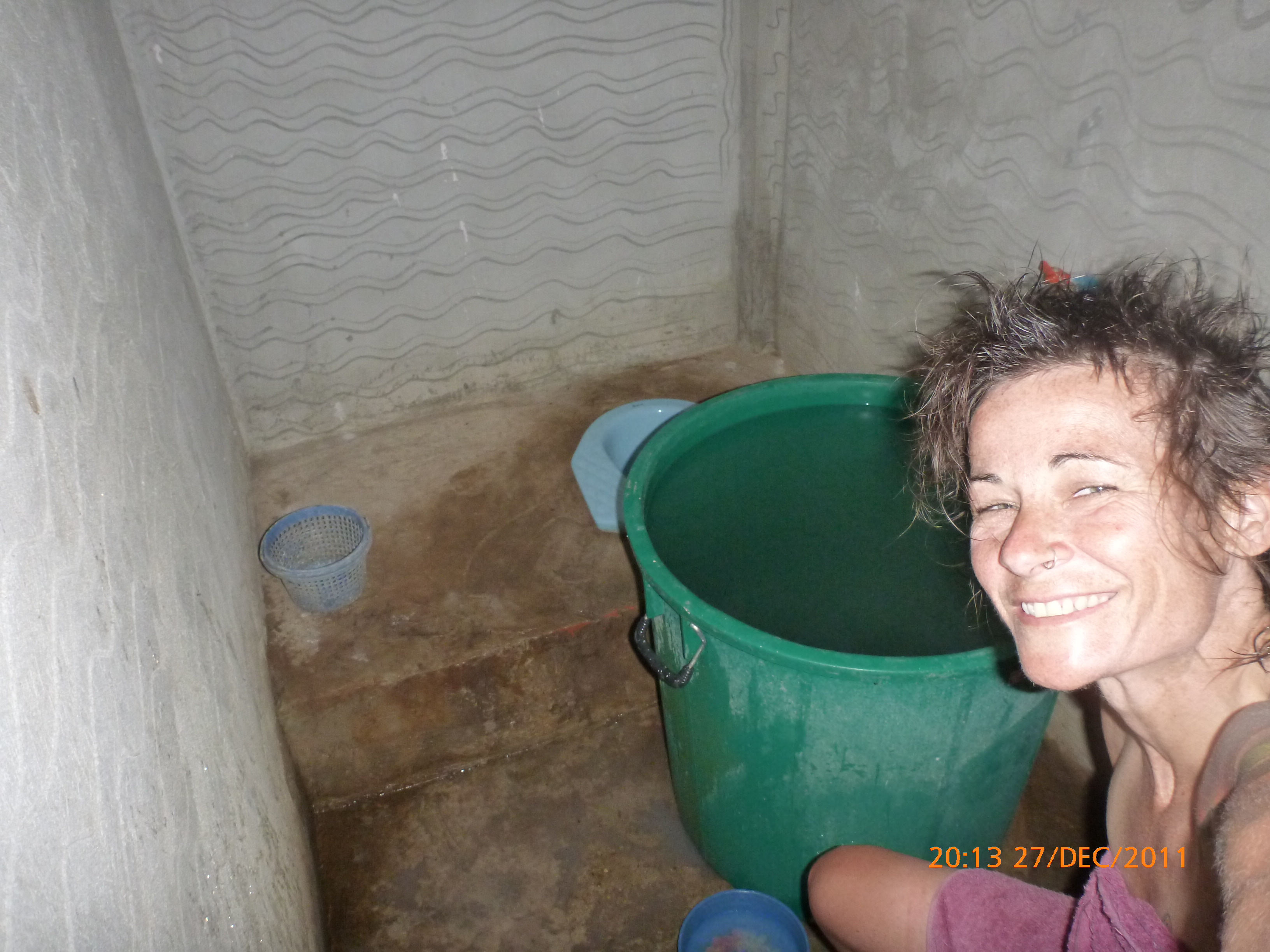 Day 23 1057 days to go. distance travelled today 45km total 996. It’s 11.20am friday 23/12/2011 Kong Lo Cave. I am literally basking in the sun on a rock like a gigantic frilly lizard without the frills. The man who I’s staying with is with some friends eating lunch so as I’m going back to his to grab Rube and the gear it looks like I have some time to update you on today so far while slothing. I’m on the bank at the river mouth where the stream exists the cave and some locals have stalls set up. Great spot to chill after this morning’s venture. The caves amazing the caves amazing the caves amazing. Right then I’ve said it three times just to make sure you were listening and got it. I was first boat6 off this morning I suppose the benefit of staying with a local family and with a driver in the rear and a navigator in the front we long boated it through the 7kms of dark eery delish. The only light were their head torches which flashed across the ceiling to reveal the maize of wormhole smaller caves that spine upwards and outwards from the main cavern. When the light hits the water it sends out this kaleidoscope pattern on the ceiling mesmorising. White sand and stony coves appeared periodically and we stopped and walked one where they have lit the feature stalagmites and other rock formations. It was extra special to have the place to ourselves cause on the way back it was a turnstile of long boats and some of the atmosphere was lost. We had to hop out from time time to time to navigate through the shallower rapids which I loved and added to the adventure. The morning started with a breakfast of grilled fish, like a chicken liver pate which was really yum, green vegetables and sticky rice. The mother seems incredibly facinated by my butt and wants to grab it all the time and laugh. It’s less sizable than hers so she’s very interested clearly in this difference. It’s really odd to have your private bits prodded and giggles at. It’s only women and it’s about curiosity – I’ve had other poke at my chest again being smaller then them generally and so inquisitive about my difference. I just roll with it and laugh and pull away when it’s clearly enough trying so hard not to show my eeeeeeek please don’t do that inner screaming dialogue. That aside I had time then to check out the farm and take some really great photos of the morning light and layout big pottering fun.