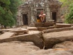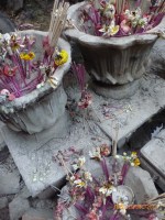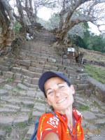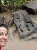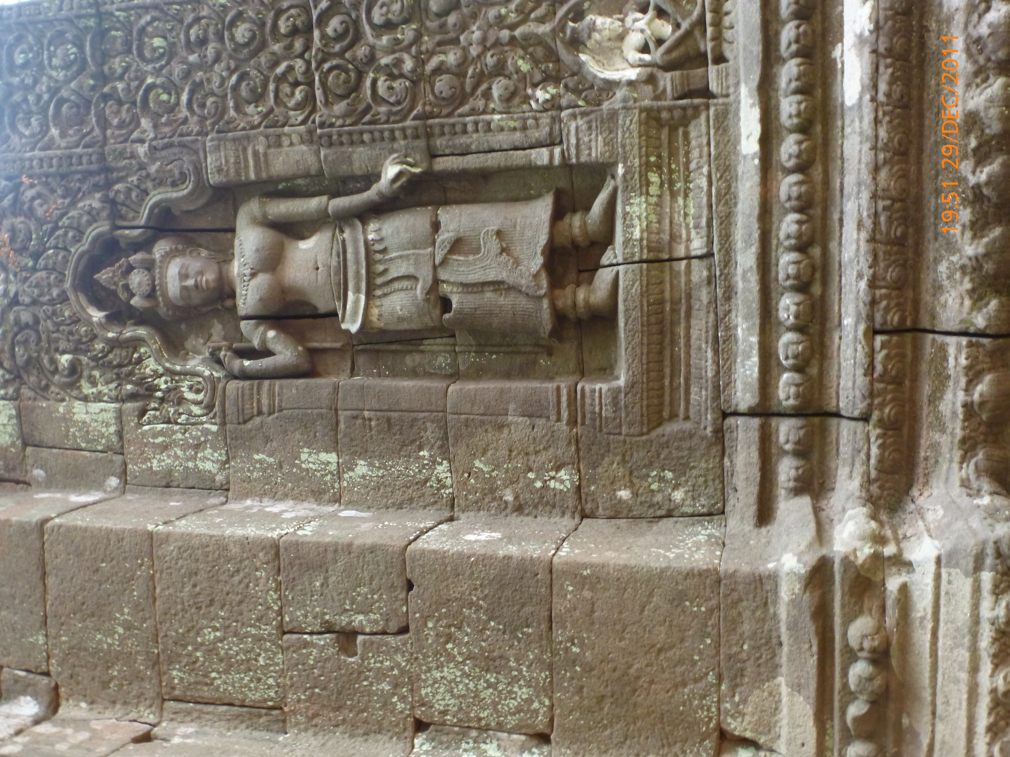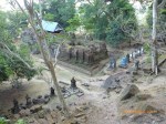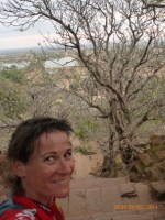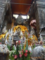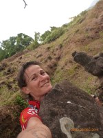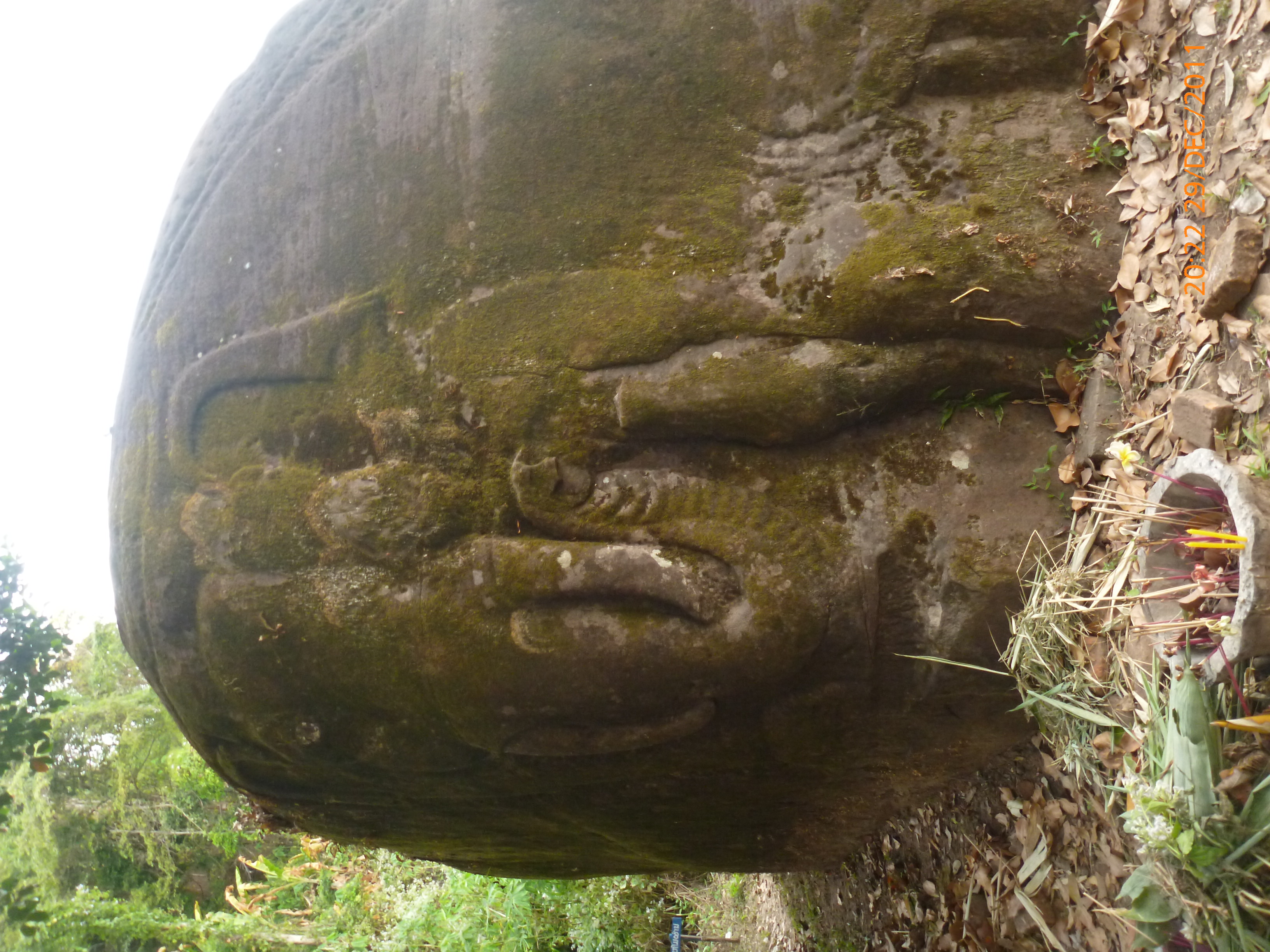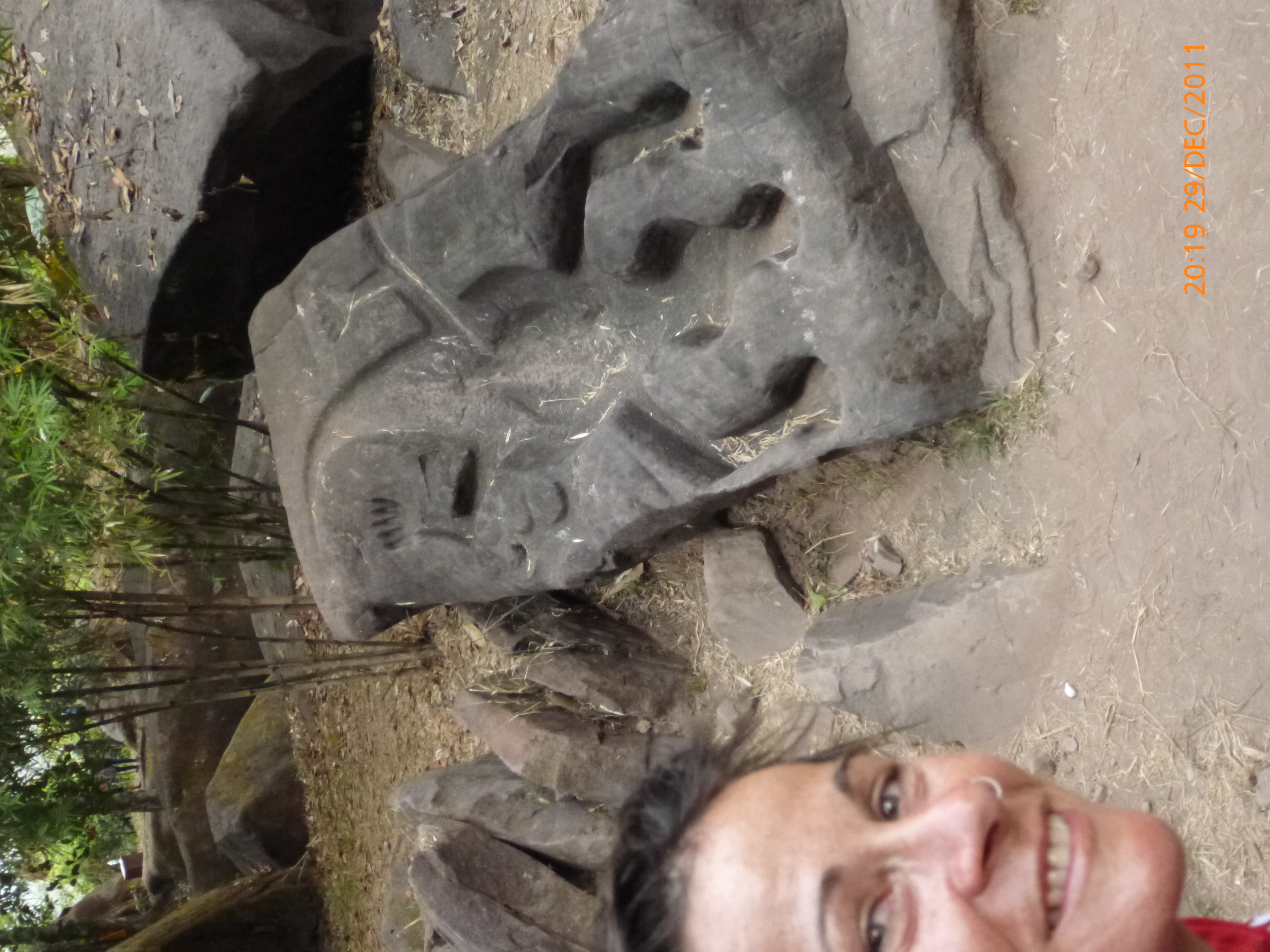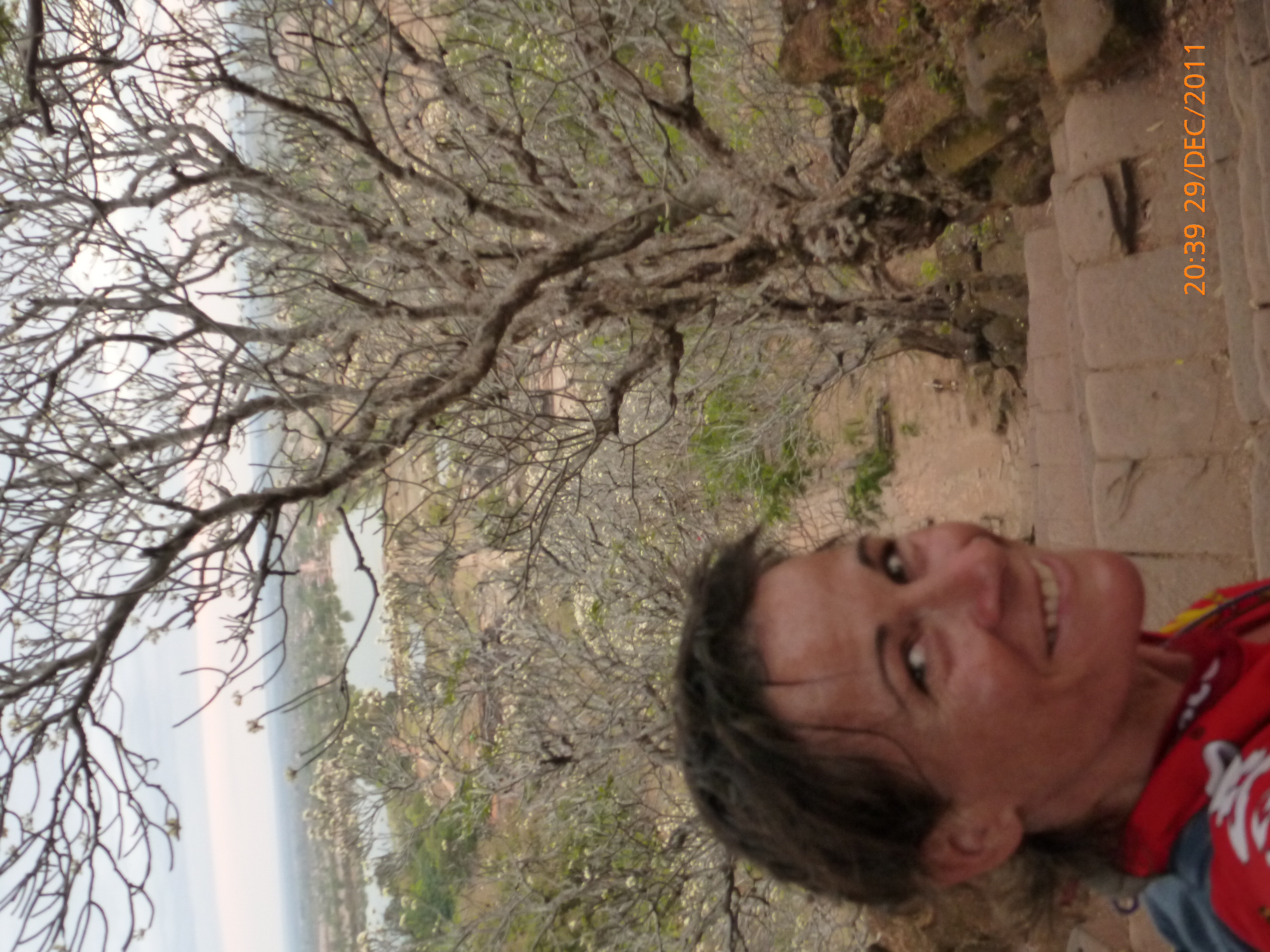 Day 29 1051 days to go. Distance: today 47km total 1400km. It’s 7.12pm Thursday 29/12/2011 Champasak. I am sitting in the cafe attached to the guesthouse I’m staying at 40000 kip nice and the restaurant looks straight out onto the mekong. The village lights from the island opposite are twinkling and the frog are going off. They’re almost drowning out the bunch of knee highs that live here. It’s very active o’clock for them and they’re happy squealing a muck. I’ve just got back from the Wat Phu Champasak awesome awesome awesome got to appreciate it for a few hours including sunset this arv so feeling very chuffed with myself and really glad I bothered. Today started with a recky of Paske interesting place full of pockets of happenings. Paske’s perched on an inlet where the Mekong and Si Don rivers meet. So there’s a real active river life mostly restaurants but also locals enjoying the lazy feel to the place like groups of men playing what I called botchy but here its called Petang. It’s got a rustic french colonial charm that’s a bit dirty and raw. It was still quite sleepy when I cycled round with stalls just starting to cook their breakfast menu grilled meats and sticky rice smells everywhere. That smell in the morning and then at dusk is so yummy. It’s like a smoky grilled BBQ smell of spicy meets with fresh steamed rice in the background mmmmmmmm you can tell I haven’t had dinner yet. I just sniff my way around at these times psyching up for what tempts the most. I think Ive mentioned previously that most locals don’t cook here they eat out and it’s a way of life to cater either quick stop stalls through to restaurants. Its really cool to check out the roadside stalls industriously preparing their menu for the hoards that come through at hungry o’clock. Mostly locals snack on the run or buy takeaway in plastic bags or some sit at the few chairs if available. There’s allot of social eating places where groups will sit around a grilling plate and it’s a free all everyone in selecting from fresh meat and veg cuts and grilling their bites. I found the local morning market which is also one of my favorite places and stocked up on bananas and found some baguettes yay – clearly recovered from my ant ordeal with no PTSD clearly seeing I bought three. I was trying to find how to access the bridge to Champasak and came across a dead end but right there was this pig market with this crazy frenzy of bidding and bartering it was insane. It was a bit challenging as the pigs welfare is not a priority just the first in don’t miss out yelling and squealing eeeek thing. Pigs were being pulled in an out by the legs in bright yellow hessian bags and it was just so business as usual I stood there for ages catching the eyes of locals and nodding at their good buys. i hope I don’t come back as a Laos pig that yellow is not my color. I’ve just tuned in to the layers of sounds coming from the river peoples voices at different distances and lots of put put motoring from long boats that’s the main river transportation. Frogs are the sopranos and geckos occasionally come in with their double chirps. It’s balmy and the breeze coming off the river is really melting. It’s nice there’s no tourists at least we’re Im staying. There’s a couple more upmarlket hotal further up and the few I have seen today may be there if there overnighting. I was expectng to see more tourists at the wat this arv but it was mostly laos people. There were these two japanese girls who were so sweat came up recognizing ruby as a specialized bike like a bike at home and kept saying how much I need to include Japan in my itineracy. That’s a bit of a detour. I checked out of the guesthouse in Paske and had my helper ‘Con’ who worked there so wanting to help. He sleeps in the foyer like most workers seem to do at guesthouses and going by the way Ruby’s seat was positioned this morning I think he and her played up all night she’s very quiet about the topic and a but sleepy today I noticed 🙂 Before leaving I ran into this crazy couple I met back in Kasi Christiano from italy and Graziella from France. They are so well travelled for an extended period of time and back in Kasi I got chatting for a bit about Madagascar Graziella’s favorite place. Anyway it was really great to bump into them again and was able to give them a card in case they want to keep in tough. We’re roughly traveling in the same direction for the next month so it maybe we meet up. The cycle to Champasak was lovely. The Bolaven Plateau is on one horizon and mountain ranges on the other. It’s very rural and agricultural with rice fields the main crop. I found this empty roadside stall right on the river to stop for lunch which was beautiful and the baguette never tasted so good. Champasak itself is very laid back comatosed even and there’s lots of places to chill and space out watching the river life potter by. I was tempted to just find a shady spot and play with my belly button but motivated myself to go check out the watt and so glad I did. It’s from the 6th century and it oozzed this age quite primitive in some of it’s rock impressions of geckos and elephants. Aparently it was the blueprint for cambodia’s Ankor watt so that’ll be interesting to check for similarities when I’m there. The watt runs up a hillside and from the top there’s a terraced outlook over the complex. Flowering frangipanis line the stairs up the hill beautiful and the light was great being over sunset. It draws locals who leave offerings and burning incense in the shrines and there’s ladies selling offerings for those who didn’t come prepared and feel the urge. I noticed the Buddhas had been dressed in gold robes and the one in the courtyard even has an umbrella. Well it is hot you know and you too would have sun exposure concerns if you were that old 🙂 It was very laid back and non touristy and a wonderful plac