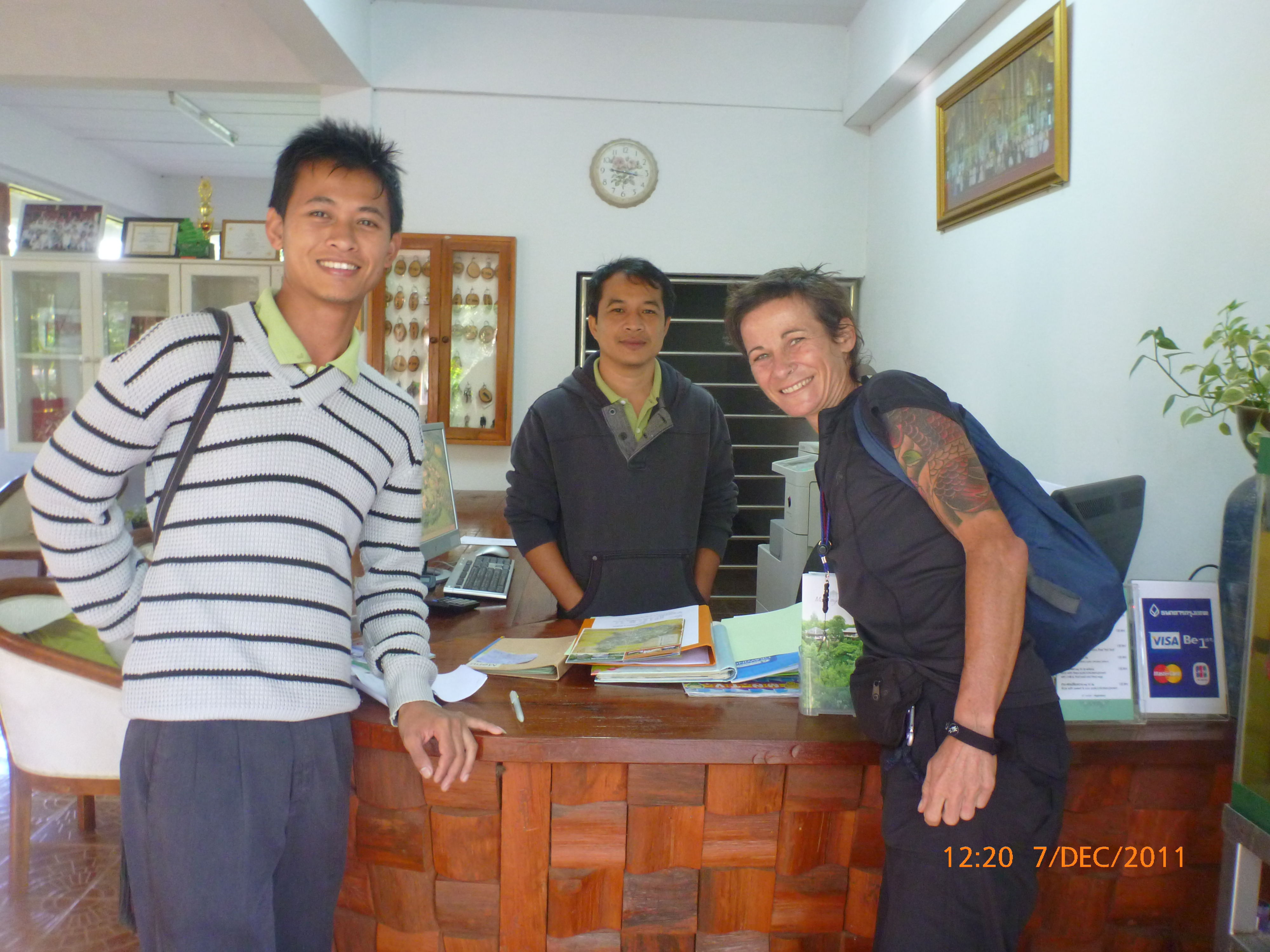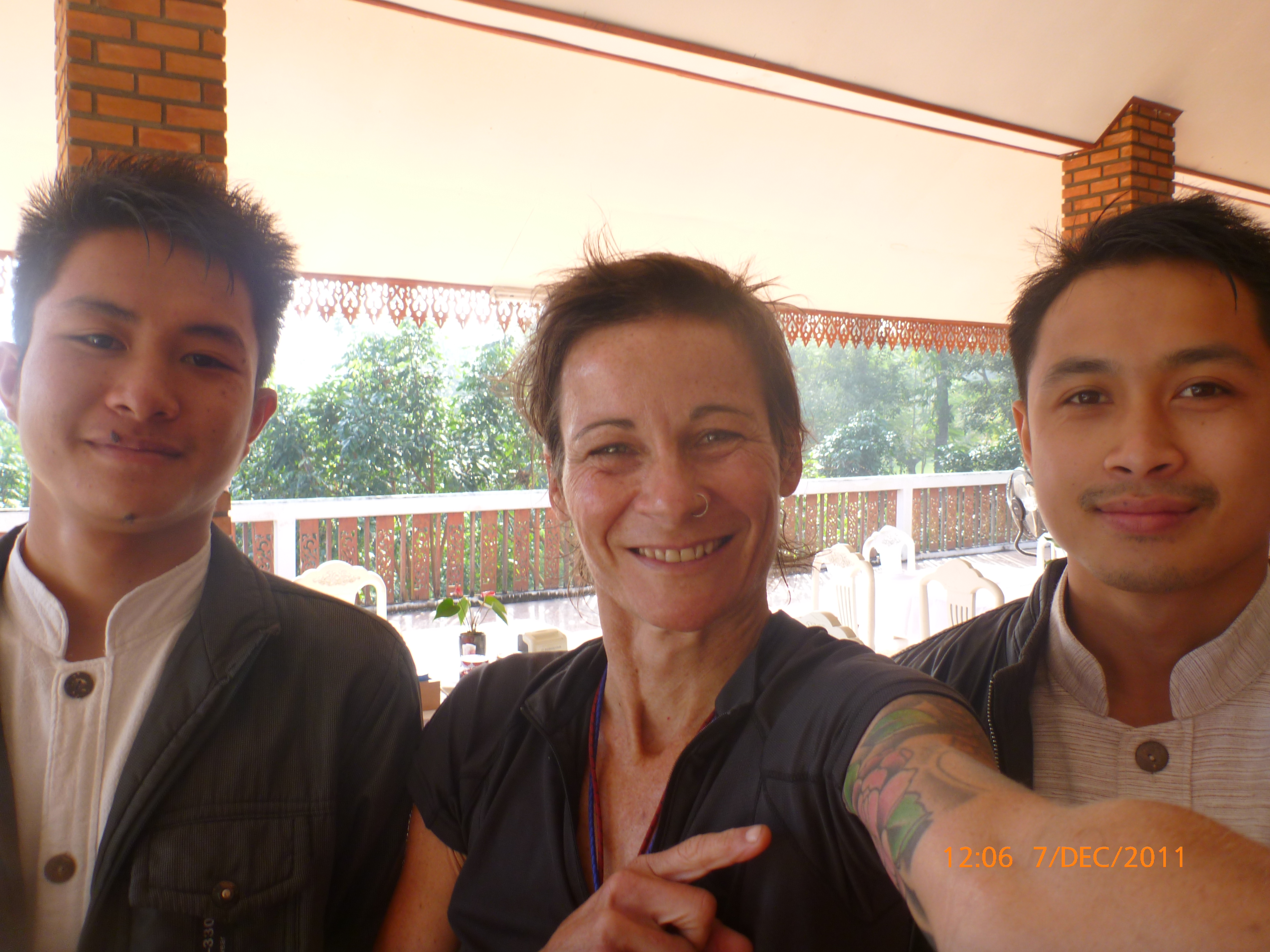 Day 8 Days to go 1072 – It’s 7.46pm Wed 7/11/2011 and I am in downtown Chaing Rai. I’m on my iPod typing this as I have finally convinced the blog to upload my fav photos. It’ll take some time so I’m multi media-ing it. This morning started beautifully with Munee putting on a free breakfast, the THai lads working there giving me