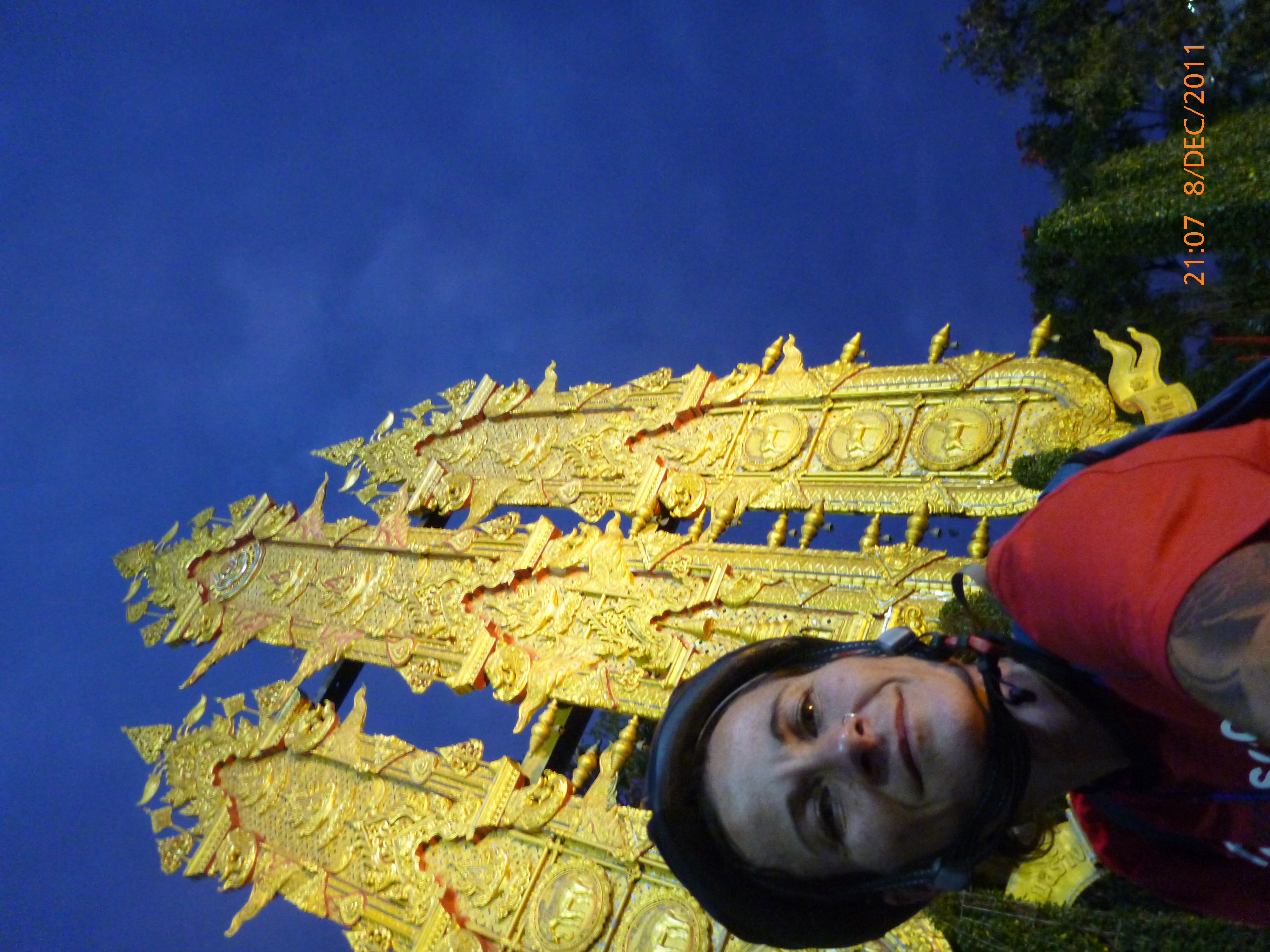 On chili and Norway which really interesting. At a set of lights this fella pulled up alongside peddling one of those cycles where you lay back and peddle in a seated position. In that short time he told me he had cycles around Thailand during the floods and to be safe and to invest in side mirrors. he was this very tanned and wrinkled all smiles character who has reminded me to be very vigilant with the sunscreen and moisturizer. someone asked from an earlier blog what a buddhist prayer gesture was. Hands are in a praying position in front of your face with a short bow to the person. There’s a real strong Buddhist culture present and each of the towns are centered around their main wat or temple. Even the tiny villages pride themselves on their temple which is kept on as best state of ornate I’m sure they can manage. Given the amount of people that live humbly on their farming produce their hearts seem calm and happy. Of course the bigger towns and cities have their share of those living a western lifestyle but there seems a stronger sense of character amongst the more rural people at least what I’ve seen so far. That’s my favorite part of today exchanging sa wat dii kha’s with the roadside stall folk. Least favorite: mmmmmm waiting for the photos to upload into WordPress when I can here the night bazaar just around the corner. I’m on the lookout for some fruit on ice or another coconut ice-cream mmmmm why choose both sounds perfect. Costs 495 baht plus desert to come. Talk soon. X
