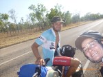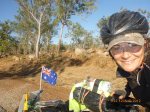 Rube and I were back on the road at 1pm for another 90km to Timber Creek. The countryside kept us glued and occupied for the most part but it was pretty steamy and we were happy to finally pull up stumps just after 6pm. Lorraine at the campgrounds was more than happy for us to pitch our tent as a freebie and even gave me a can of coke zero. It went down pretty dam fine as I sat with the legs in the pool cooling off nice nice. So I’m all showered and squeaky clean with the gear washed for a fresh start tomorrow. The trick in the heat is to start with the daylight about 6.30am. I was thinking today how amazing Dave Alley’s effort was particularly given it was October. To find the hours in the day and night to cover those distances Dave was really quite amazing you rock. You’re also my inspiration to keep the momentum up when the spirit wants to wander. ‘What I’m doing is nothing compared to what you mustered my friend so keep the legs turning over and the kms will come….and they do!!!’ I was talking to Lorraine about the stairway to heaven effect in Broome and she said do it!!! She’s originally from North Qld and puts the full moon effect over the out tide up there with the great barrier reef as far as wow factor. Yayayayayayayay can’t wait here we come 9 days to go!!! Must eat and pass out. $1194.35 cash donations. Talk soon x