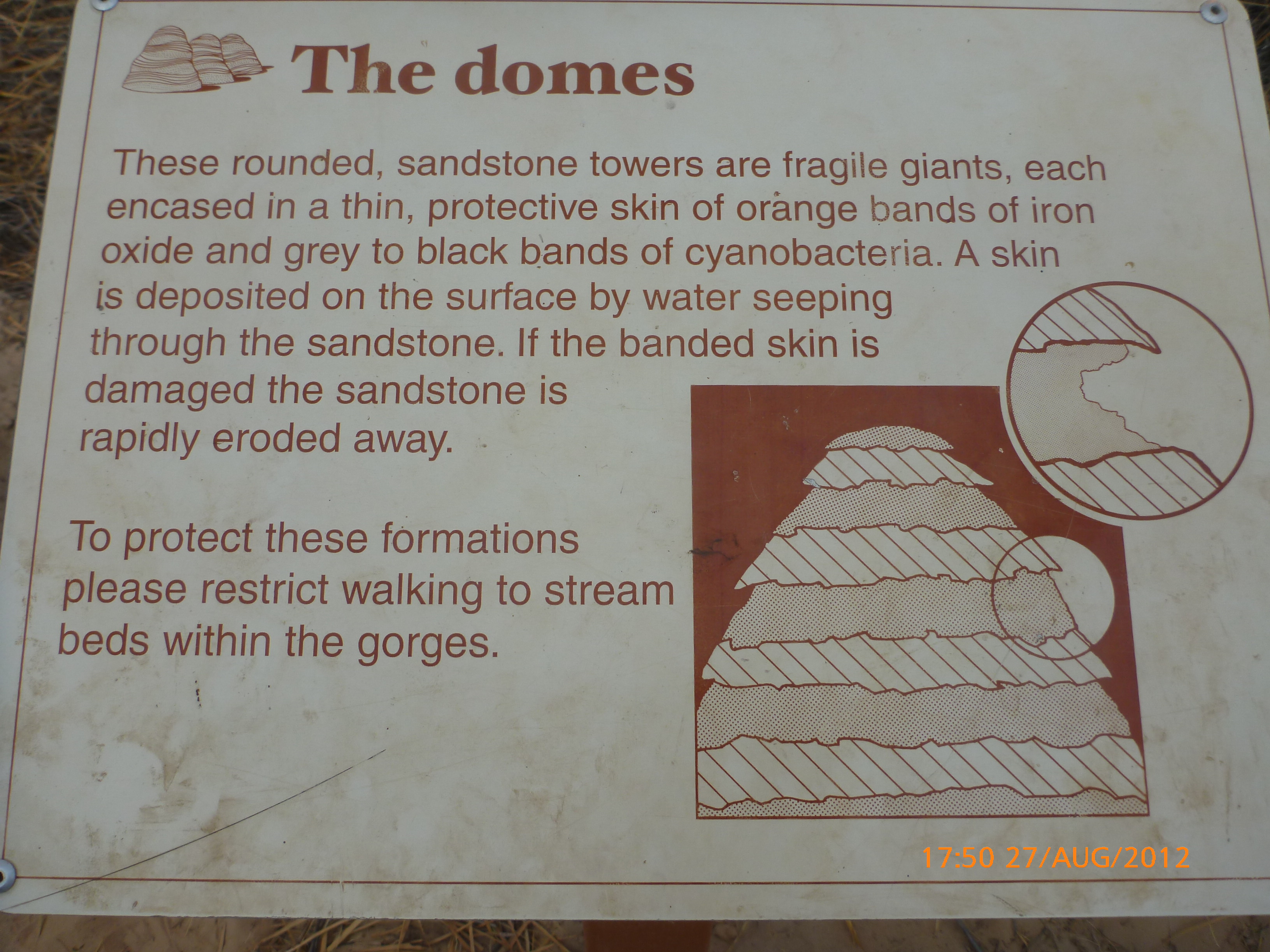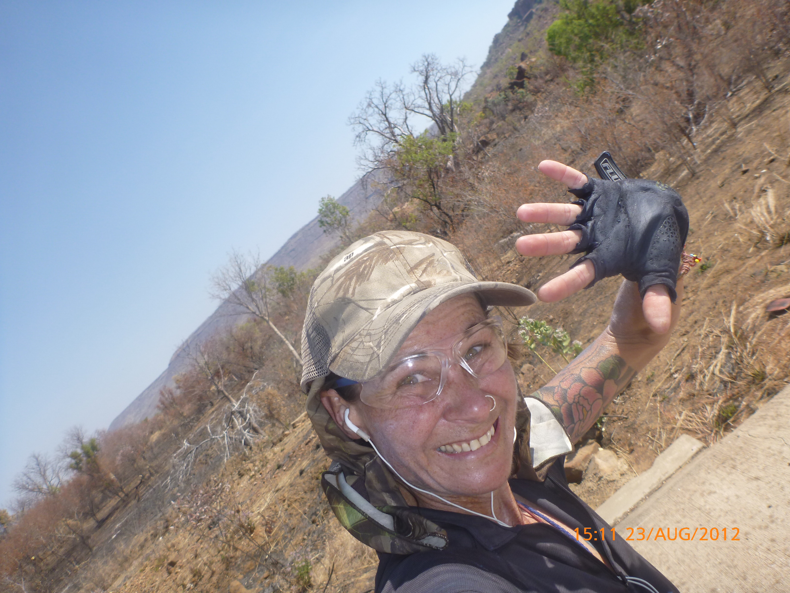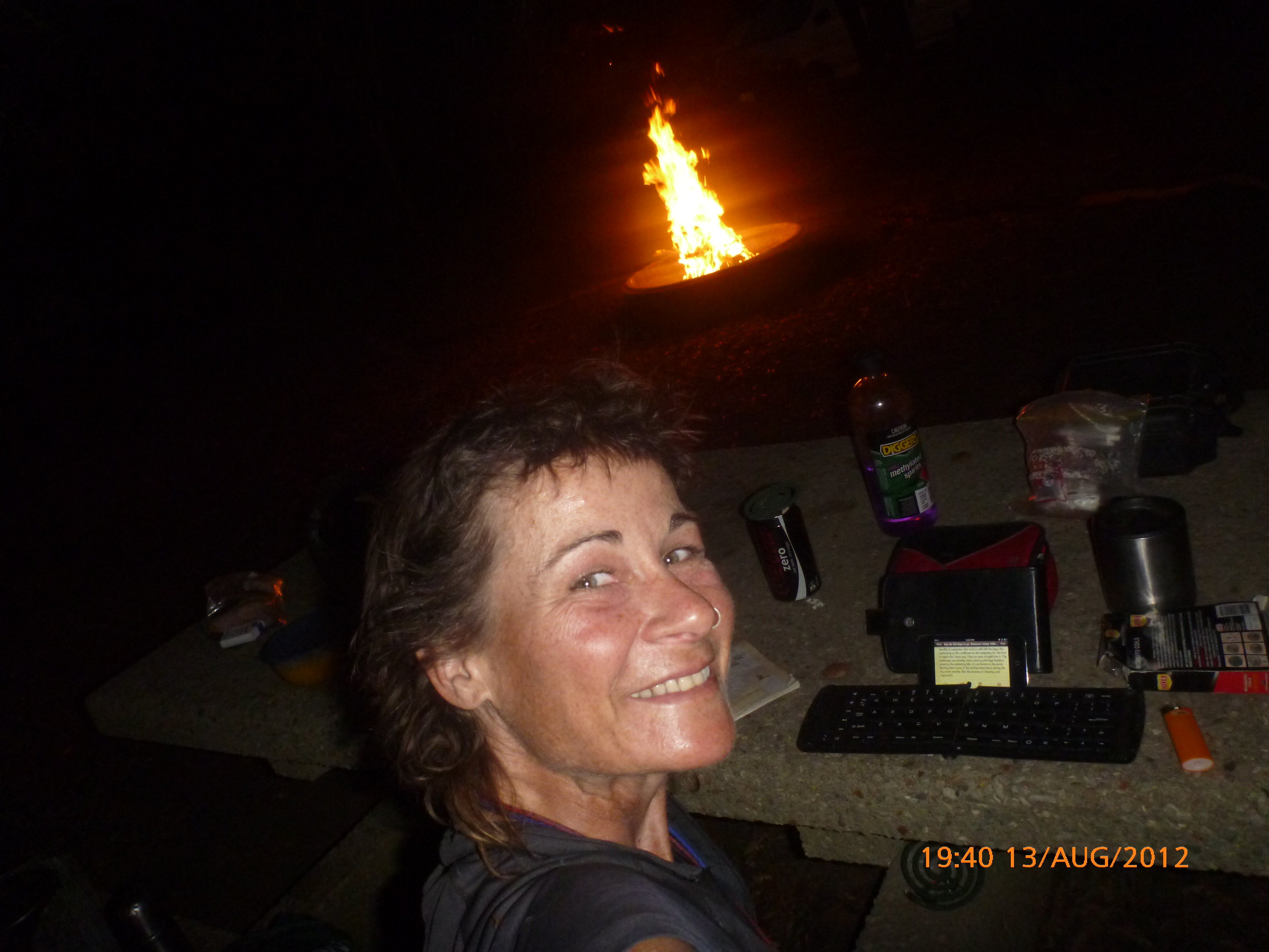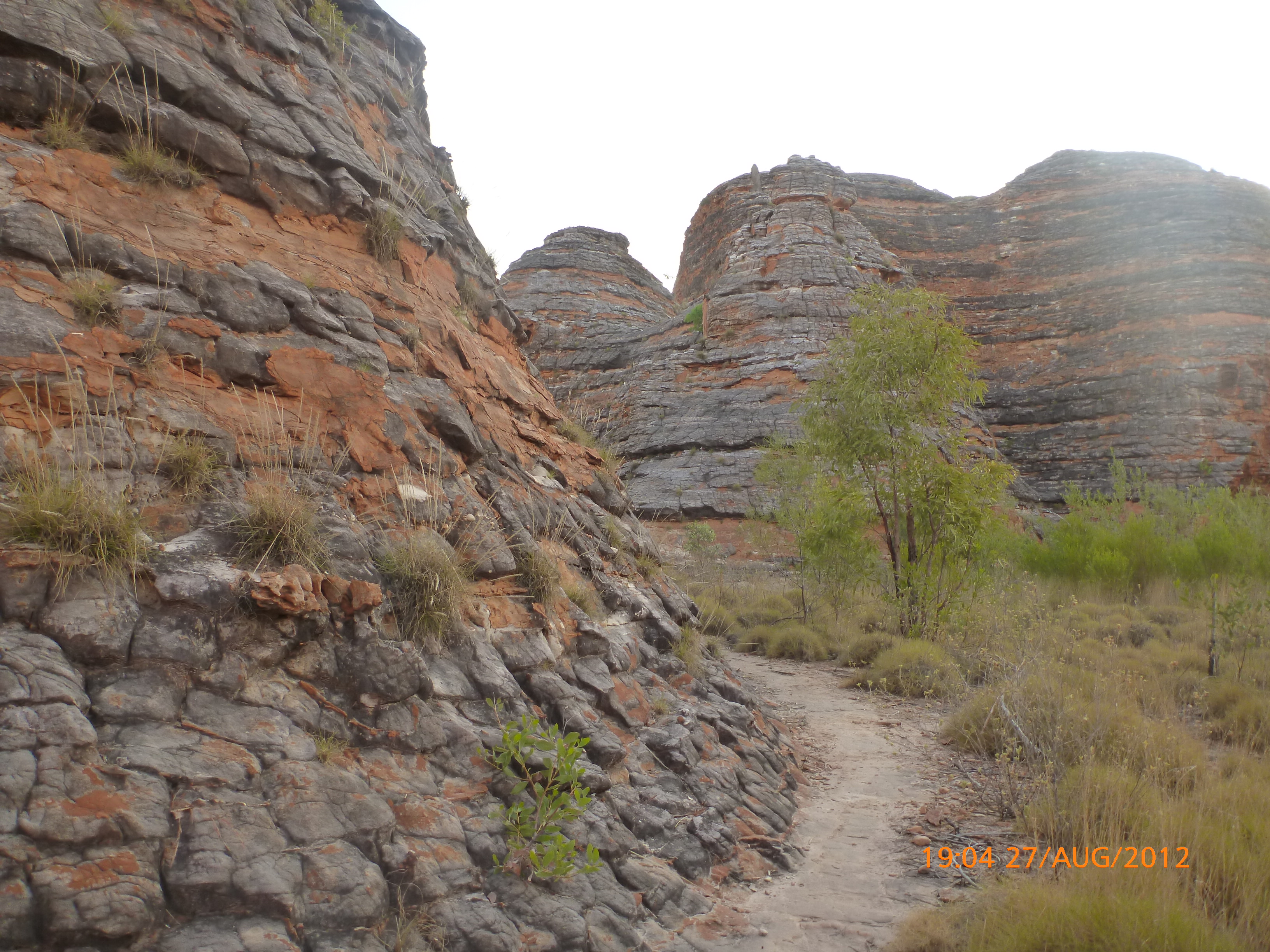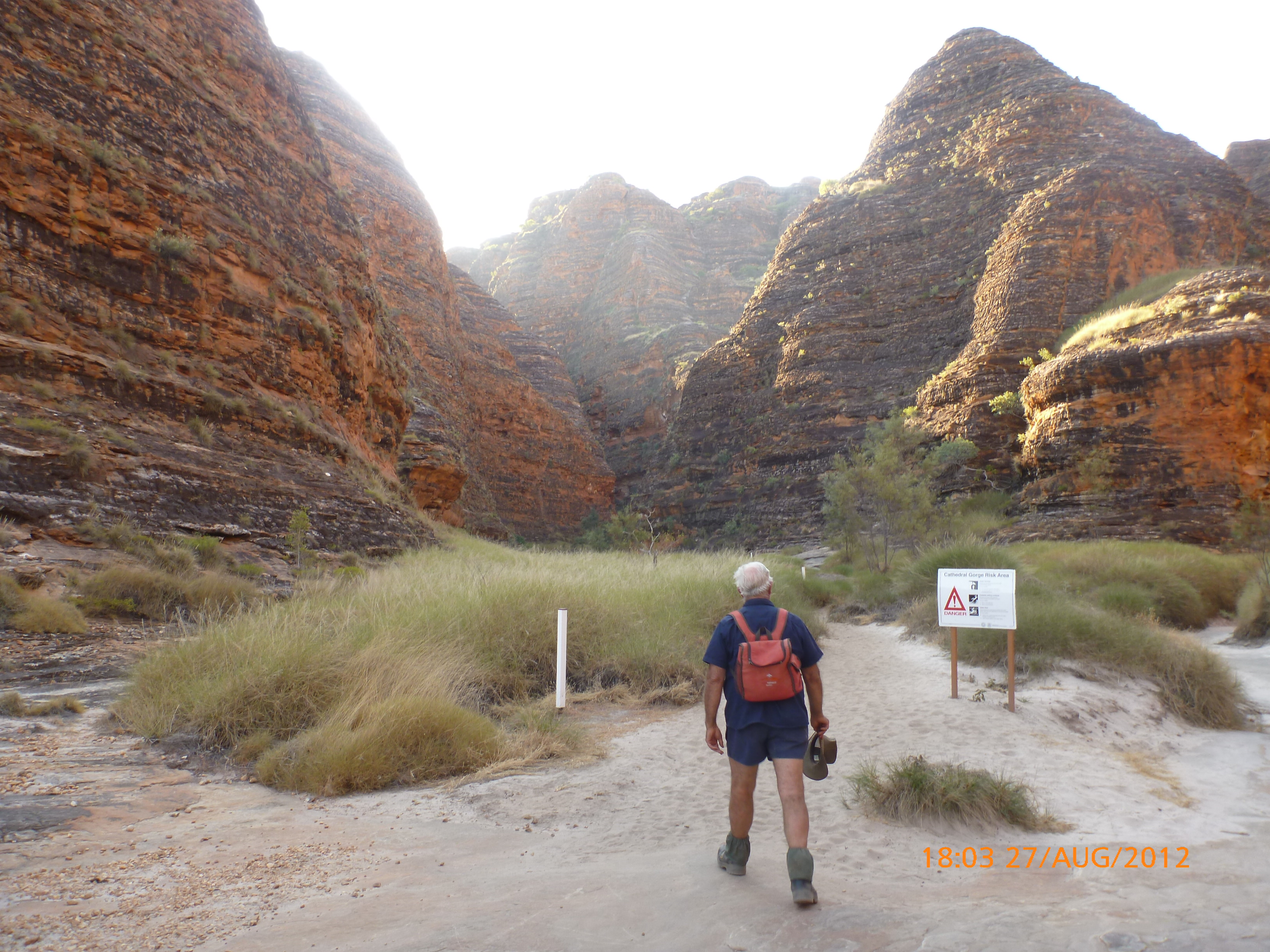 Day 54 88 days to go. Distances: Sun 26/8 Wamun (Turkey Creek) 96km, Mon 27/8 Purnululu NP, Bungle Bungle Range 0km, Tue 28/8 Mary Pool RA 116km, Wed 29/8 Fitzroy Crossing 187km, today 94km total 3990km. It’s 4pm Thursday 30/8/12 Ellandale RA. I’m currently sharing my peanut paste sammy with a whole bunch of top-knot pigeons that are clearly very wild and shy. I arrived about 2ish and only just now feel some personality coming back to my brain. This is in noway a winge as the weather is sensational but it’s between 38-42 degrees and I’m still sorting how best to balance the kms and heat stress. I pulled up today well and truly brain fried and the body stepped in saying ‘no more today Maree.’ But it was a late start after a late night and my liberated moment of turning the alarm off at 5am came back to bite me. I didn’t get on the road until 8am about 3 hours later than when I need to be. Today just reminded me of that so good revision lesson. I haven’t had heat stress since starting off in Thailand and it’s a bit icky tricky. What comes to mind is the first days of rain leaving Brisbane and thinking, ‘there be days down the track where you’ll want to be down poured on….yep these are those days I be thinking !!!! 🙂 So from tomorrow until we hit a change in weather it’ll be 4am up and 5am starts. It seems the more difficult the conditions the more kind folk become…isn’t that an awesome thing!! At the rest area was a hippy bloke I met at the RA out of Kununarra. He’s from the Blue Mts traveling for 3months with his border collie but heading home now cause he’s homesick and misses his Mum. He’s untidy around the edges but a big sweet kid and topped up all my water bottles before heading. Then George who’s from Caboolture and traveling with his wife and another couple, came over and said, ‘when you’re ready come over for a cool drink.’ I beat him back to his van and stayed for an hour enjoying the shady sit and warm company. They have a 17 y/o cockateal called Sparky who’s mummy’s boy and living the dream on the road with mum and dad. They can reach the ripe ol’ age of 30!! His only close encounter has been with a baby cassuarie in Mossman but mum snaveled him first so Sparky’s adventures continue. I then went to set up camp and the lads came over with a tarp to block the afternoon sun. Another german couple cam over with two oranges which I’ve just now devoured and shared with the bush bees. They are just as persistent and sticky as the desert flies so the head net is well and truly on. It cools down slowly now to balmy beautiful evenings and sleeping under the grasshopper fly is so beautiful. It’s full moon on the 1/9 so the stars and moon are currently serenading me nigh nighs. I haven’t managed a post for 5 days with all that’s been happening well into the evenings.