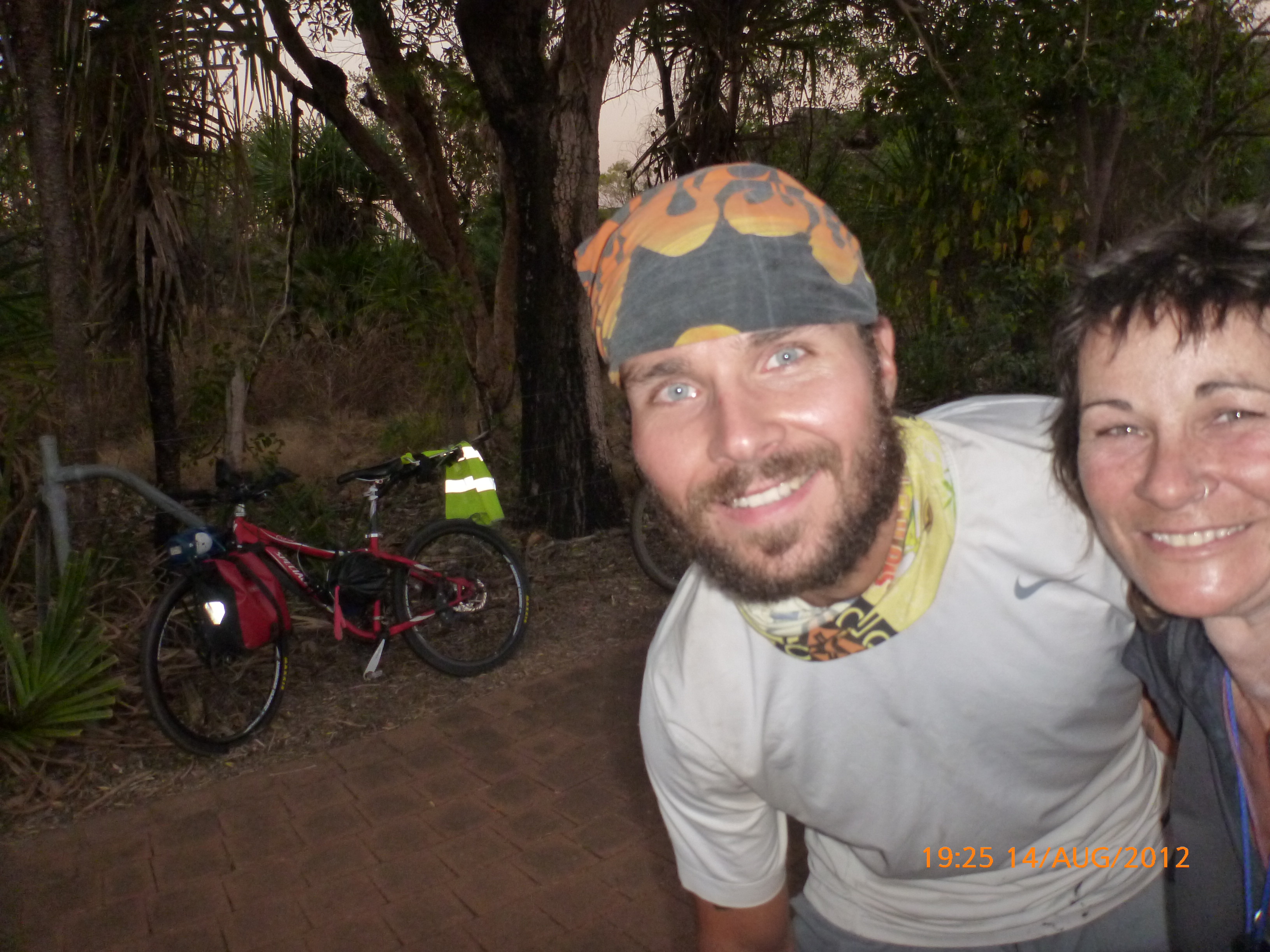 We’re so excited about this next stage venturing towards the delights of WA. But firstly there’s still about 4 days of NT to savour and the road between here and Kununarra is apparently stunning. We’re not going to wait and get right into it this arv after finishing up here. There’s a rest stop 70kms ish west of Katherine and that’ll be us tonight all going well. And Rube is going well my gorgeous girl. We dropped her off at ‘Spokes’ bike shop in Palmerston on Friday and the lads there checked her out thoroughly fine tuning what was needed but pretty much giving us the thumbs up through to Perth. She was good to collect Sat afternoon and hasn’t stopped raving about the boys there since 🙂 We were able to get her a maxis 16” tyre for her trailer so she’s feeling like a red jet star and biting at the bit to get into it this afternoon. Hey I got an email from the Polish lad who I met cycling into Jabiru. His name is Pawel and he was hoping we got back to Jabiru all safe and sound after the sunset at Ubirr. That was very thoughtful of him. He’s working his way back to Katherine doing what we did by car yesterday via Litchfield NP, Edith Falls and Katherine Gorge. Enjoy it mate the three parks are really something. Don’t forget the togs otherwise you’ll have to swim in the grundies like I did which was socially unsound but who cares it had to be done!!!! We had a safe ride back to Jabiru and were kept company by the stars and bats catching the bugs attracted to the head torch. Hope to hear from you soon x