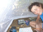 It’s 7.15pm and I’m sitting out on the peninsula waiting for night 2 of the stairway to the moon. Apparently it’s a blue moon tonight so let’s see. It’s been a sensational day everything I had hoped. I hung around the bay and made my string of shells I collected earlier. I may not have a future in jewelry making but Rube reckons it looks pretty funky and is now round her handle bars and her birthday treat. She fancies herself a bit of a surfy girl now with sand in her peddles so it’s a pretty perfect pressie.