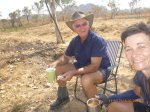 It was good to get on the road today and turn the legs over. They’re still a bit stiff from the keen run in Darwin but feel really good tonight. We had our break at a rest stop 60km into it and met Hazel and John from Albany who invited me to join them for a cuppa. We chatted for a couple of hours. They’re really interesting folk. They came to Australia with their 2 children for 10 pounds back in 1968. They tripped about the country to find somewhere they liked to live and after a few good time tries at it ended up settling in Albany and running a B&B. They were at school together and married in their late teens. Now in their 70s theyre enjoying retired life and loving being grand and great grand parents with their family spread across the world. They donated $10 thankyou thankyou and we got some pickies and exchanged details to hopeully keep in touch. Very special folk. As we were saying goodbye Margaret and her husband who we’ve met a few times now drove past and saw us. It was so cool that they wanted to stop and say hi. They have been visiting family in Katherine and seeing their great grand child for the first time how incredably special for them. They are from Tweed Heads and on the same route as Rube and I so we may yet see them again. This time we exchanged details and Margaret’s going to get onto the blog to keep track of our challenge. The last time I saw these lovely folk were in Camooweal at the billabong campgrounds when Margaret’s husband said, ‘that’s a big chook,’ referring to one of the Jabirus 🙂 I think of that every time we see a Jabiru and share a giggle.