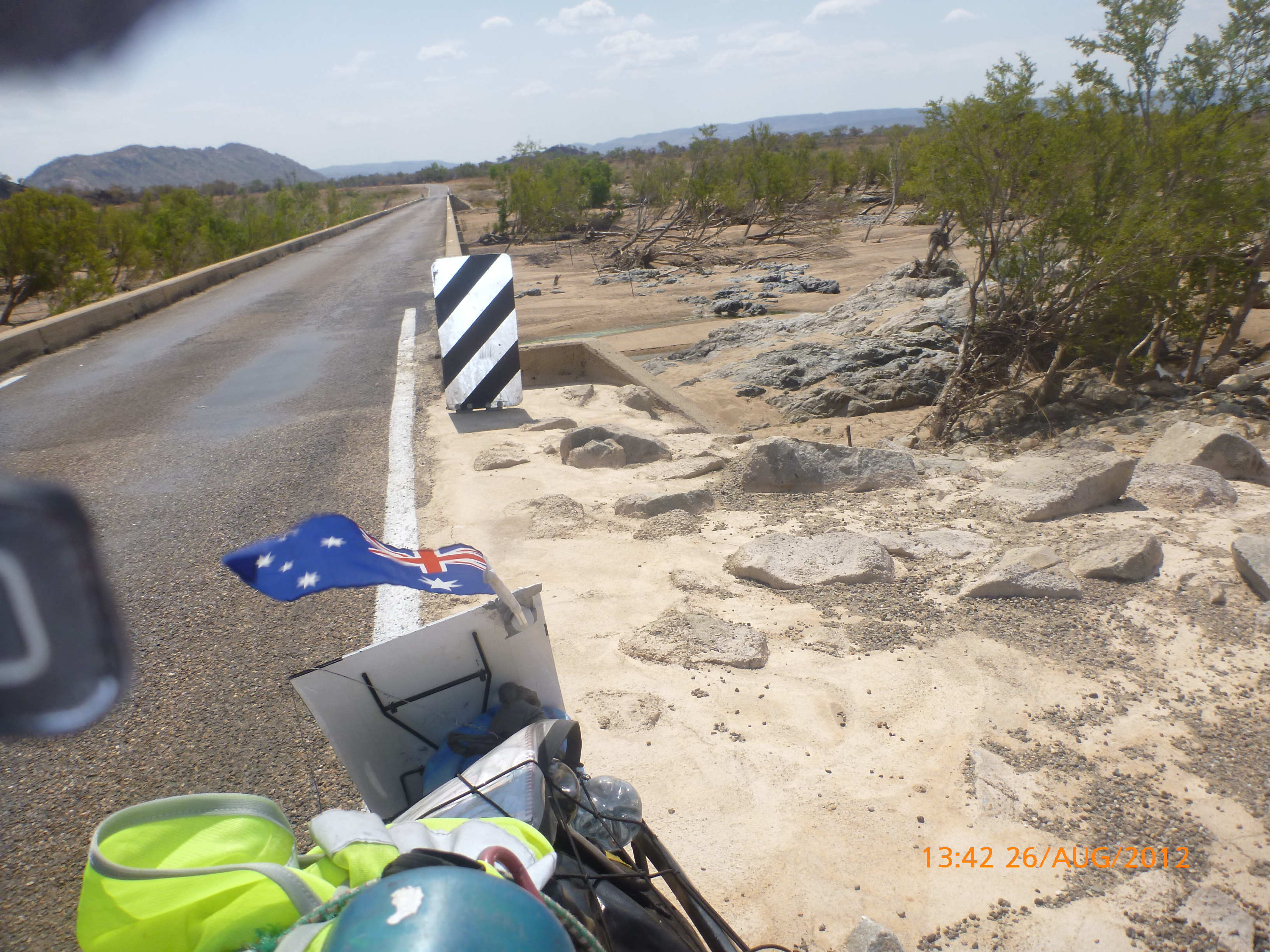 Day 45 1295 days to go. Distance: today 0 km total 3137km. It’s 2pm Monday 20/8/12 Katherine.