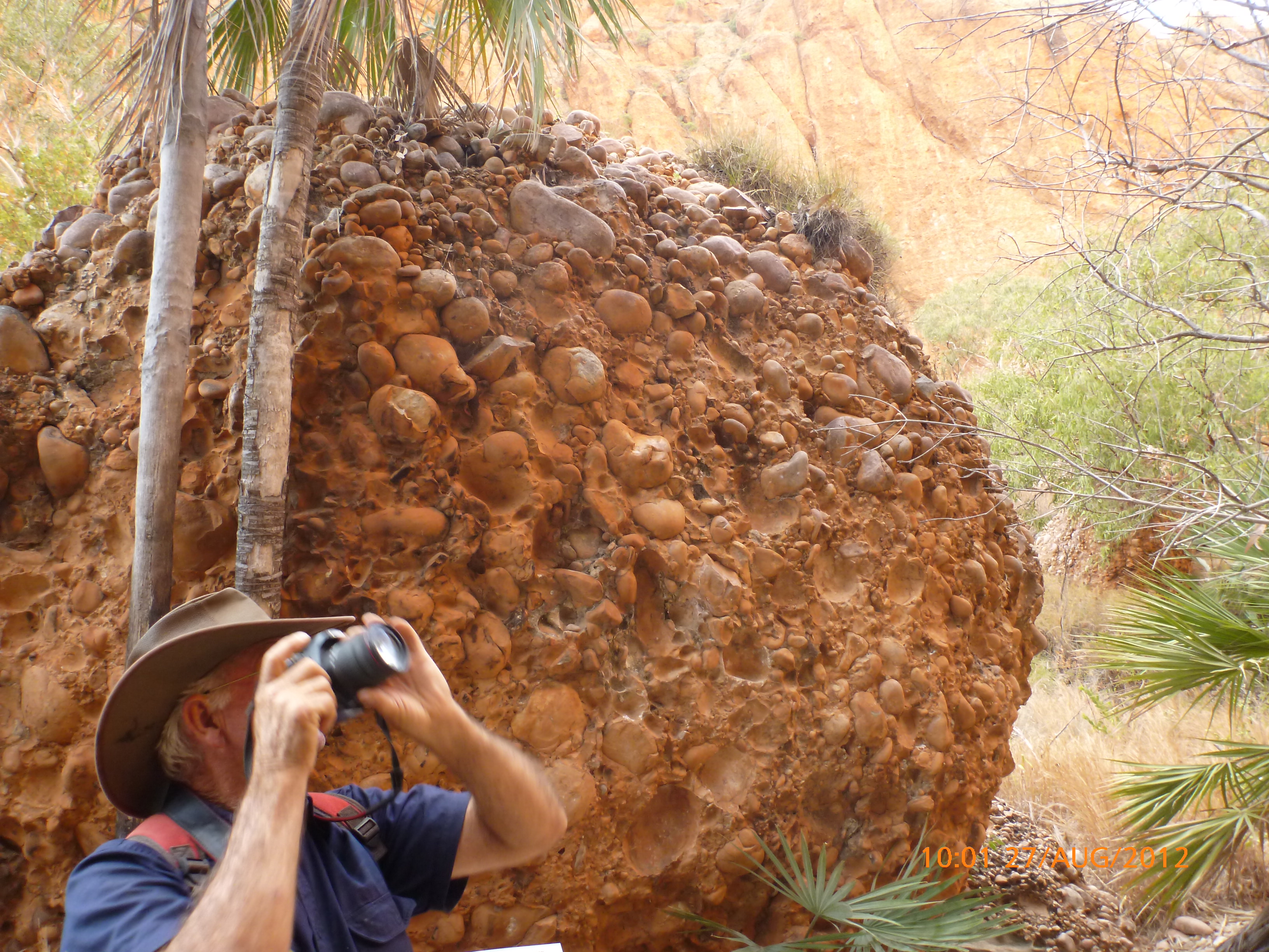 The day started with the sun rising in a bloom of colors that were stunning. It starts to get light about 5.15am so we can aim for a 4.30am start particularly on the long days coming up. The landscape was spectacular with the Carr Boyd Ranges running parallel at a distance to the highway which wound through the rocky outcrops and undulating hills. Periodically we cross river gorges with clear running water that must be a sight in the wet. We’ve taken some great picks today and have been watched over by our totem pole icons, the black cockatoos. It’s green parrot country and the parade in huge flocks stunning in flight with their red underwings. There are so many road trains mostly four doggies in length, all tip trailers carrying iron ore from a mine in Wyndam to Port Headland for export to Asia. The industry is privately owned offshore earning a million dollars per hour. It’s locally run and provides massive employment opportunities but it’s a natural resource that will run out eventually. For now it’s another corner of the country where mining is the major industry. I met a truckie at the roadhouse who averages 12000kms per month and keen to share some of the local industry trivia with me. He said last week he was in Orange and it was snowing crazy stuff.
