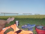 And that was us last night sharing the event with Phyliss and Peter and a bunch of other folk we bumped into on the rocky outcrop into the bay. It was magic beautiful and yessssssss worth every peddle and sweaty bits over the last week of tough going. I would have sent this last night but I was a bit deliriously happy. The full moon rose at exactly 6.23pm and for the next hour I took lots of pickies as the stairs grew along the sand flats spectacle glossy mag stuff. We checked out the markets afterwards but I was risking wondering off up the stairway to the moon so I pretty much ate and passed out. 7am wake up this morn!!!! 14hrs yesssssssssss!!!! Im pretty dehydrated after the last days with the acidic wee thing happening eeeeow. Lots of water and a few ural sachets and already feeling a whole bunch better. We’re here for another day of doing nothing and enjoying everything. Right now I’m sitting in my undies with the seagulls on the grassy area in front of our camp. Its simply beautiful!!!!!!! We started yesterday at 6am but before leaving ‘Ray’ another camper came up and donated $20. He introduced himself and told me I have inspired him. He’s a classical pianist and wants to perform as he travels to raise money for a charity. He’s been sitting on the idea a while but seeing us has given him that extra push stuff to put the idea into action. I told Ray that he could not have given me a bigger compliment. I wish you well in bringing idea to life mate and sooooo good on you!!!!!!!!!!! I’ll upload the posts from the last days including this one to bring you fine folk up to date. The last posts have been circumstantially